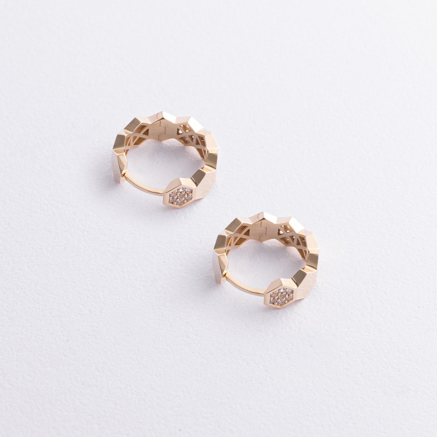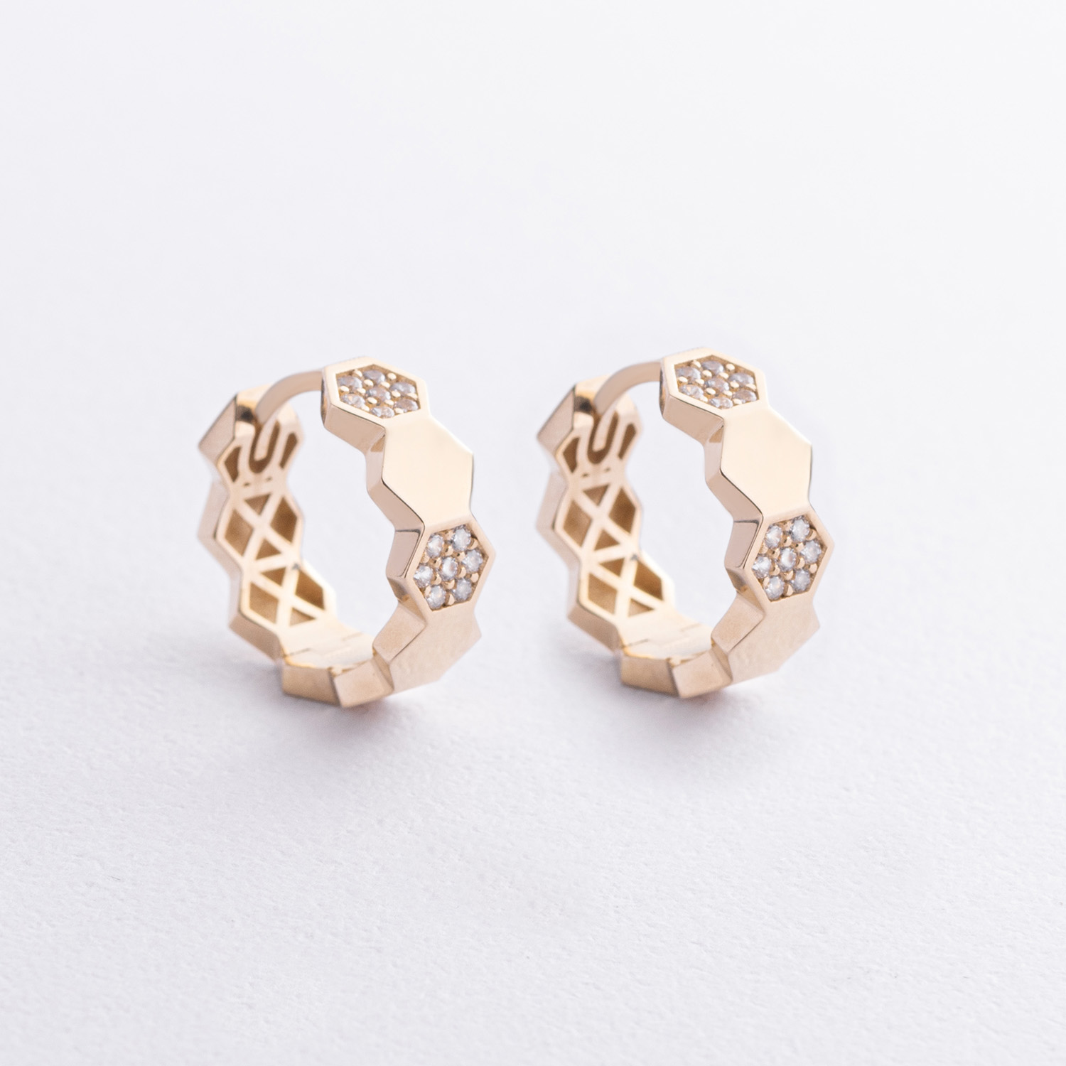Серьги - кольца "Miranda" в желтом золоте (фианиты) с09300