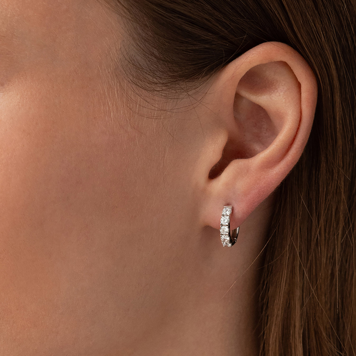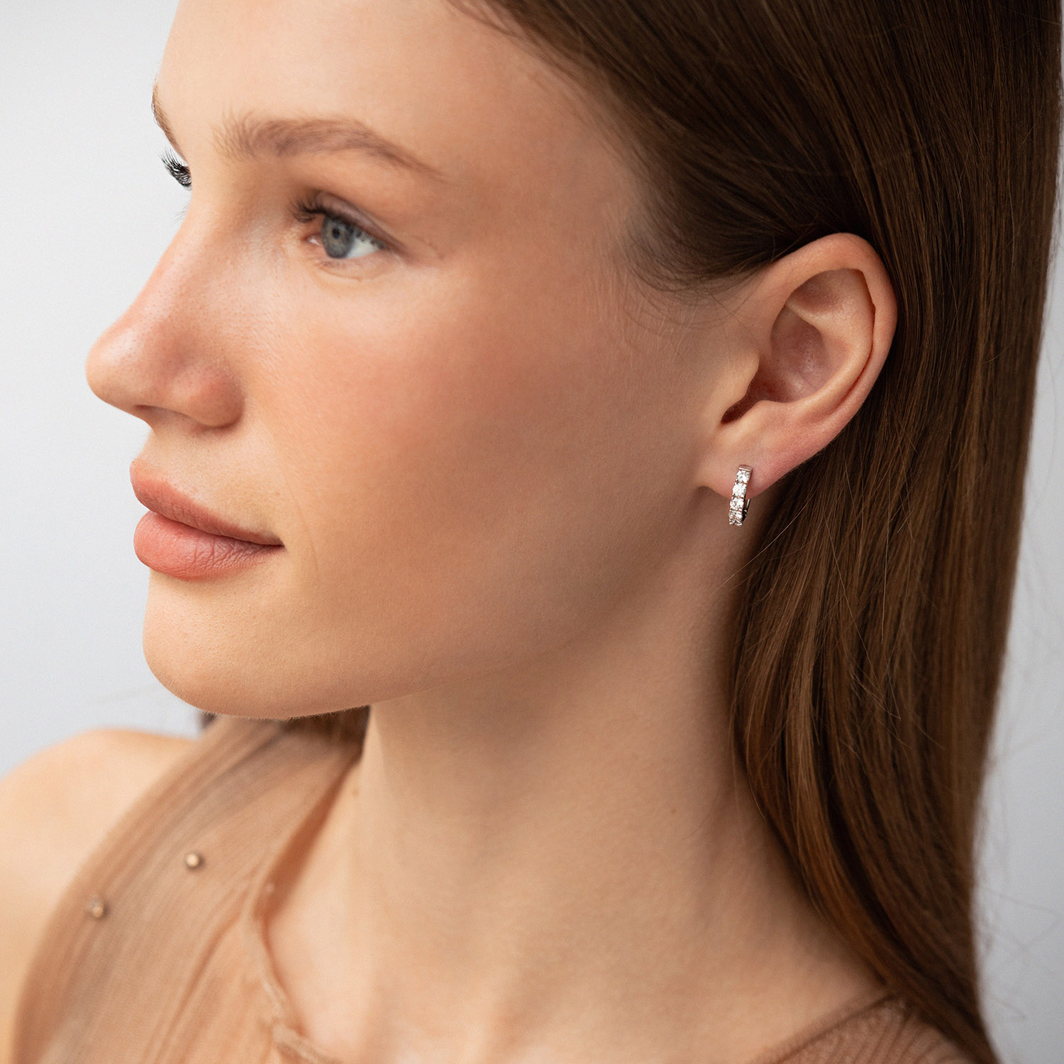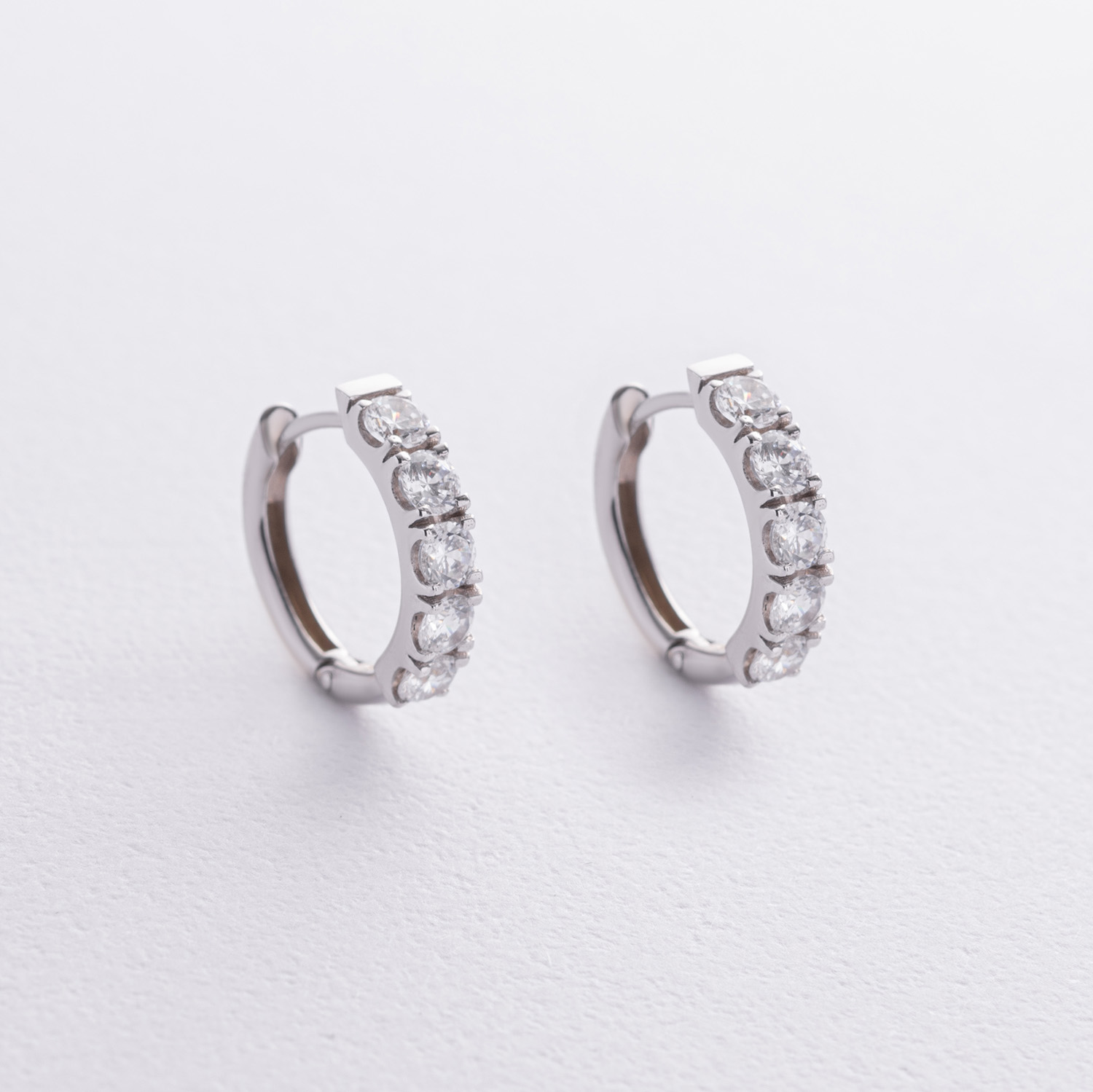 Серьги - кольца "Tracy" с фианитами (белое золото) с09188