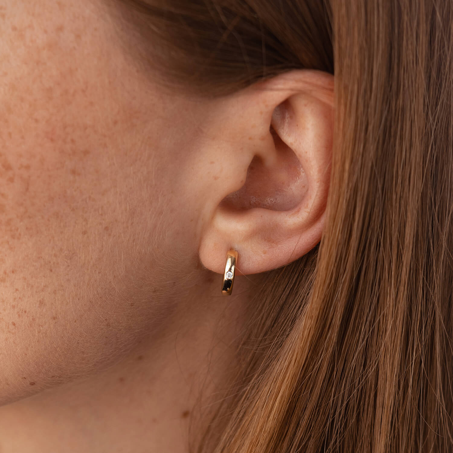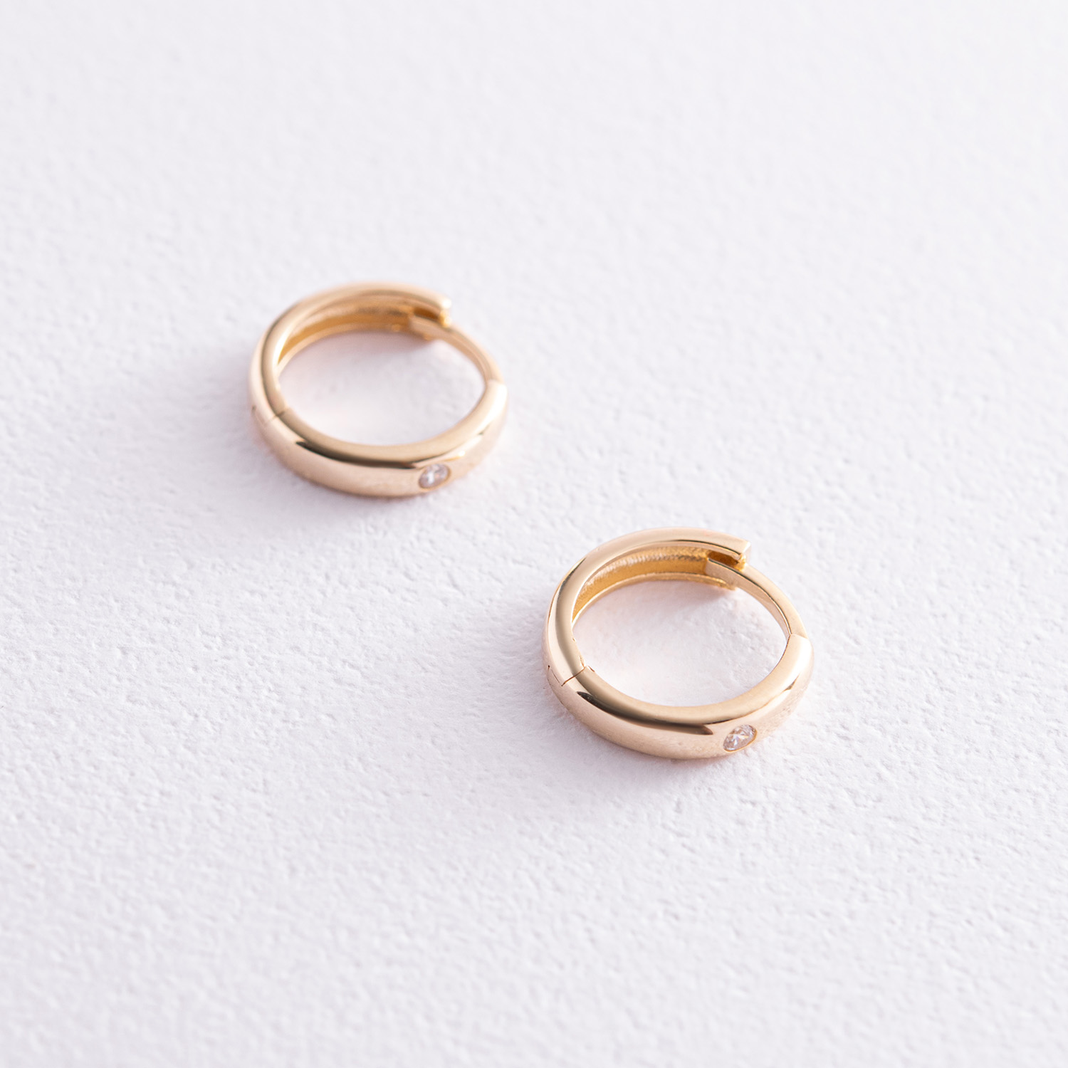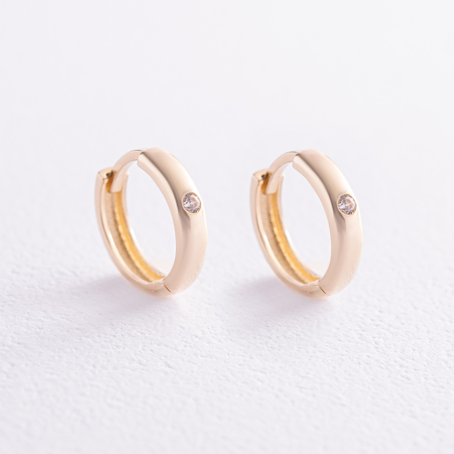 Серьги - кольца в желтом золоте (фианиты) с08014