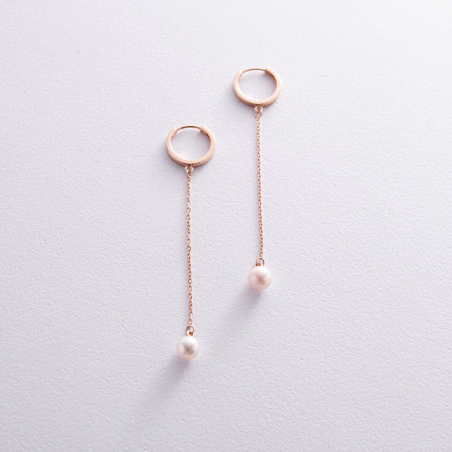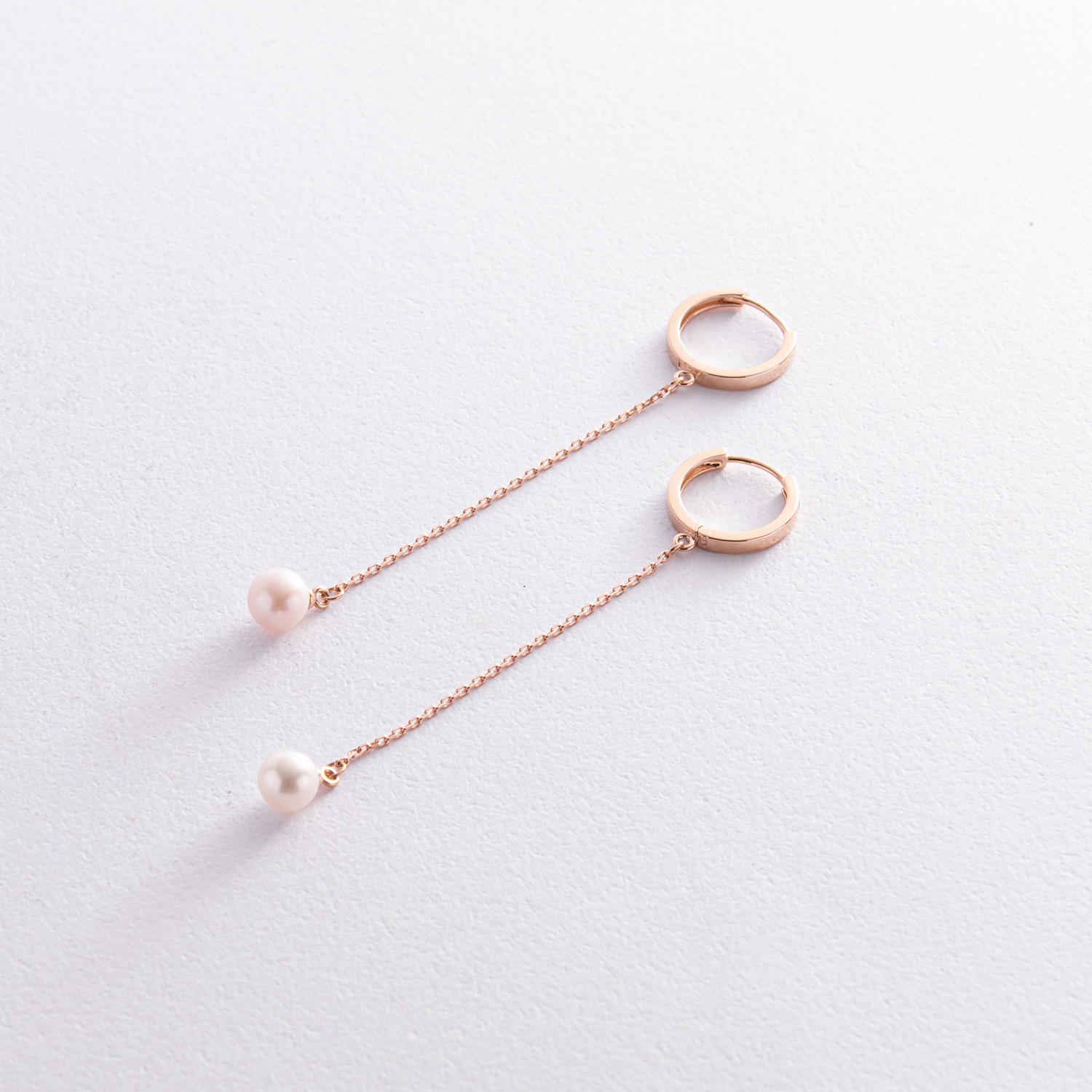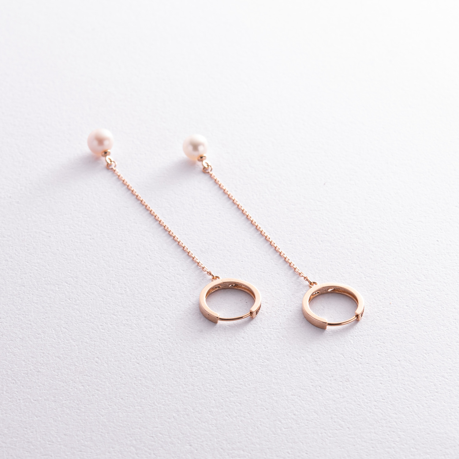 Серьги - кольца "Жемчужина на цепочке" в красном золоте с08355