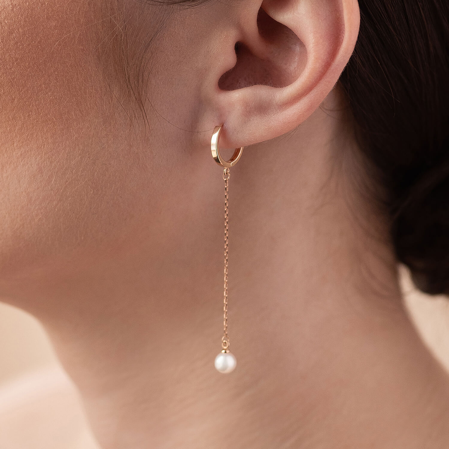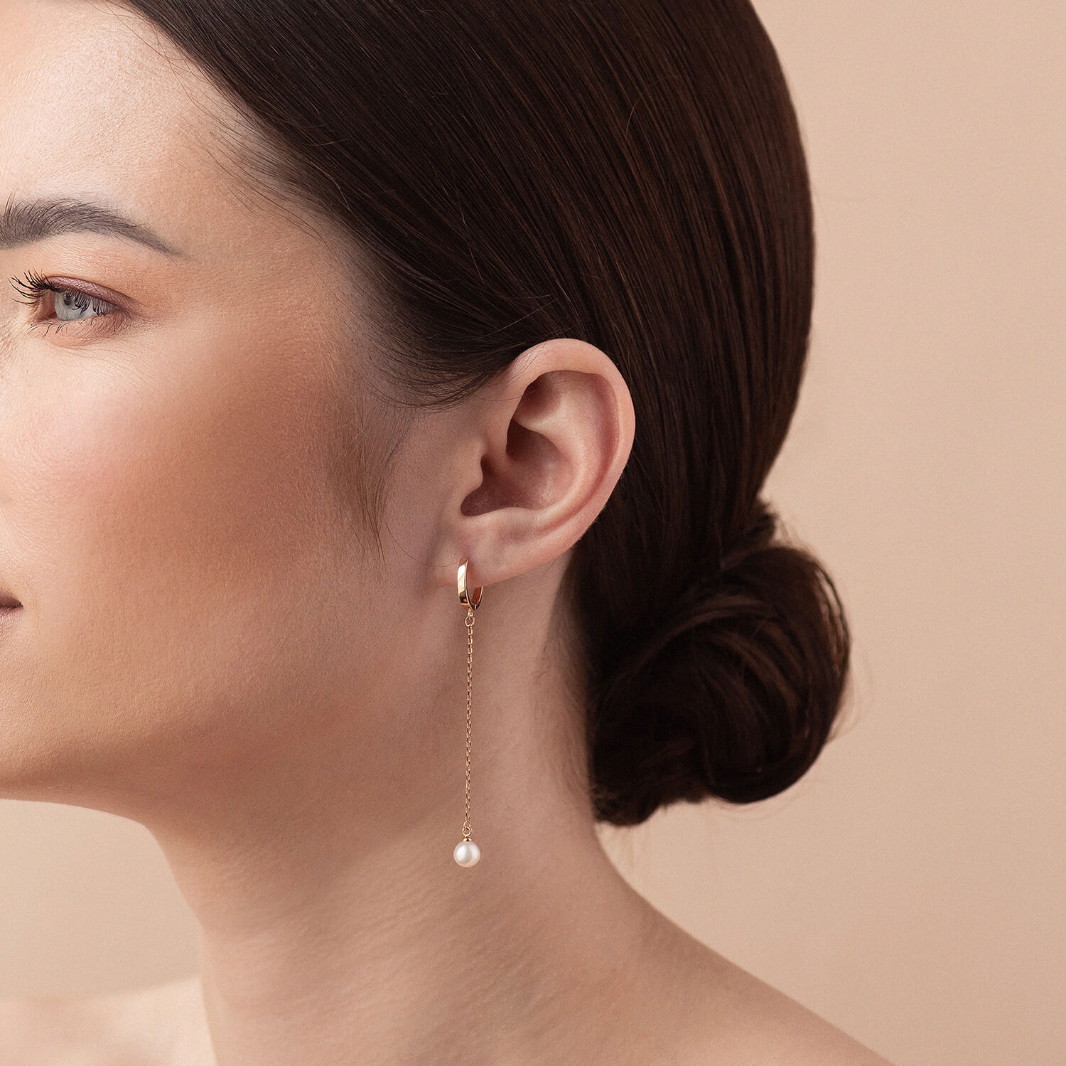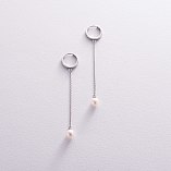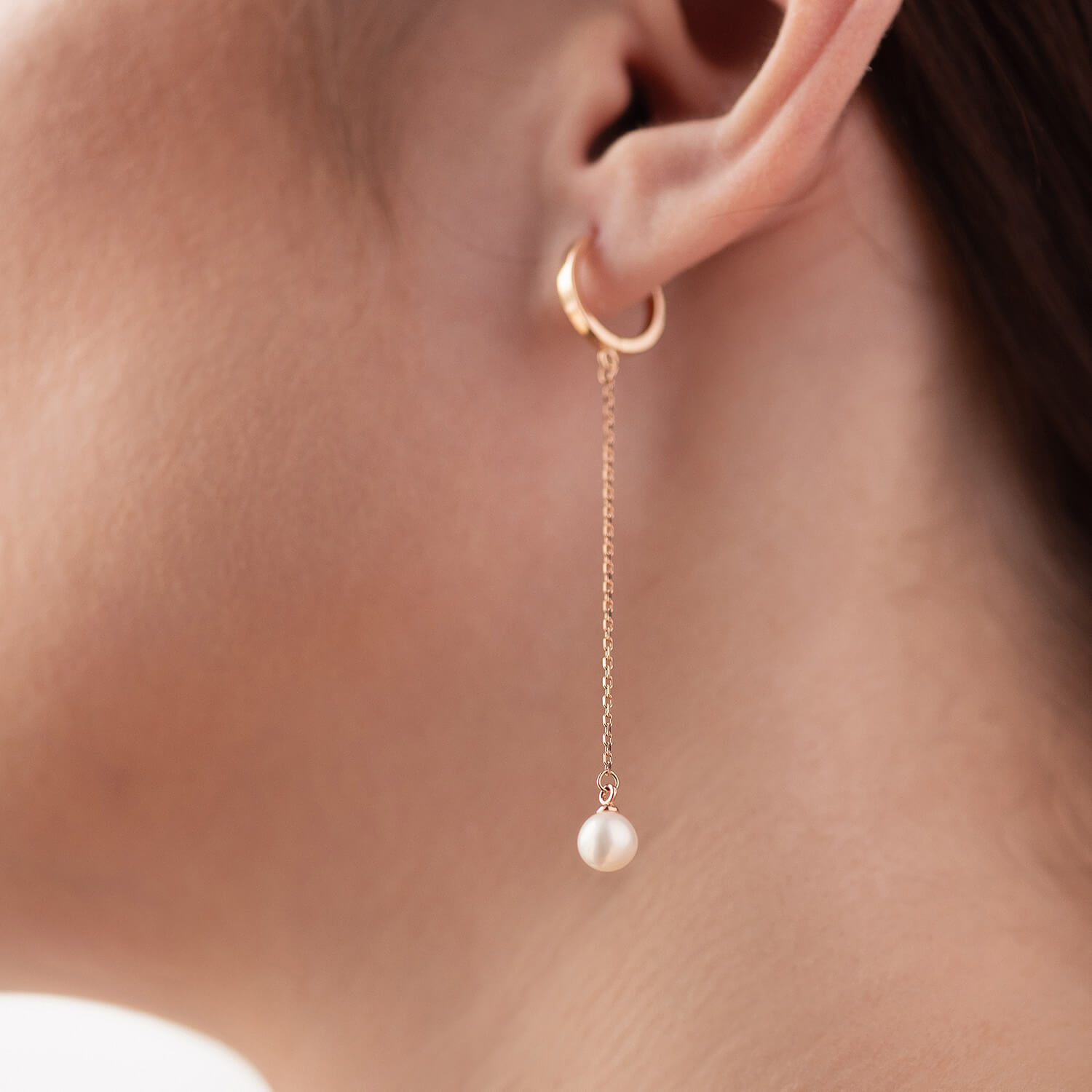 Серьги - кольца "Жемчужина на цепочке" в красном золоте с08355