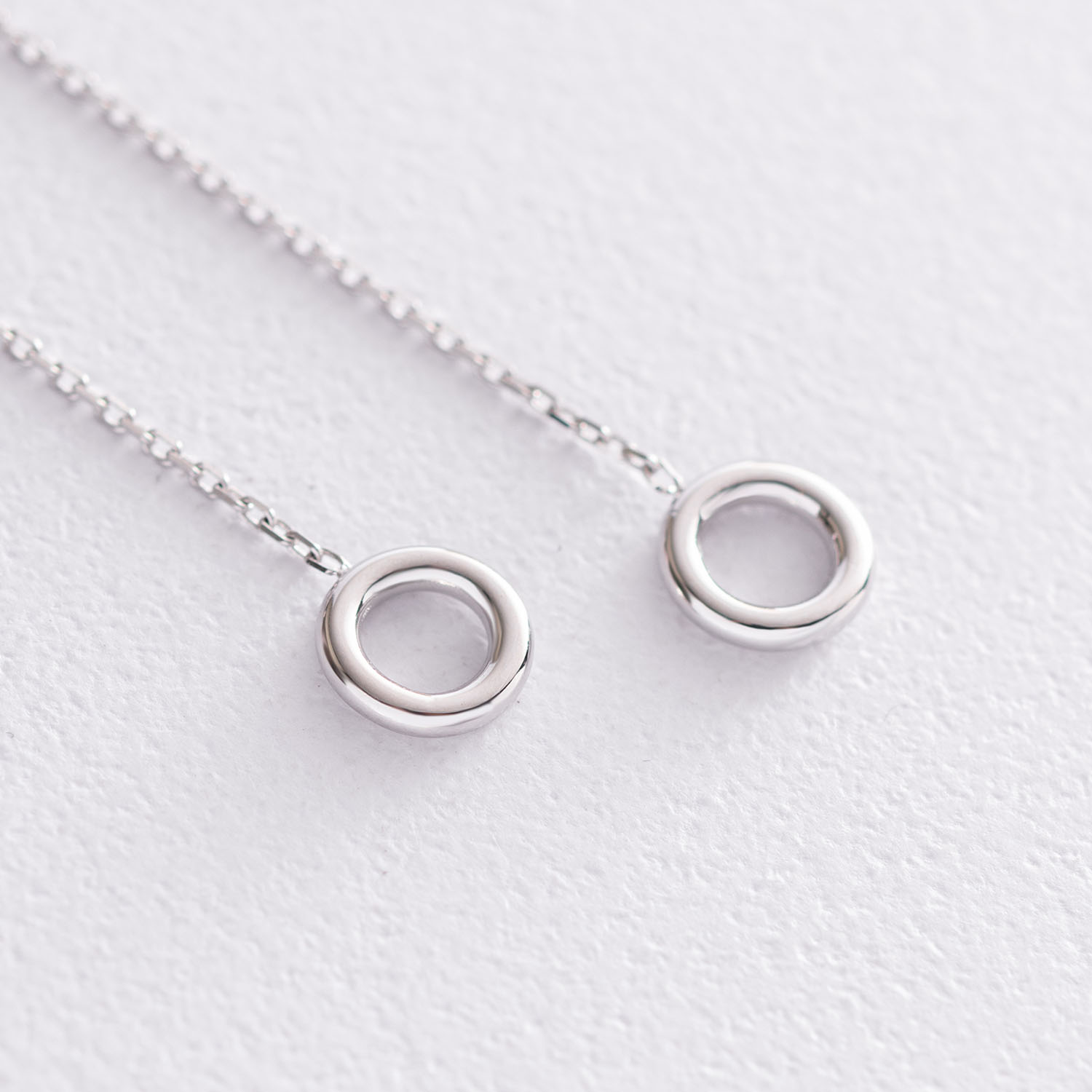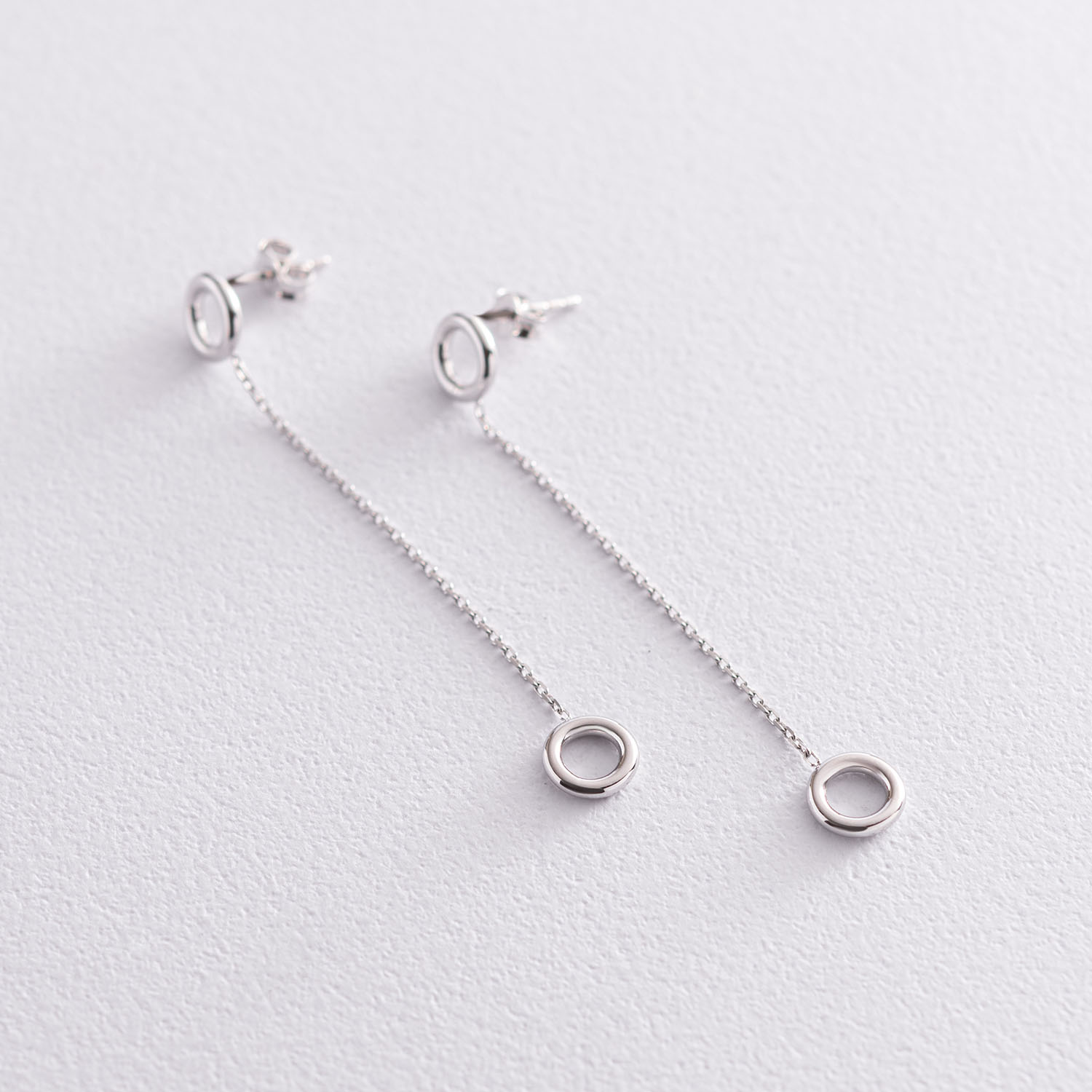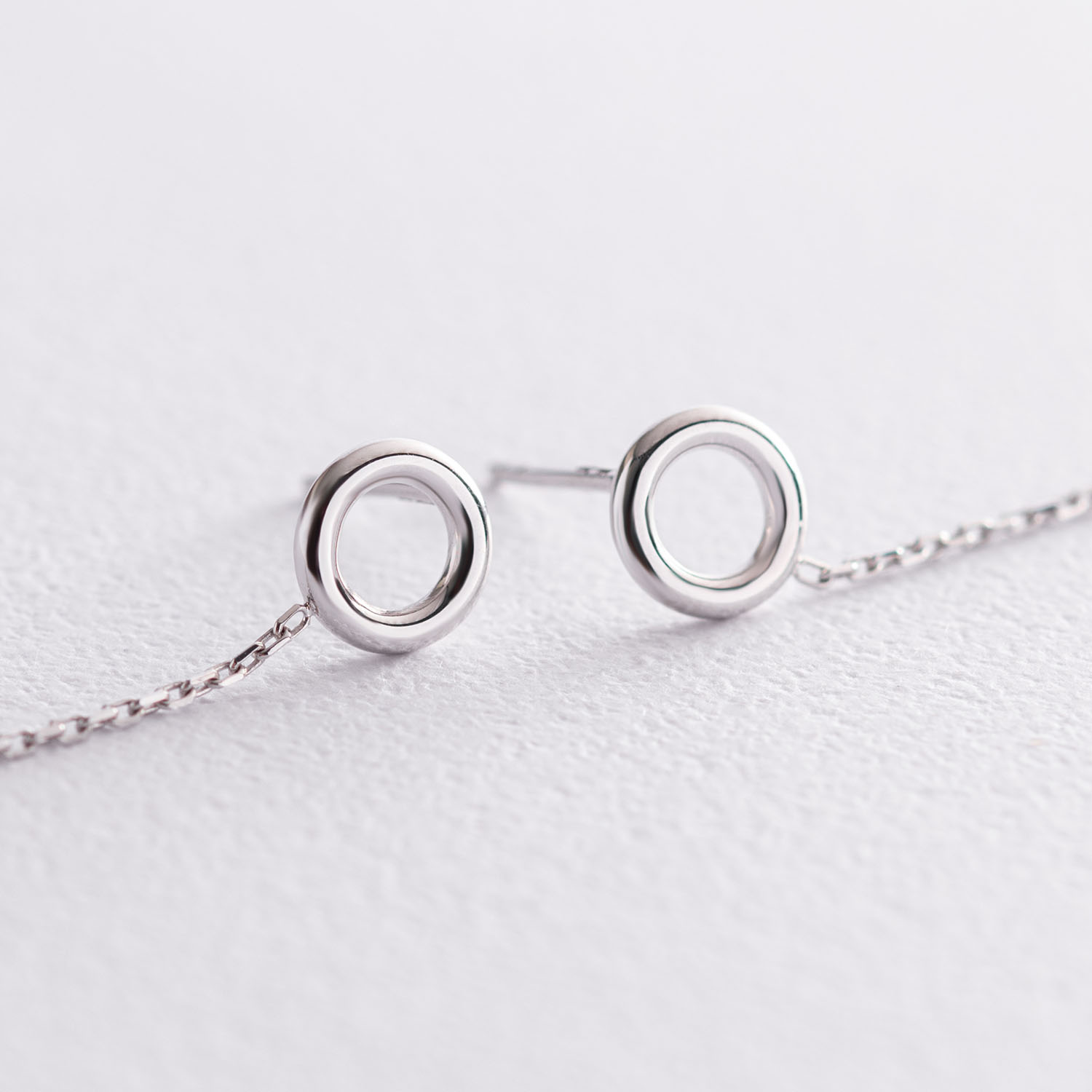 Серьги "Кружочки" на цепочке в белом золоте с07276