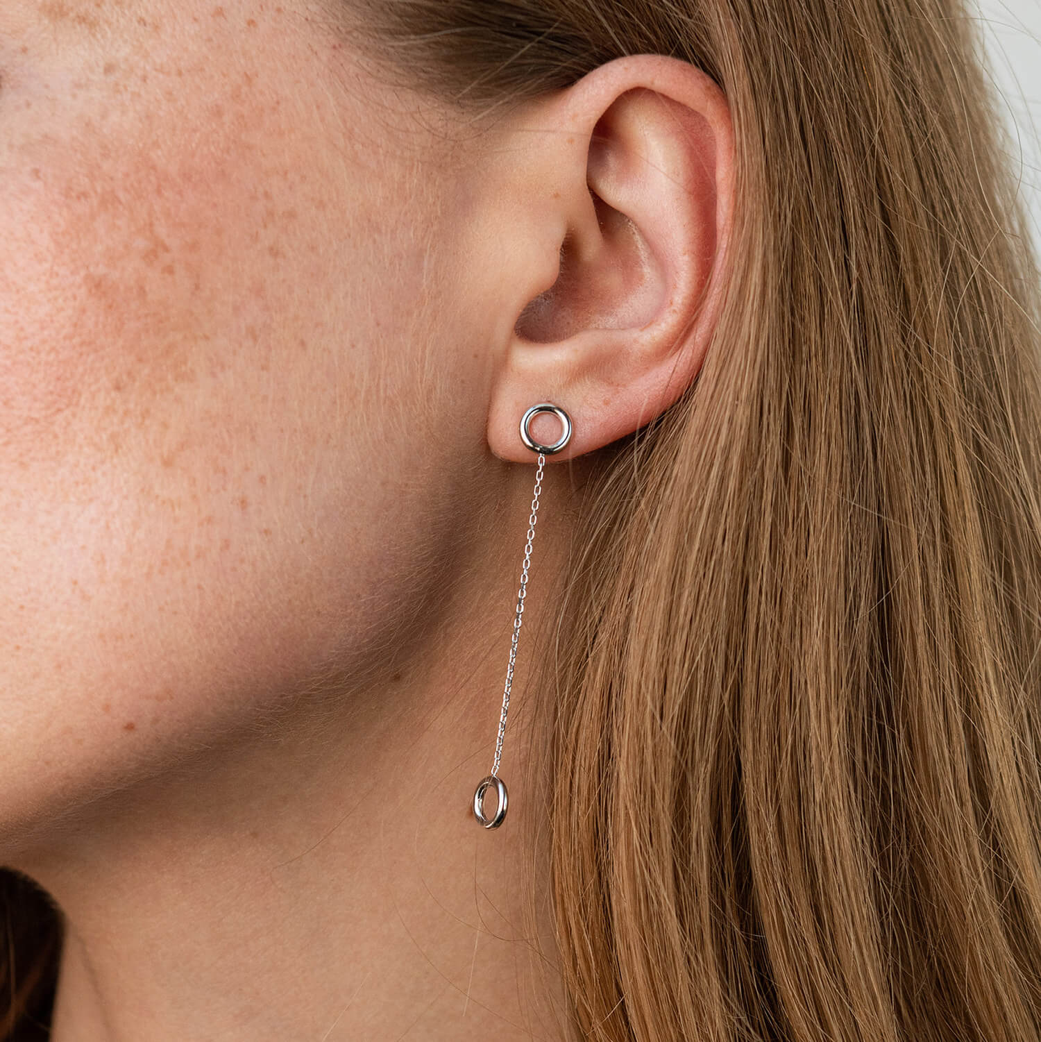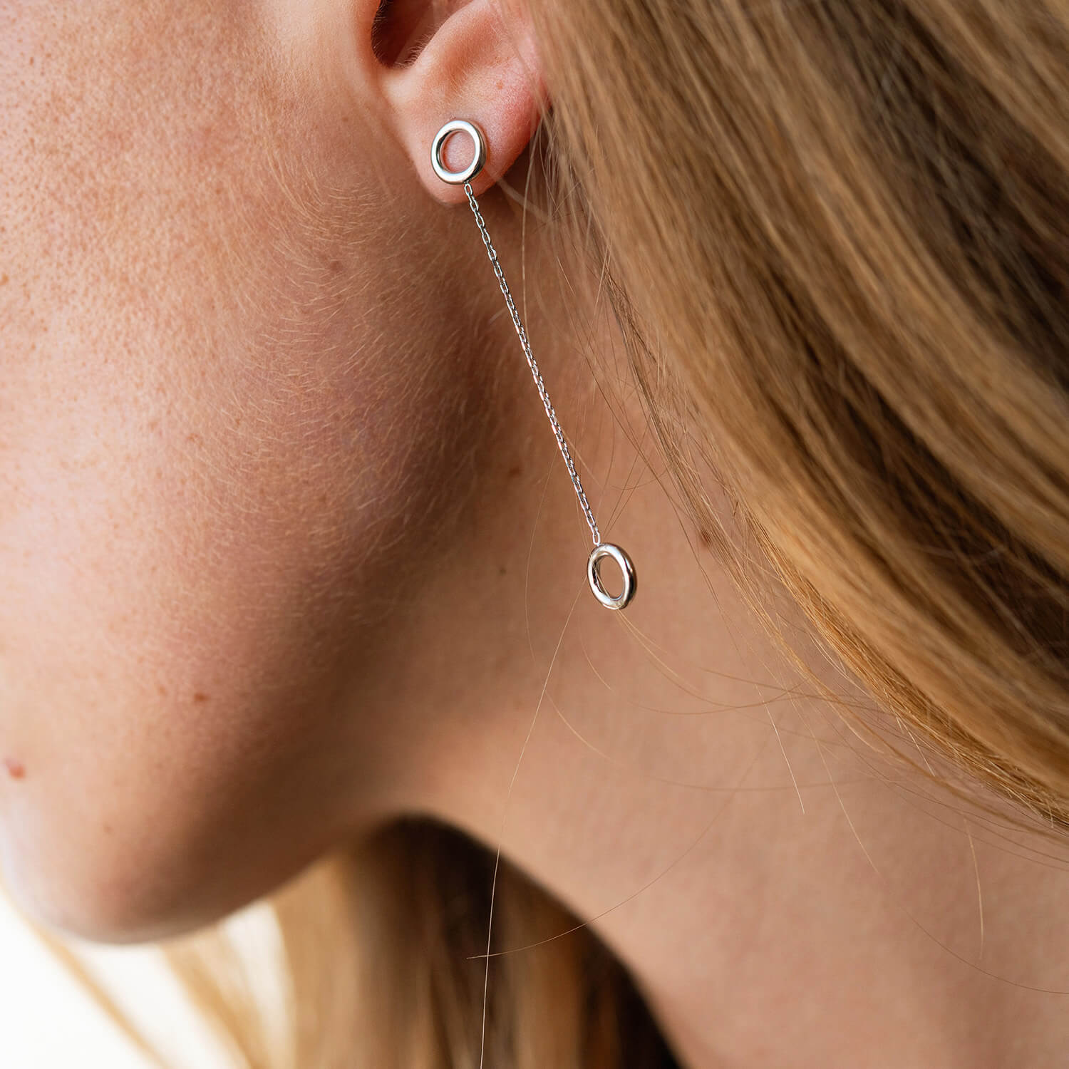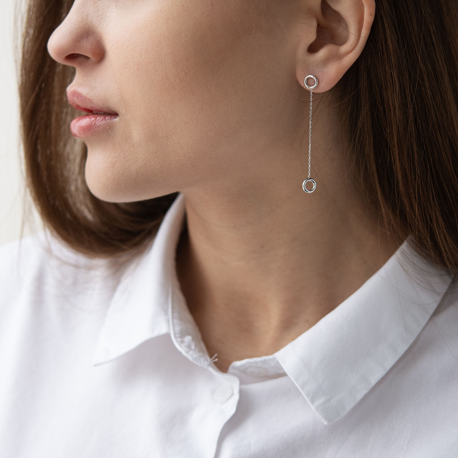 Серьги "Кружочки" на цепочке в белом золоте с07276
