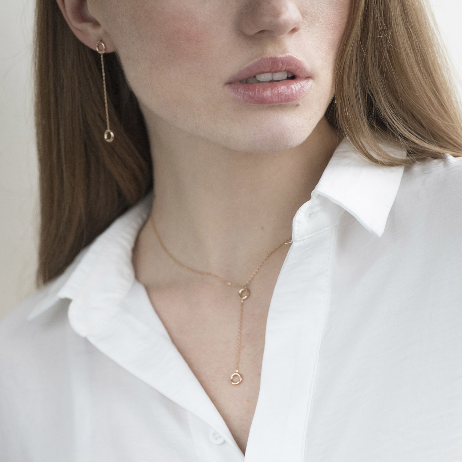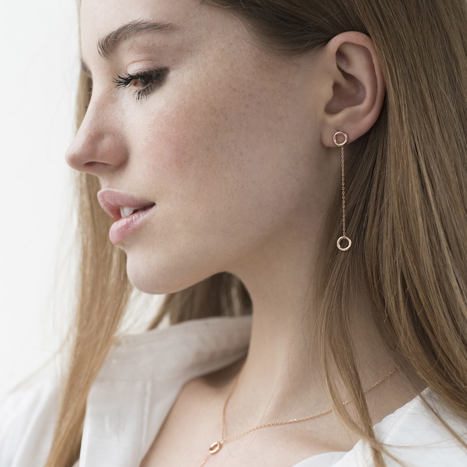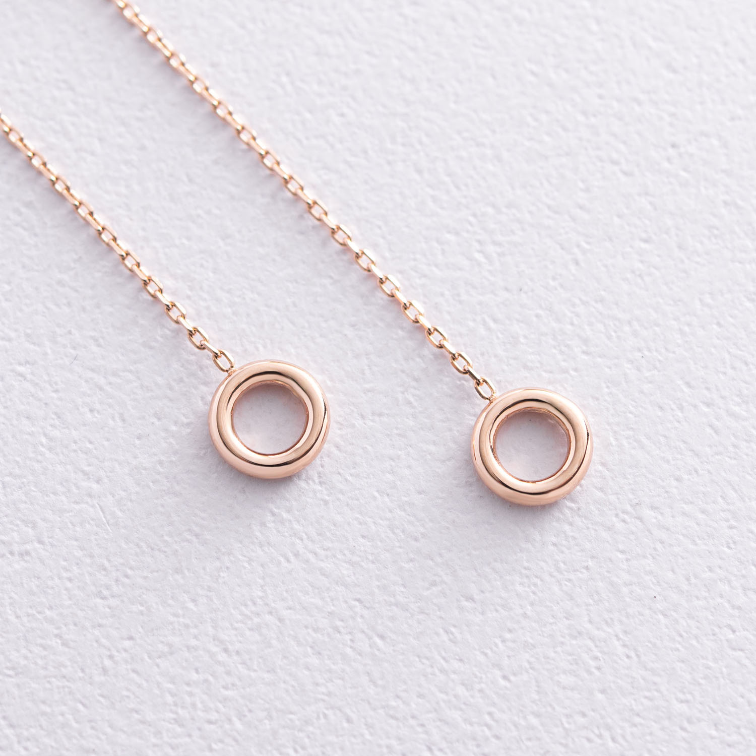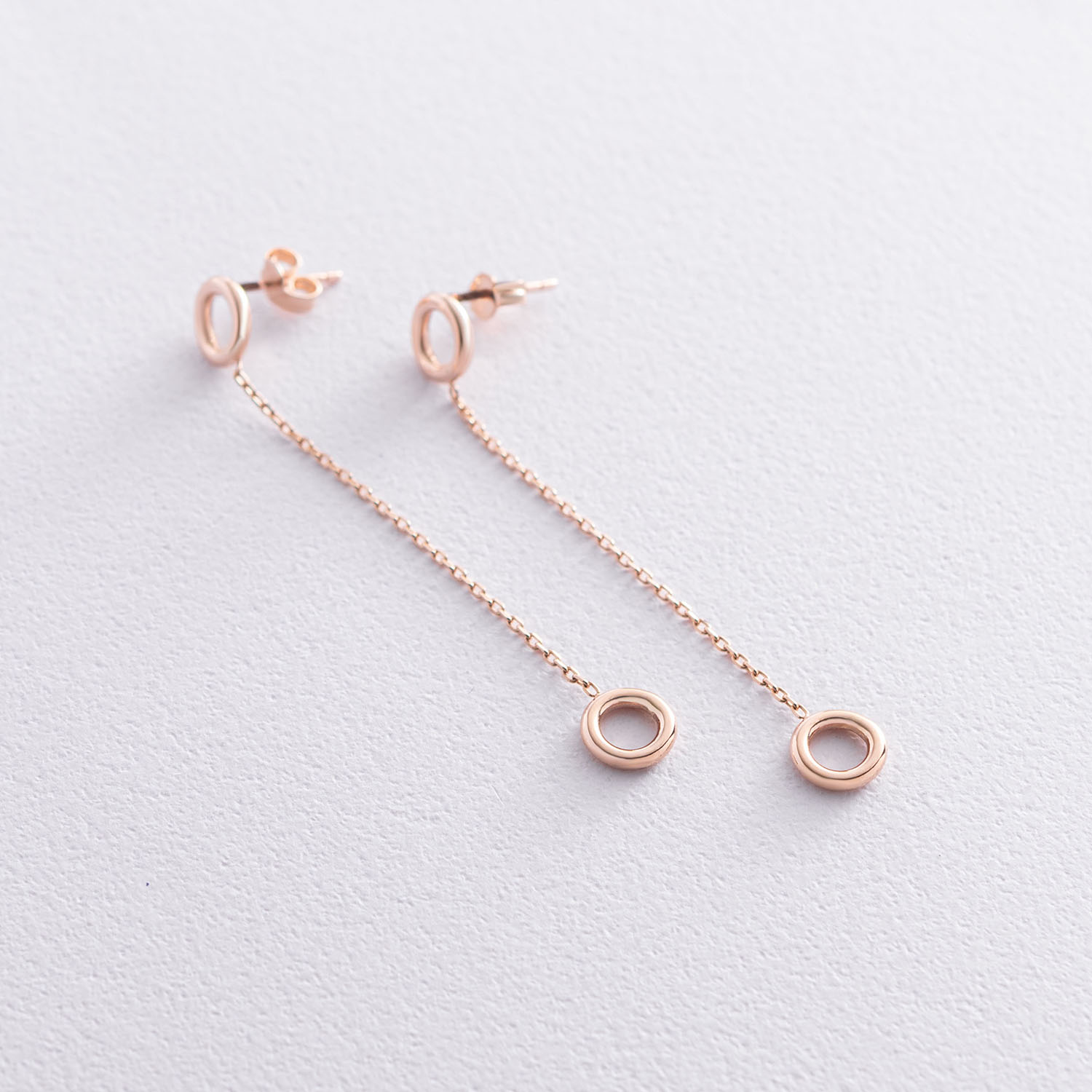Серьги "Кружочки" на цепочке в красном золоте с07271