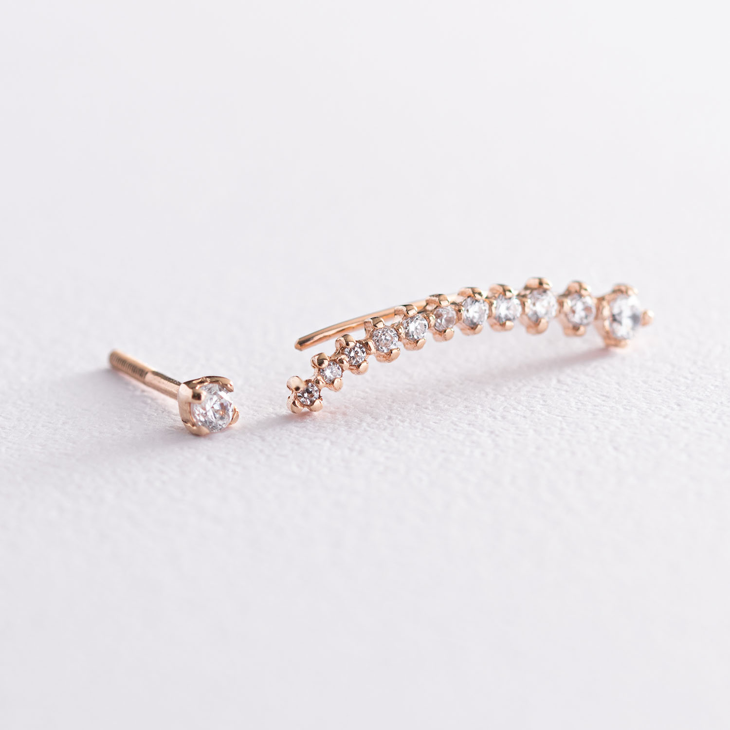 Серьги - клаймберы "Оригинальность" в красном золоте с07046