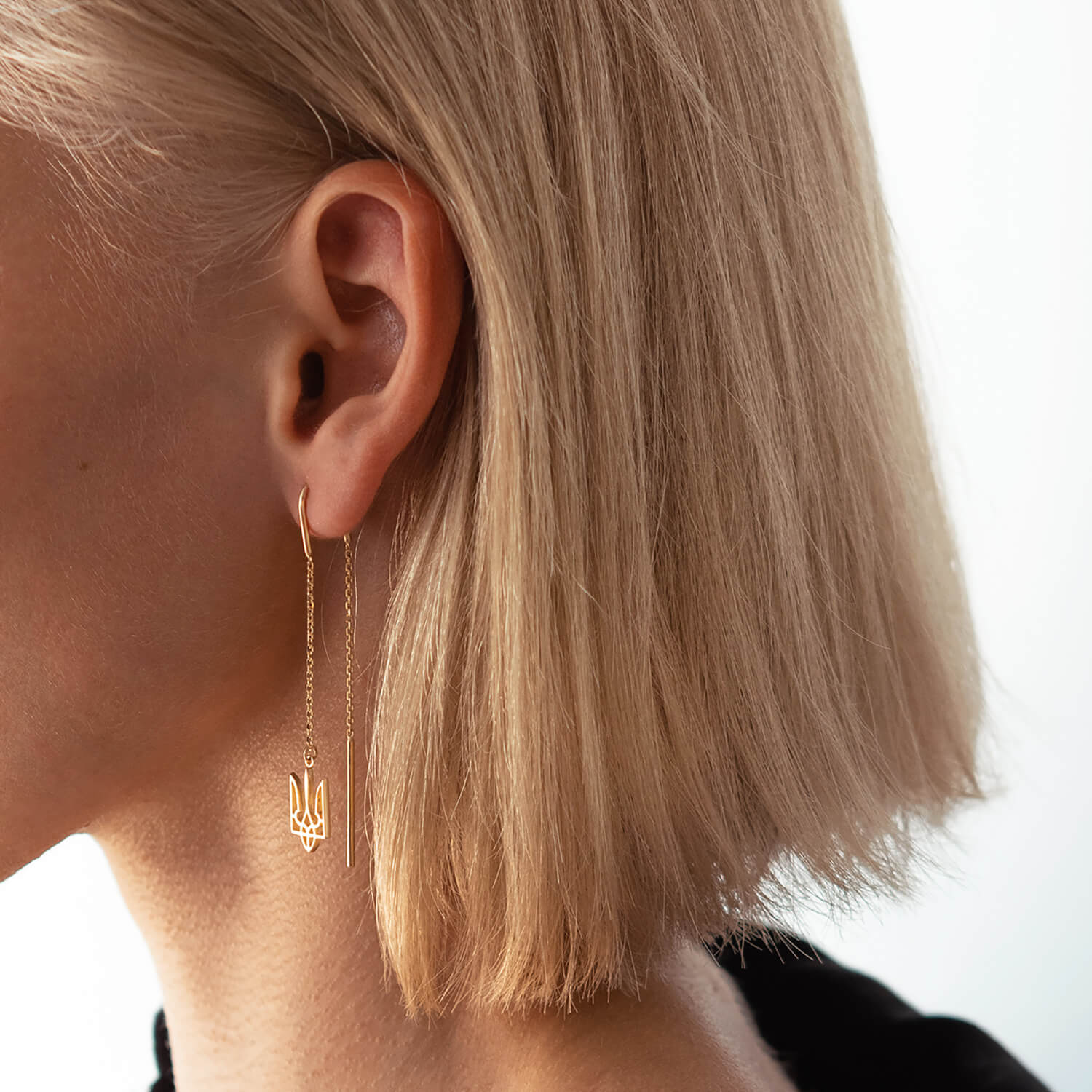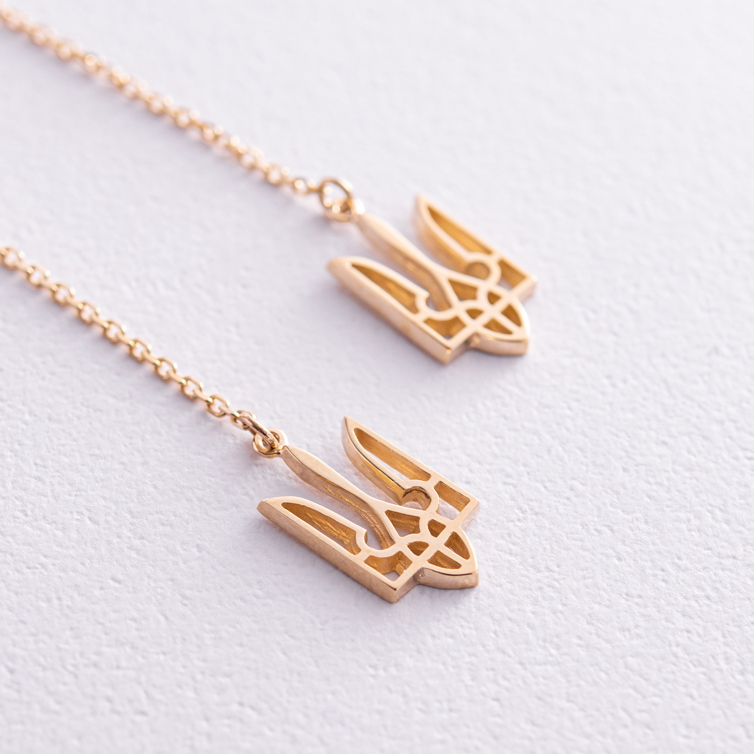 Серьги - протяжки "Герб Украины - Тризуб" (желтое золото) с07966