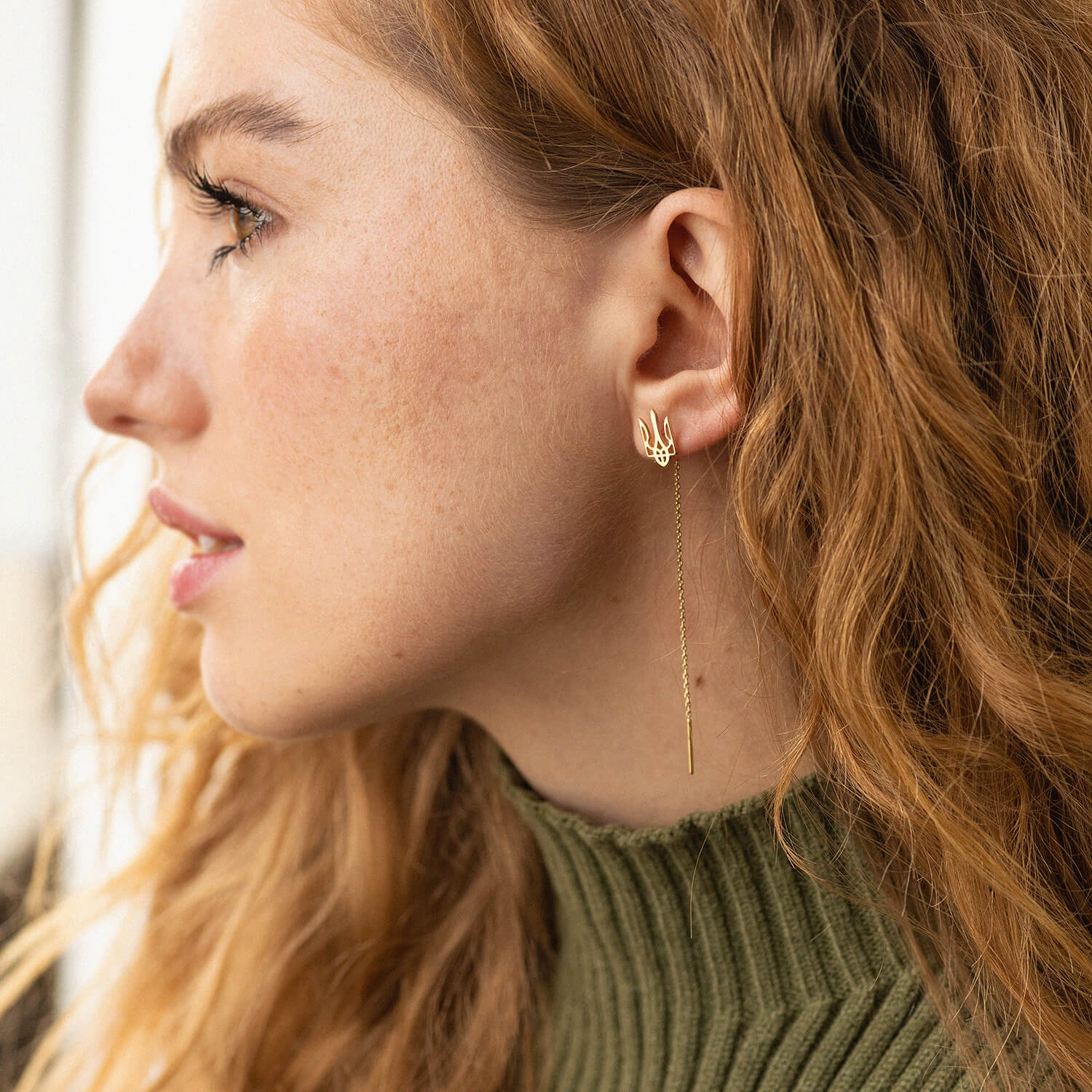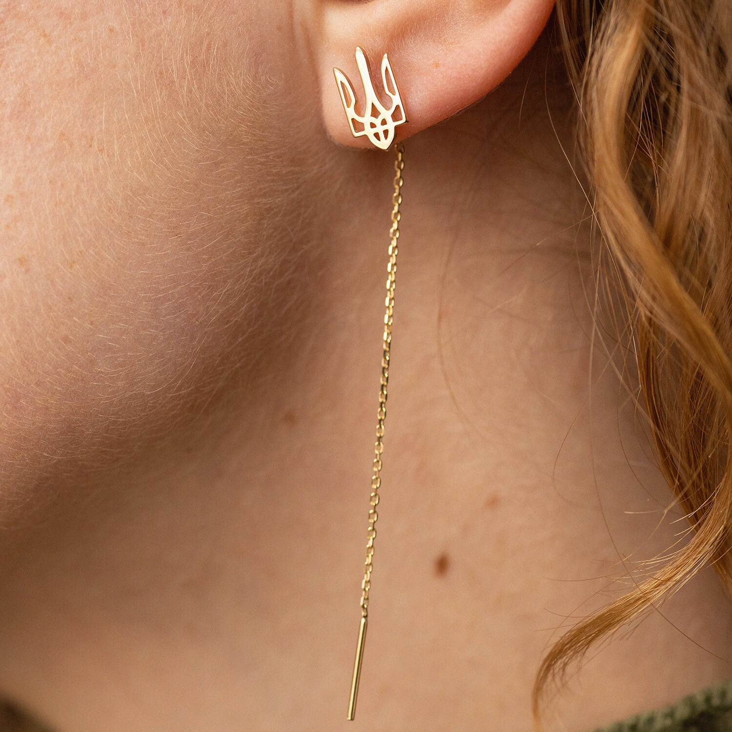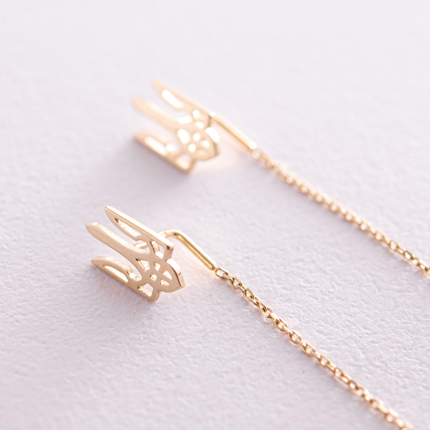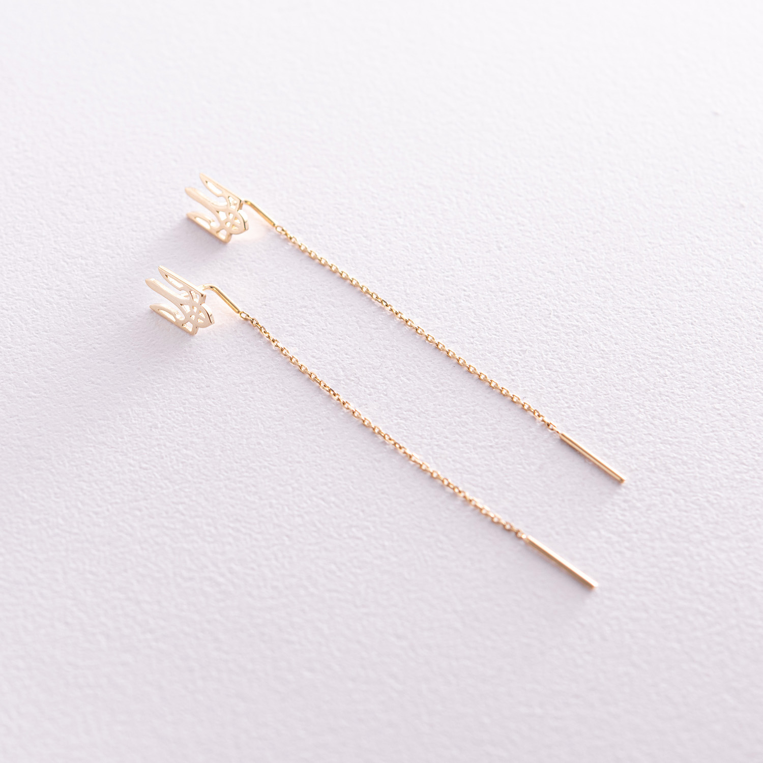 Серьги - протяжки "Герб Украины - Тризуб" (желтое золото) с08095