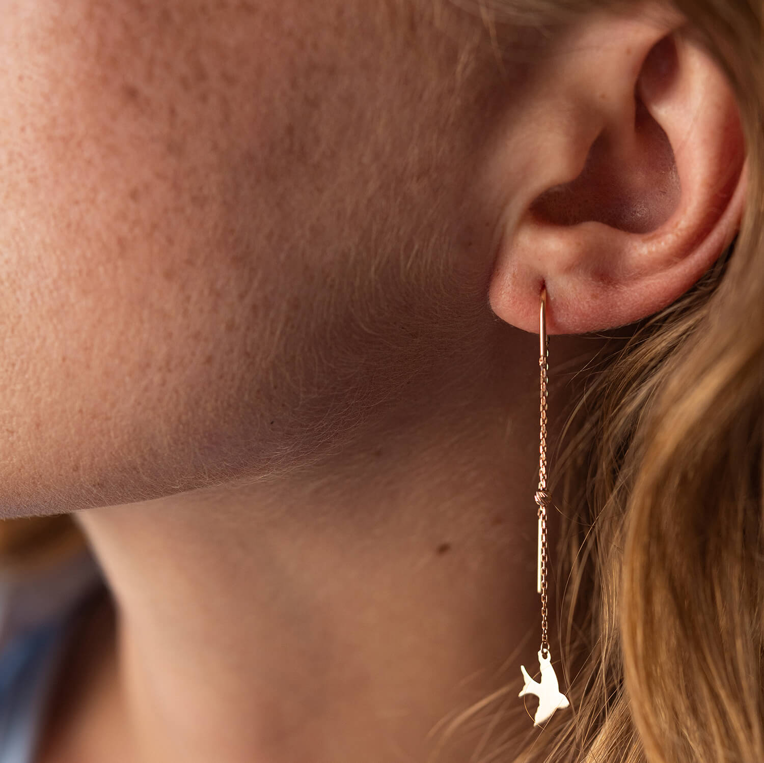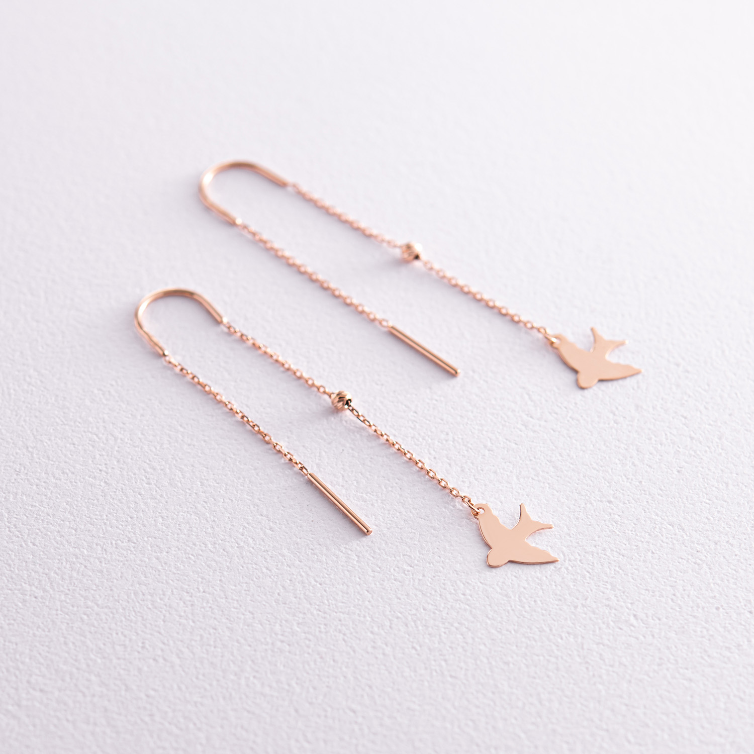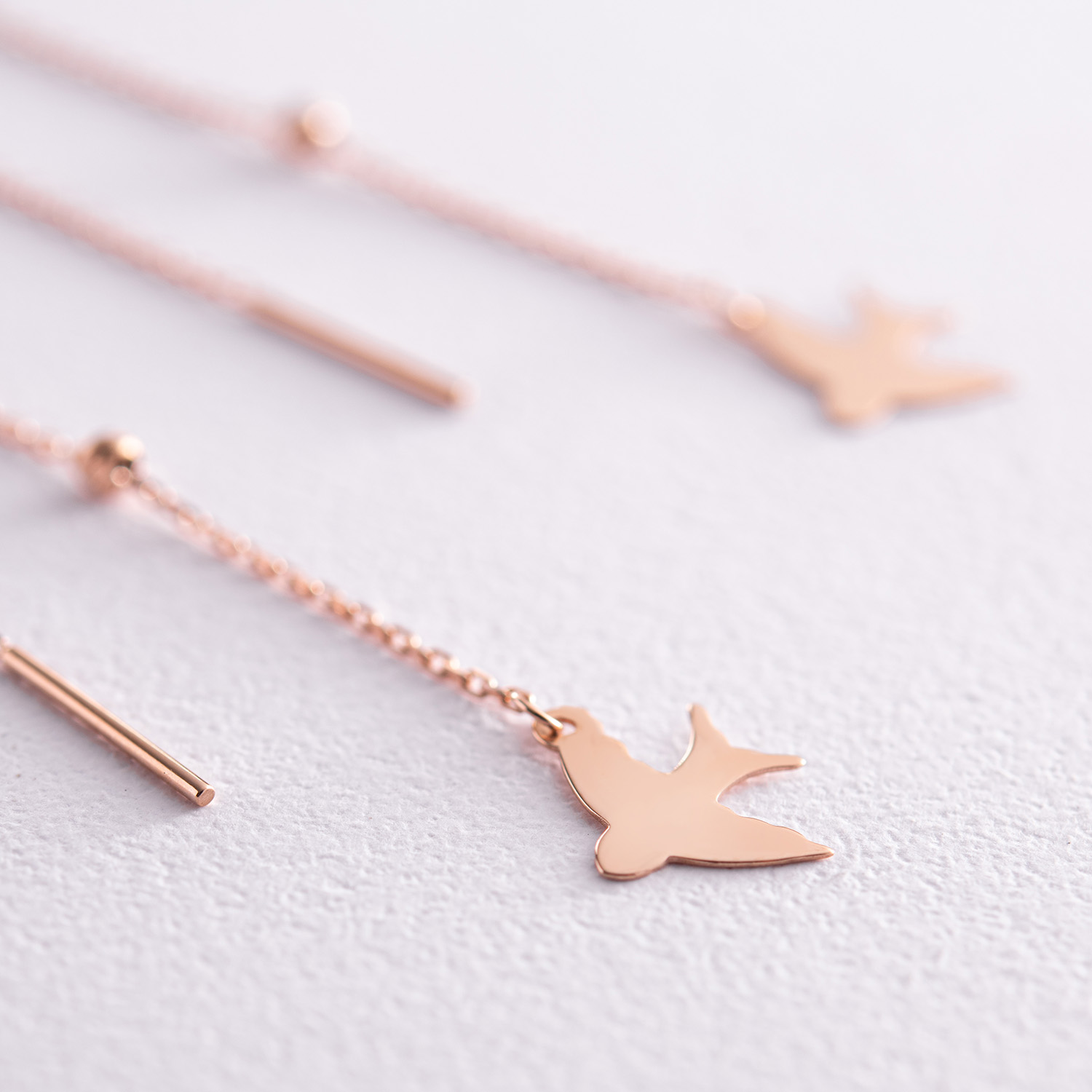Серьги - протяжки "Ласточки" в красном золоте с08049