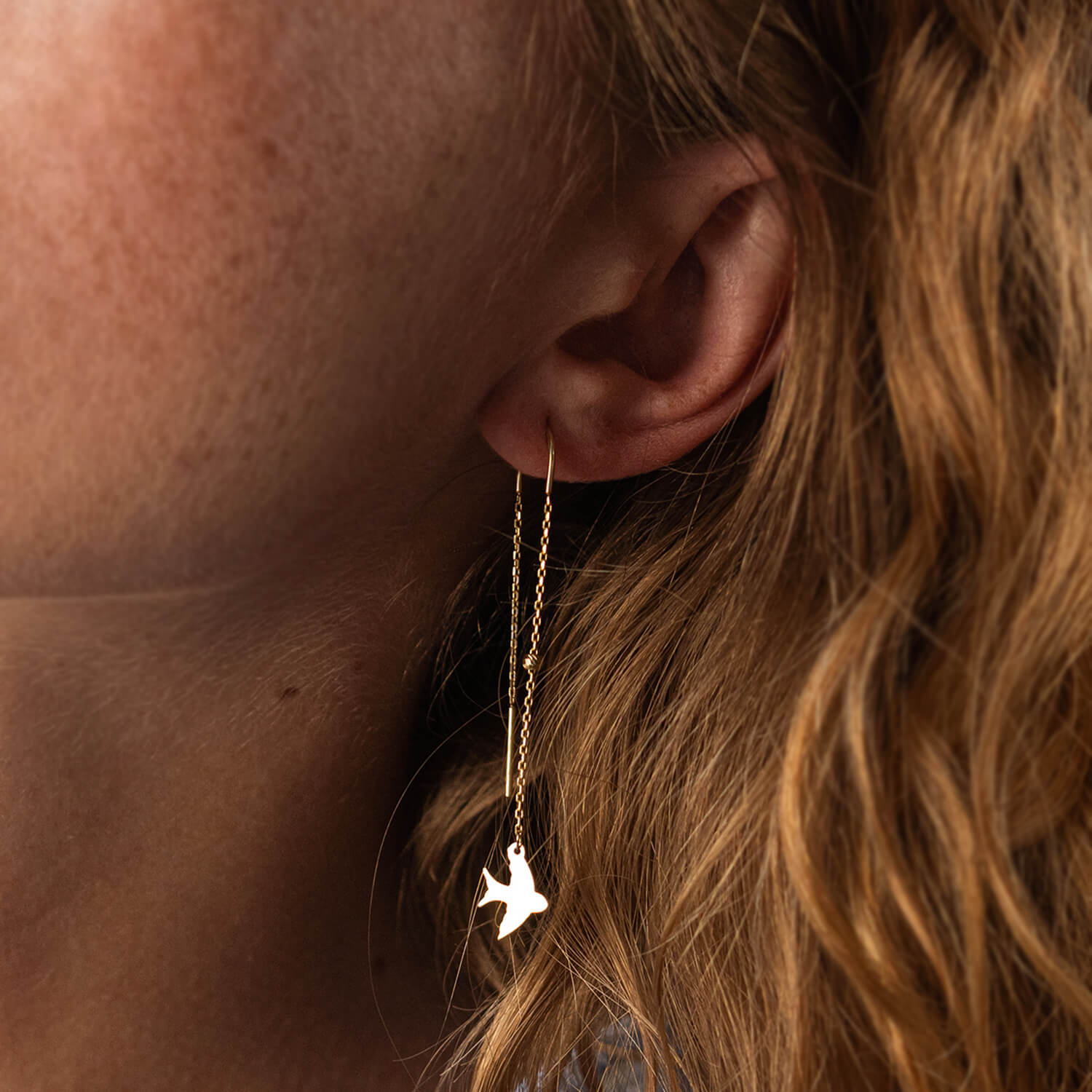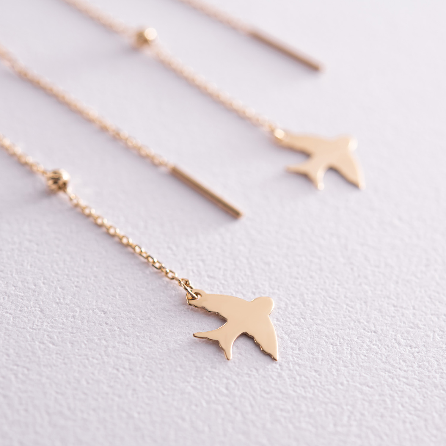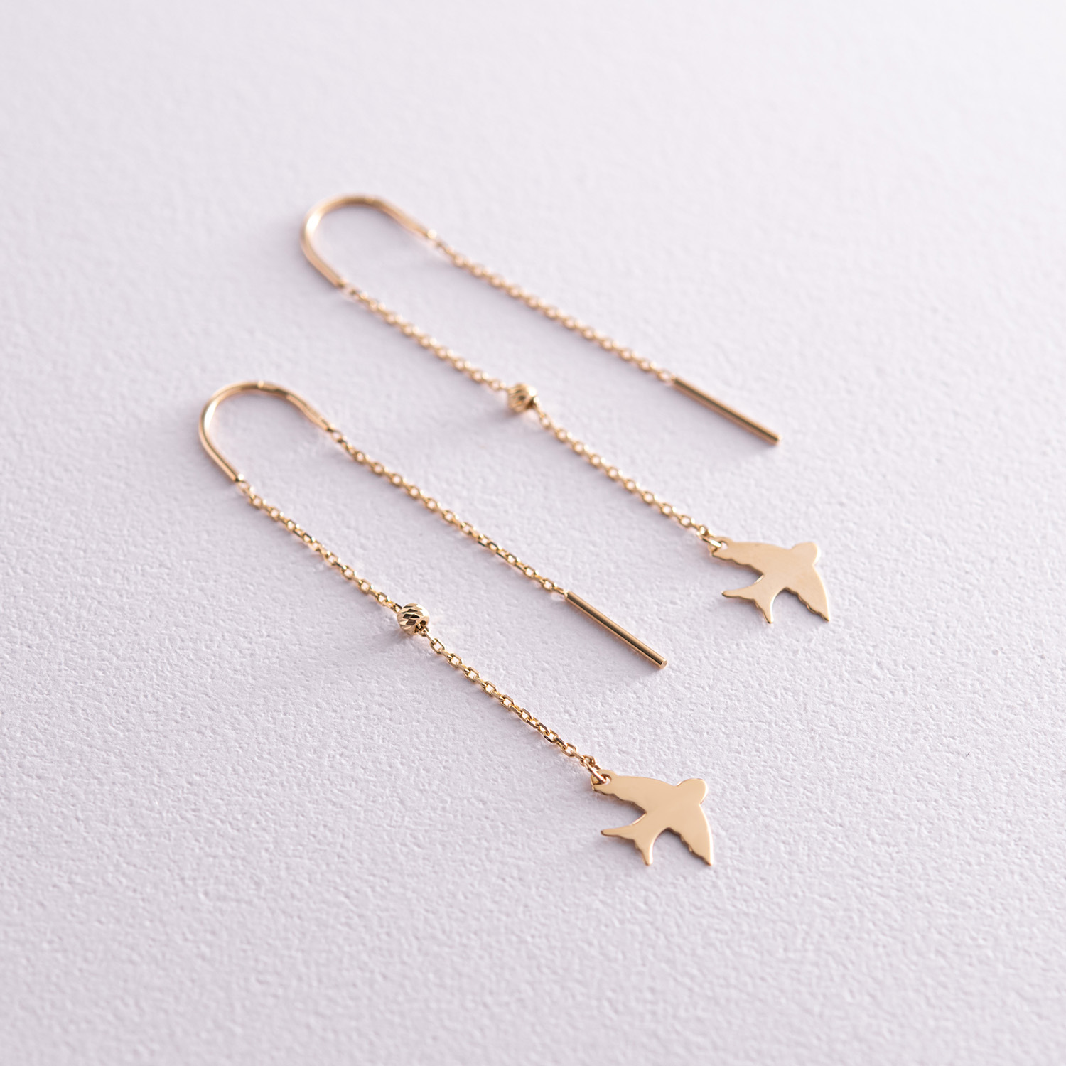 Серьги - протяжки "Ласточки" в желтом золоте с08051