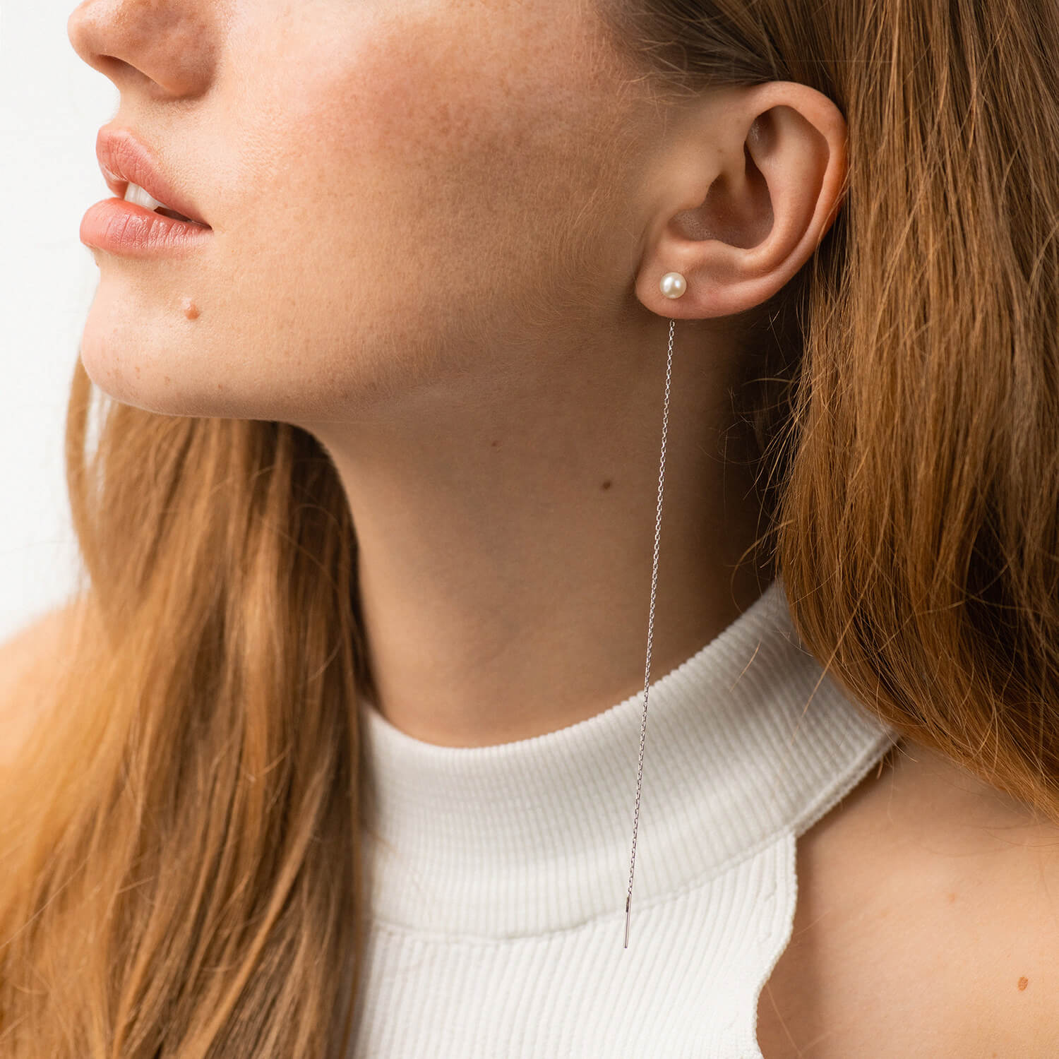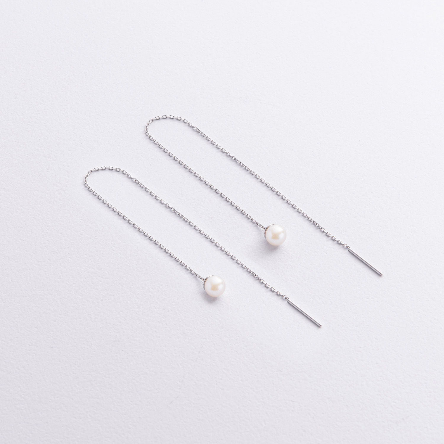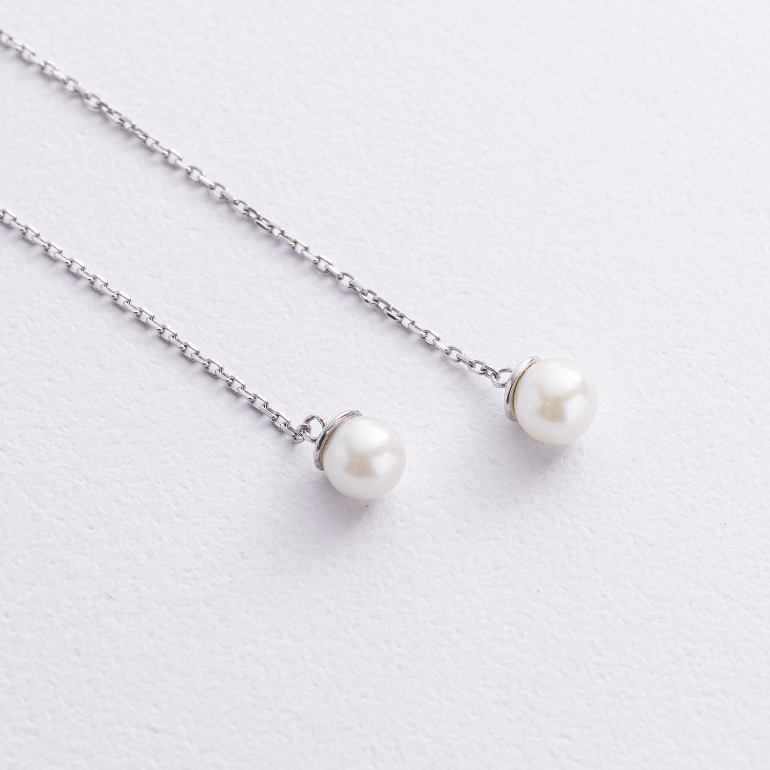Серьги - протяжки с жемчугом (белое золото) с09073