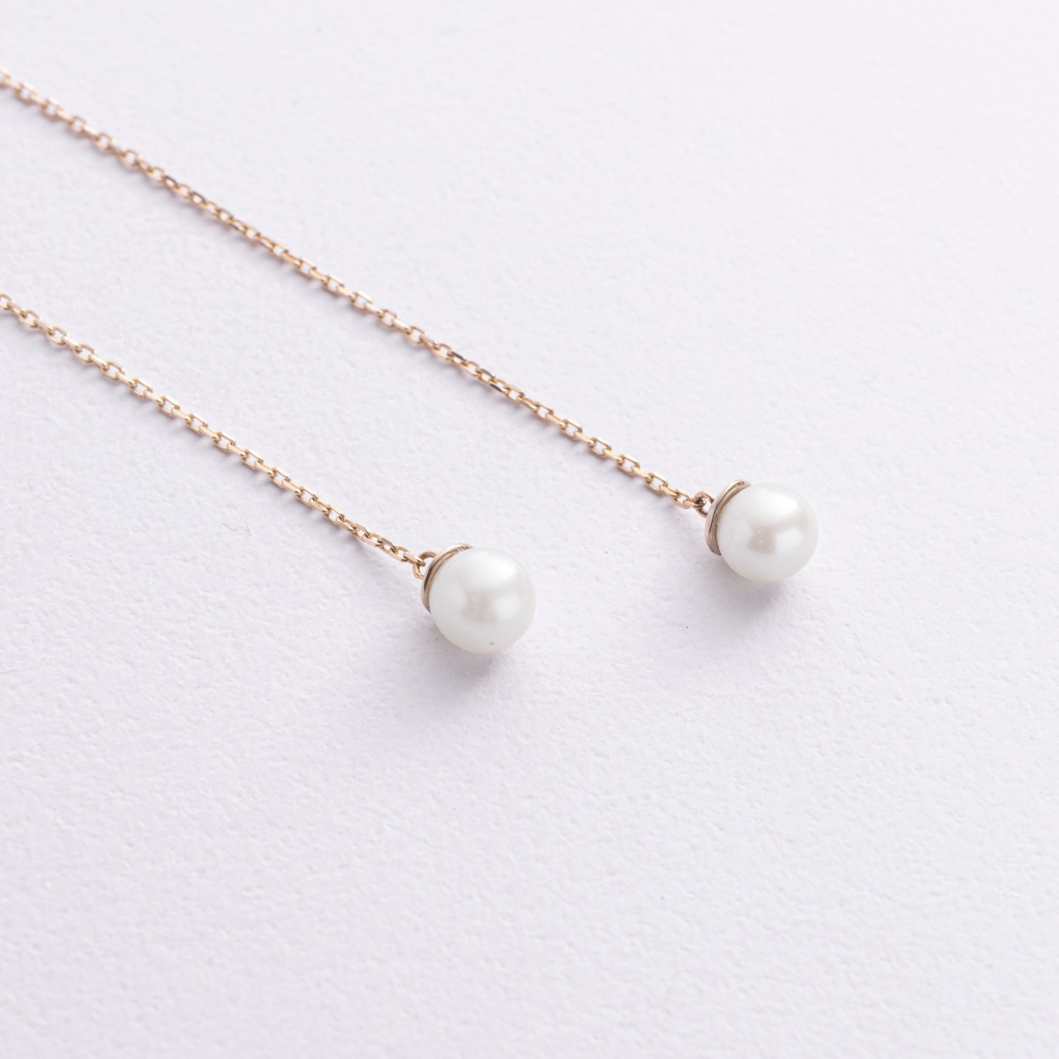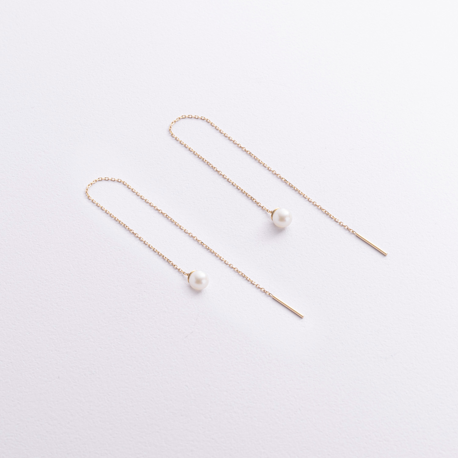 Серьги - протяжки с жемчугом (желтое золото) с09071