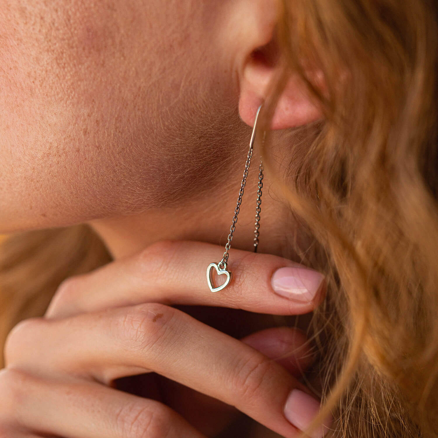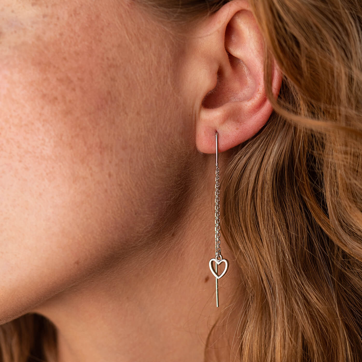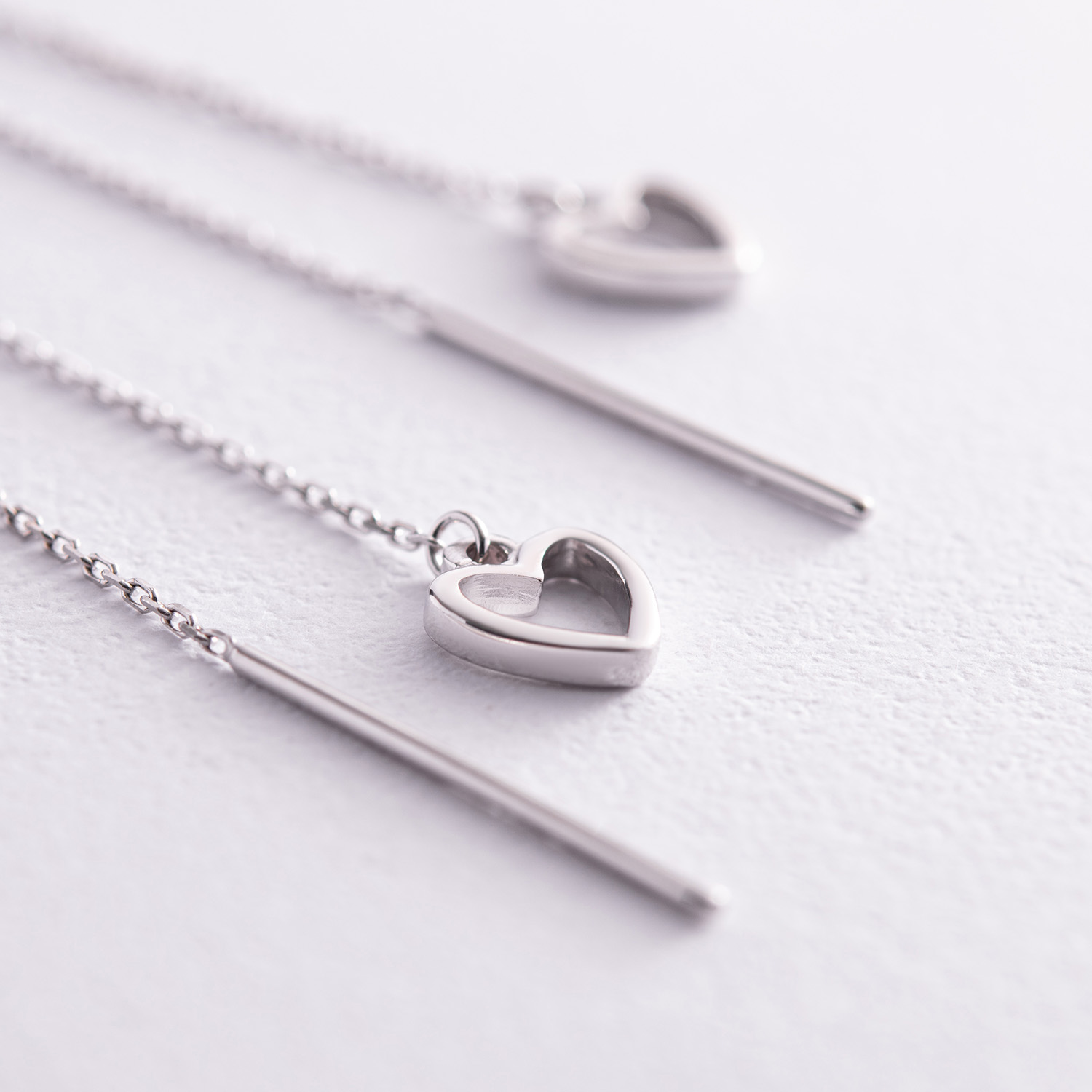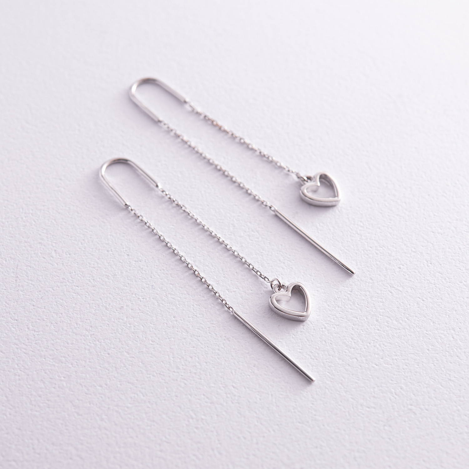 Серьги - протяжки "Сердечки" в белом золоте с08005