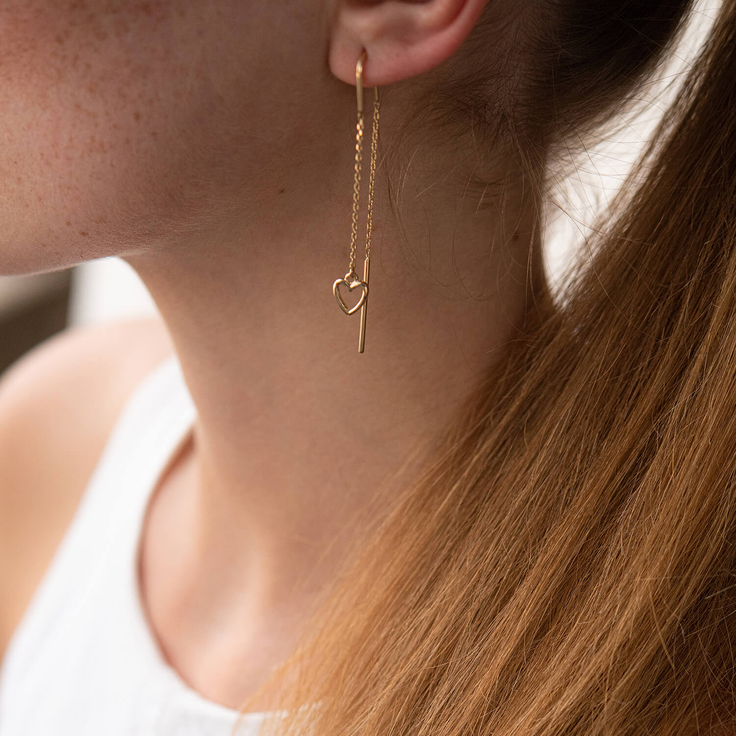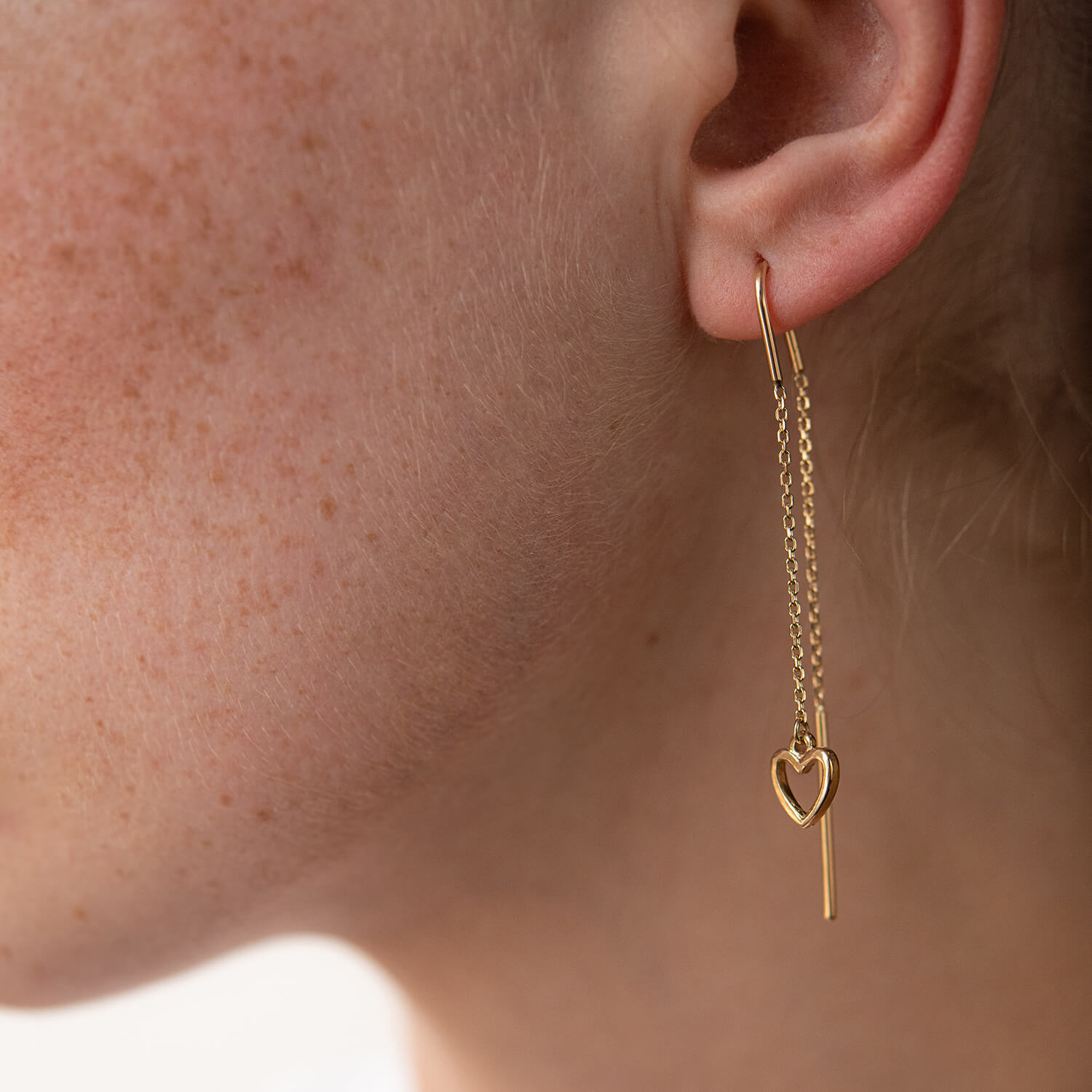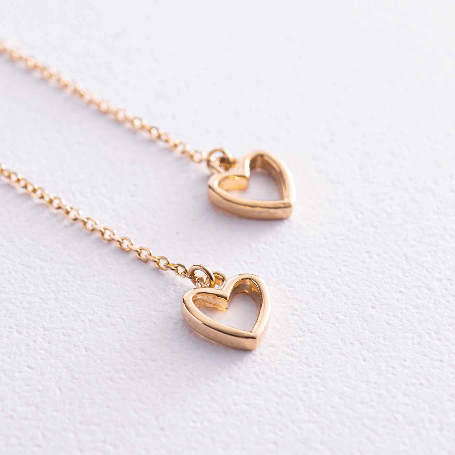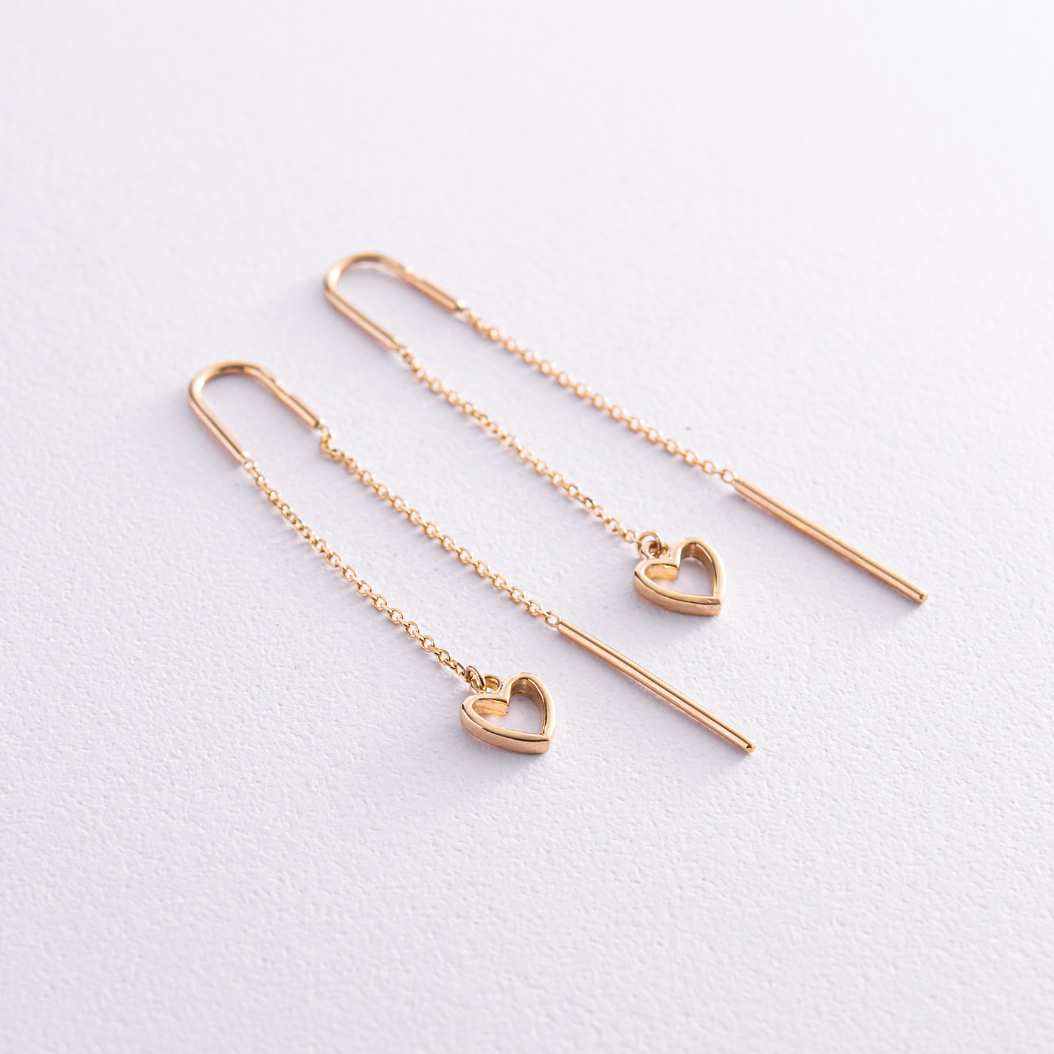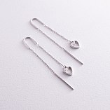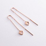 Серьги - протяжки "Сердечки" в желтом золоте с07944