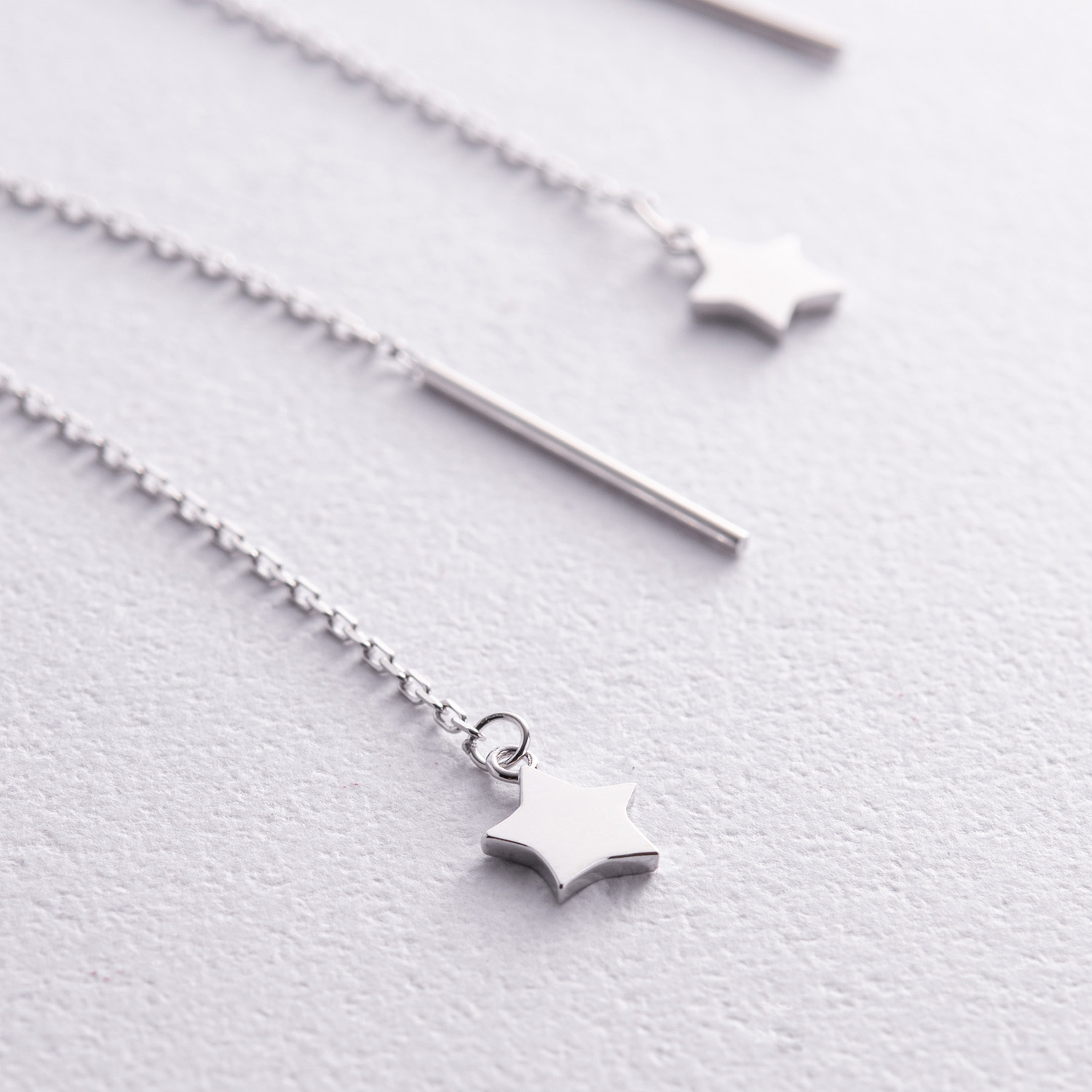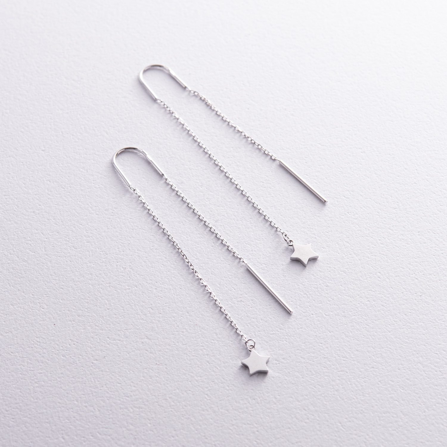 Серьги - протяжки "Звездочки" в белом золоте с05283