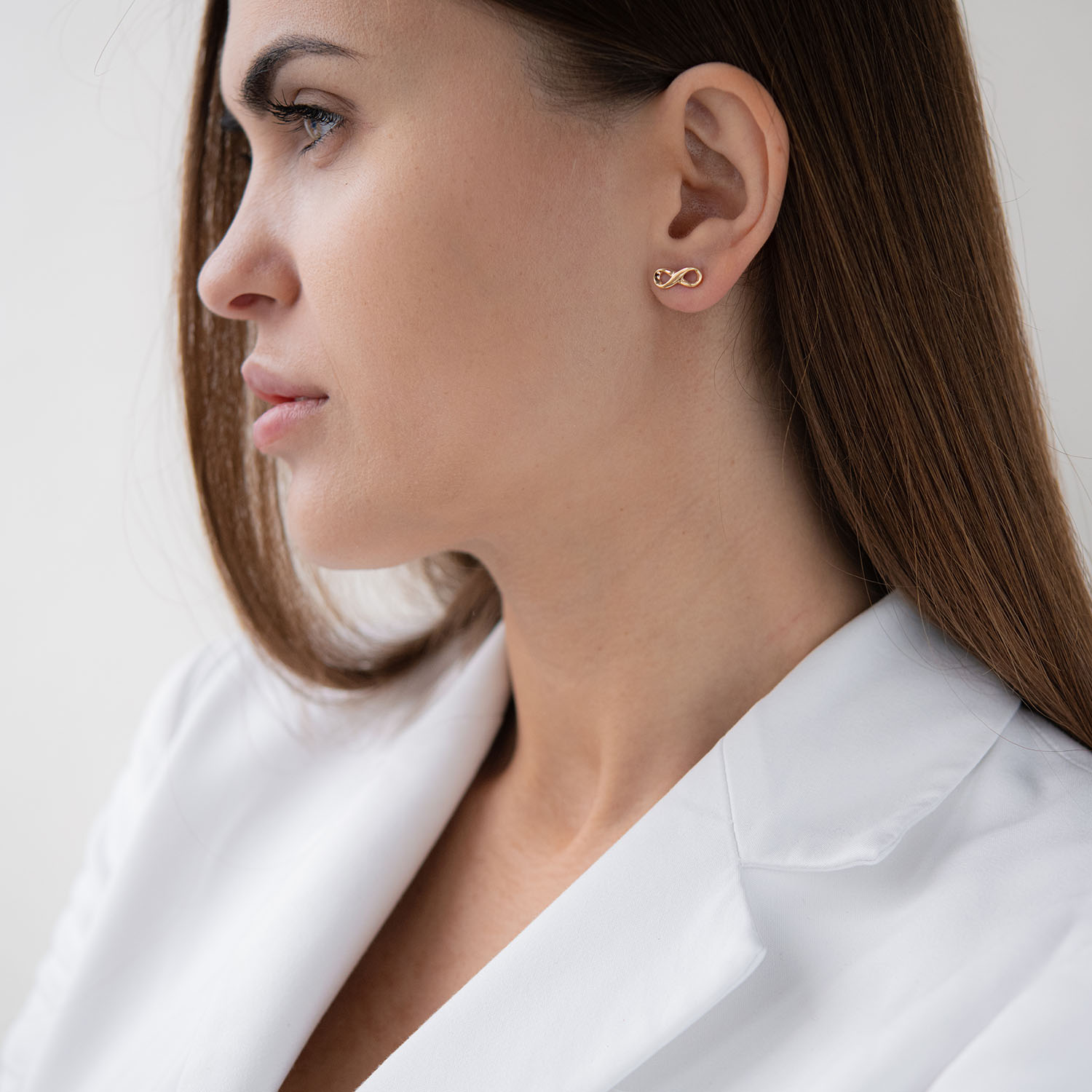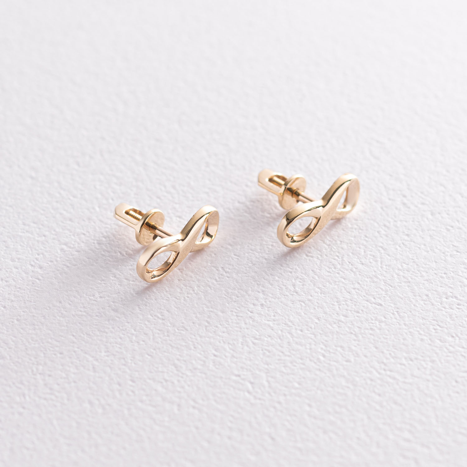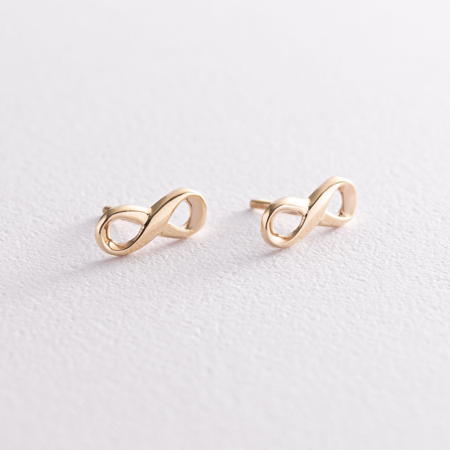 Серьги - пусеты "Бесконечность" в желтом золоте с07108