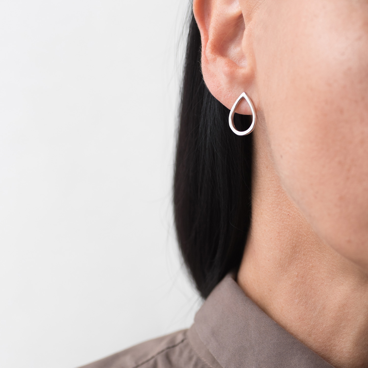 Серьги - пусеты "Большие капельки" в белом золоте с06410