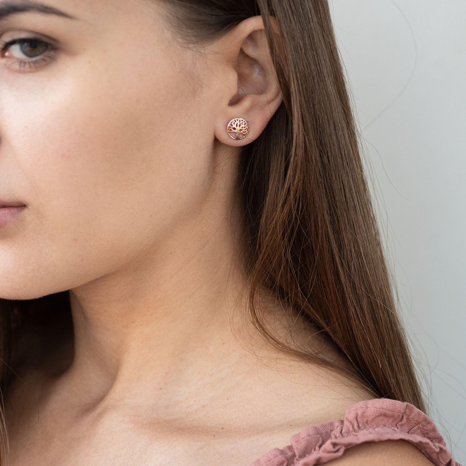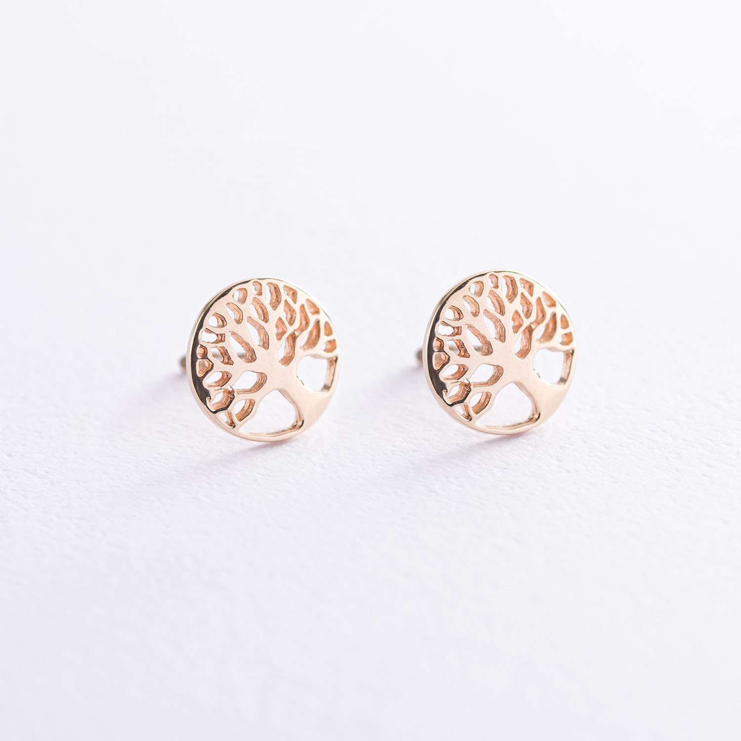 Серьги - пусеты "Древо жизни" в красном золоте с06964