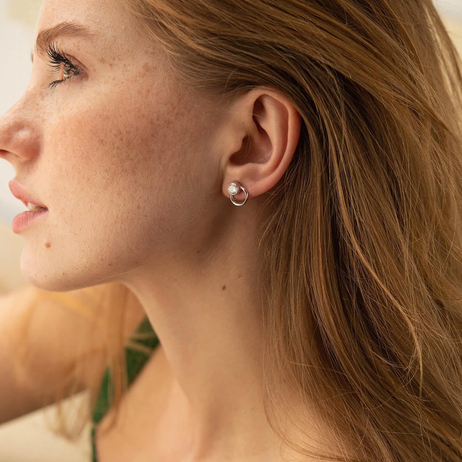 Серьги - пусеты "Эйприл" с фианитами (белое золото) с08495