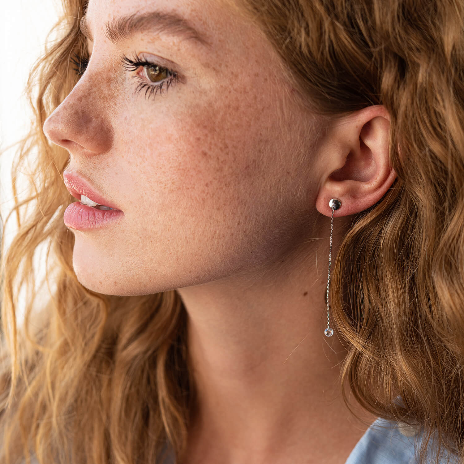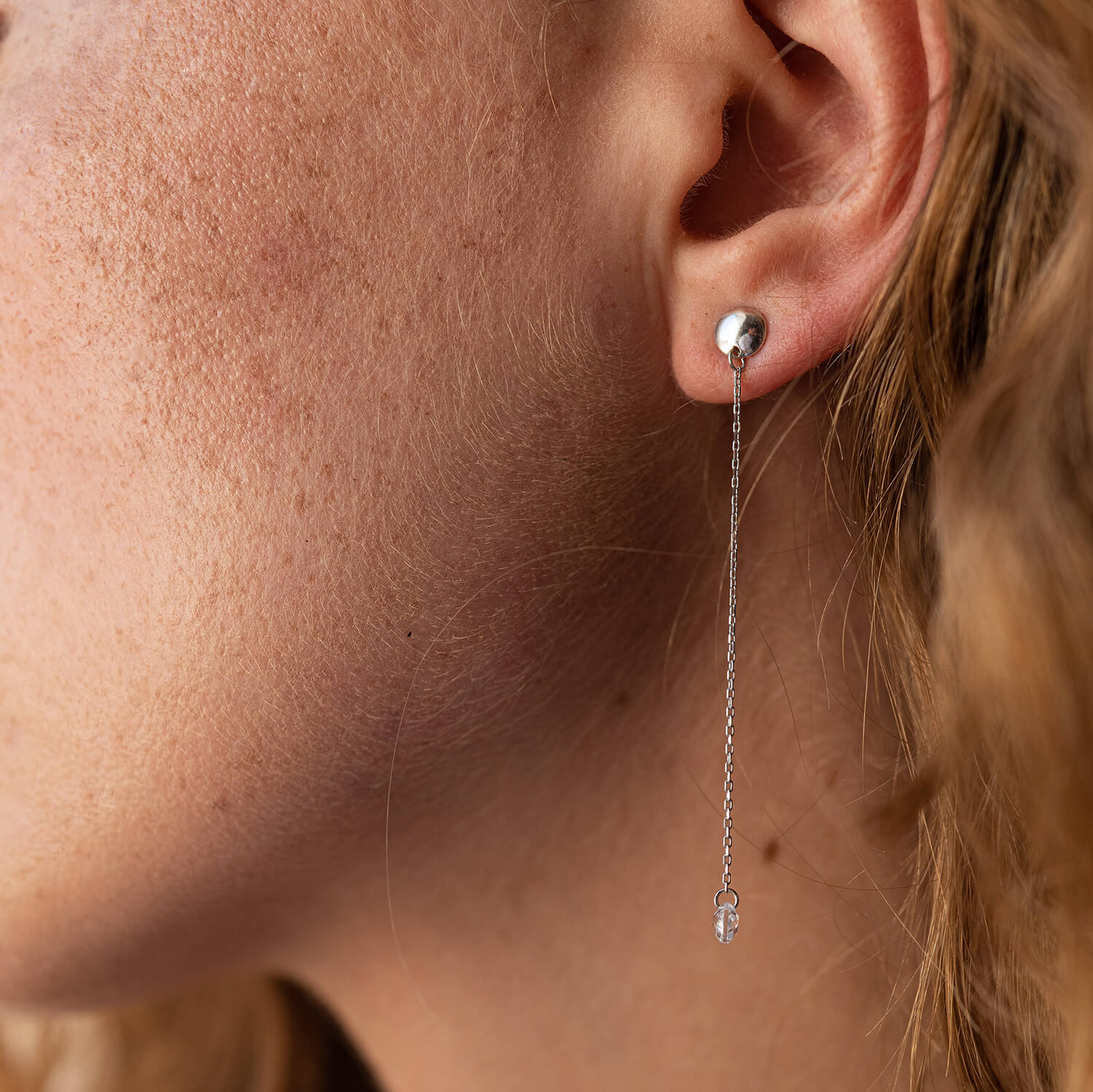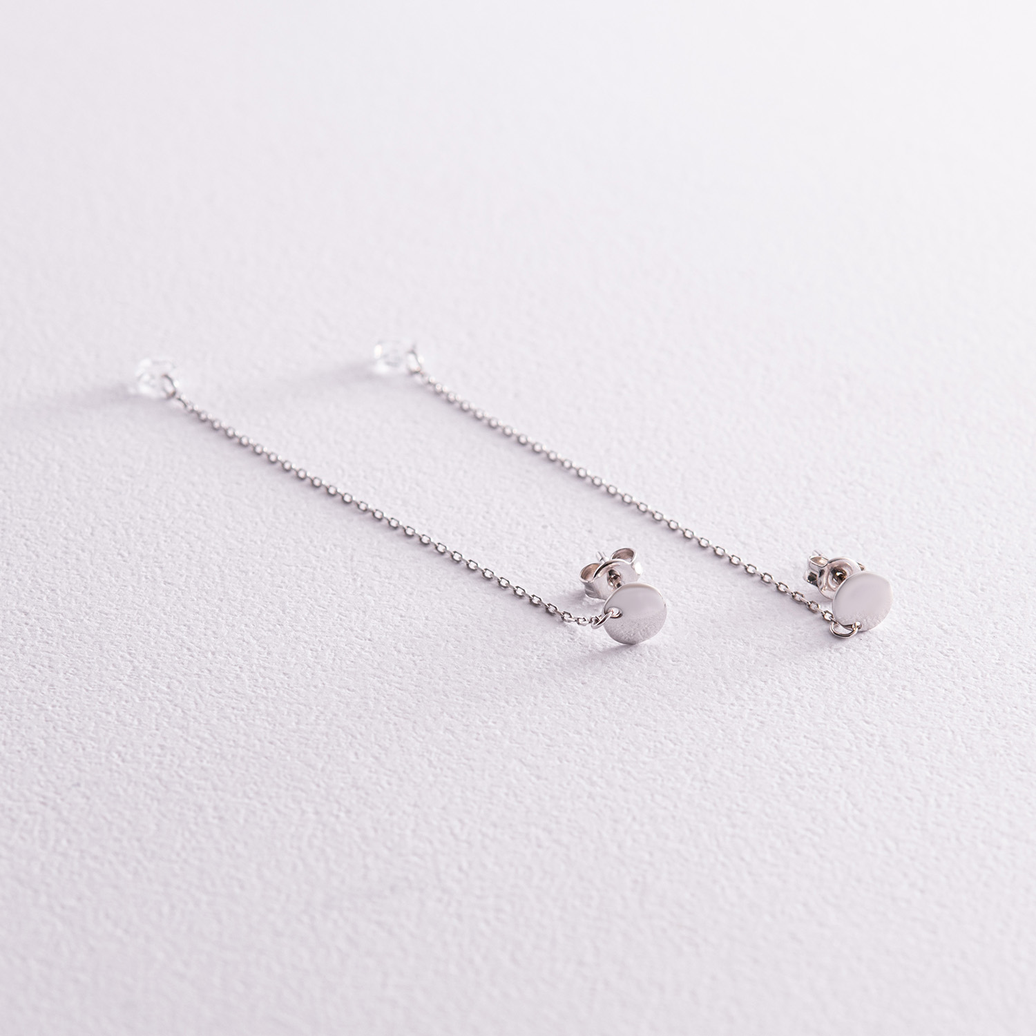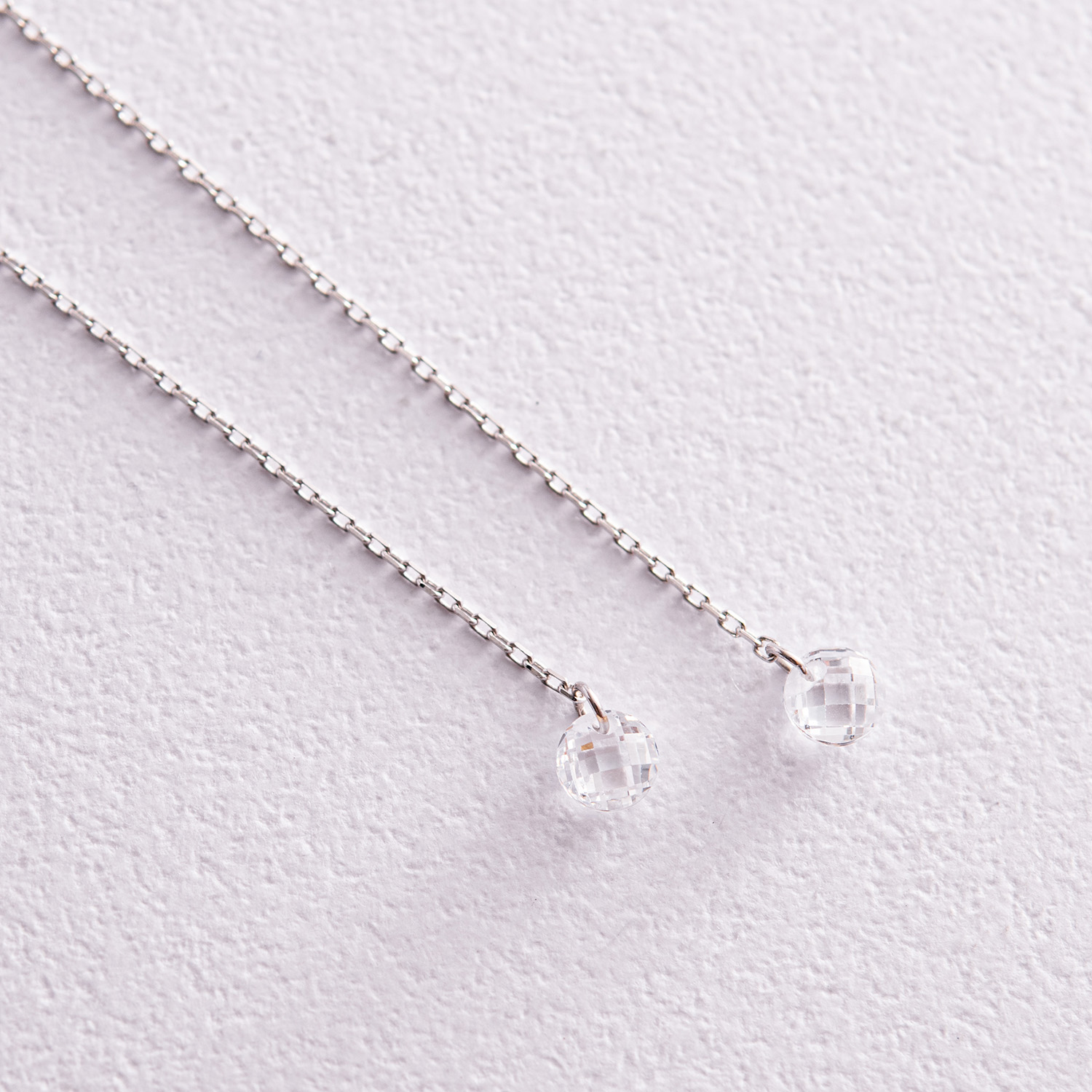 Серьги - пусеты "Фианит на цепочке" в белом золоте с08042