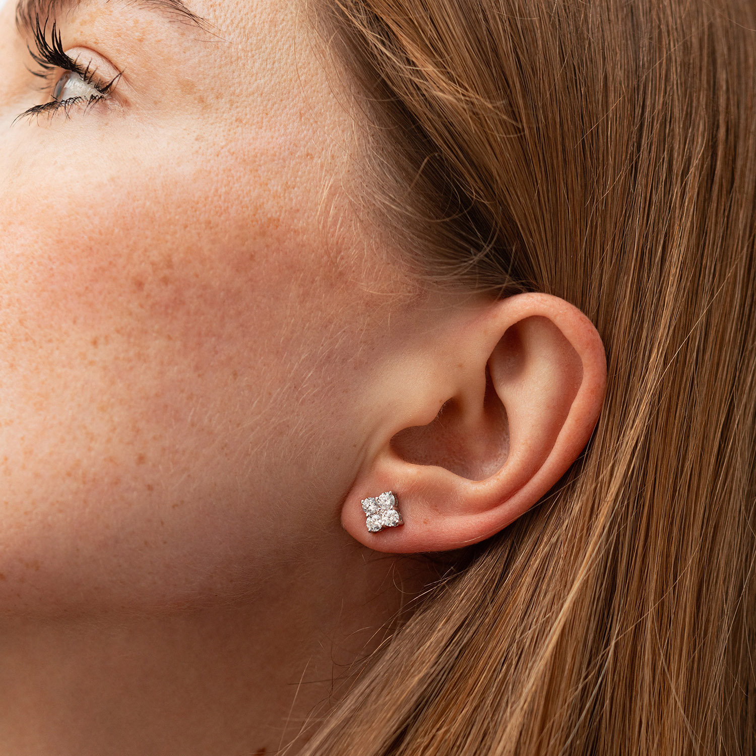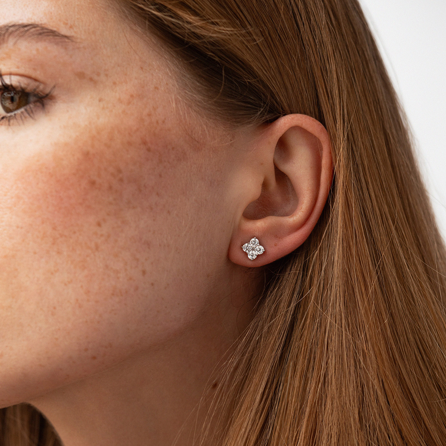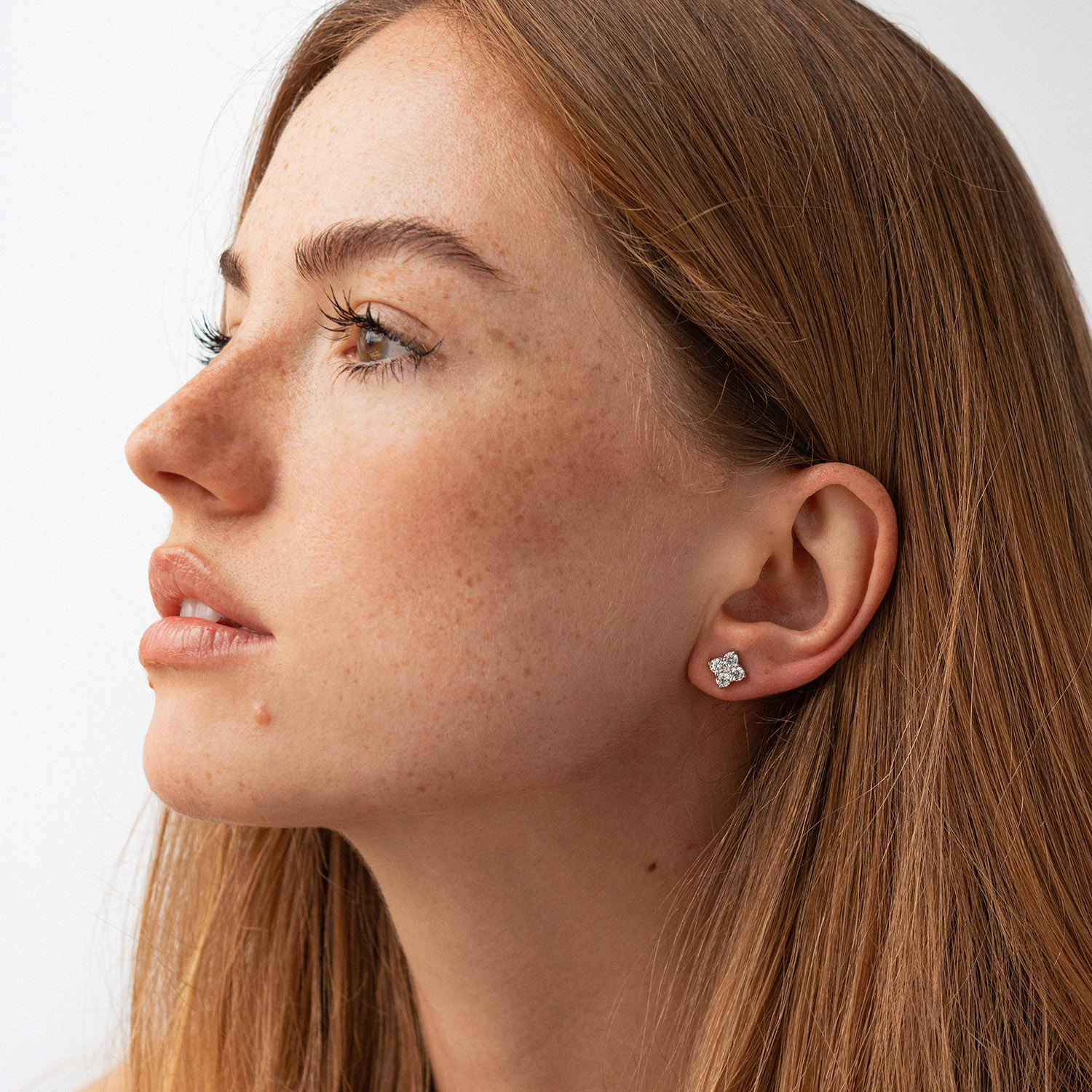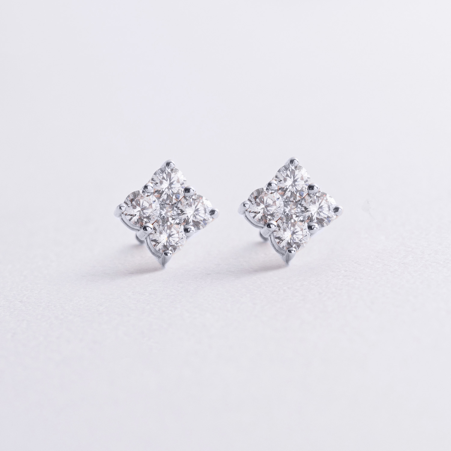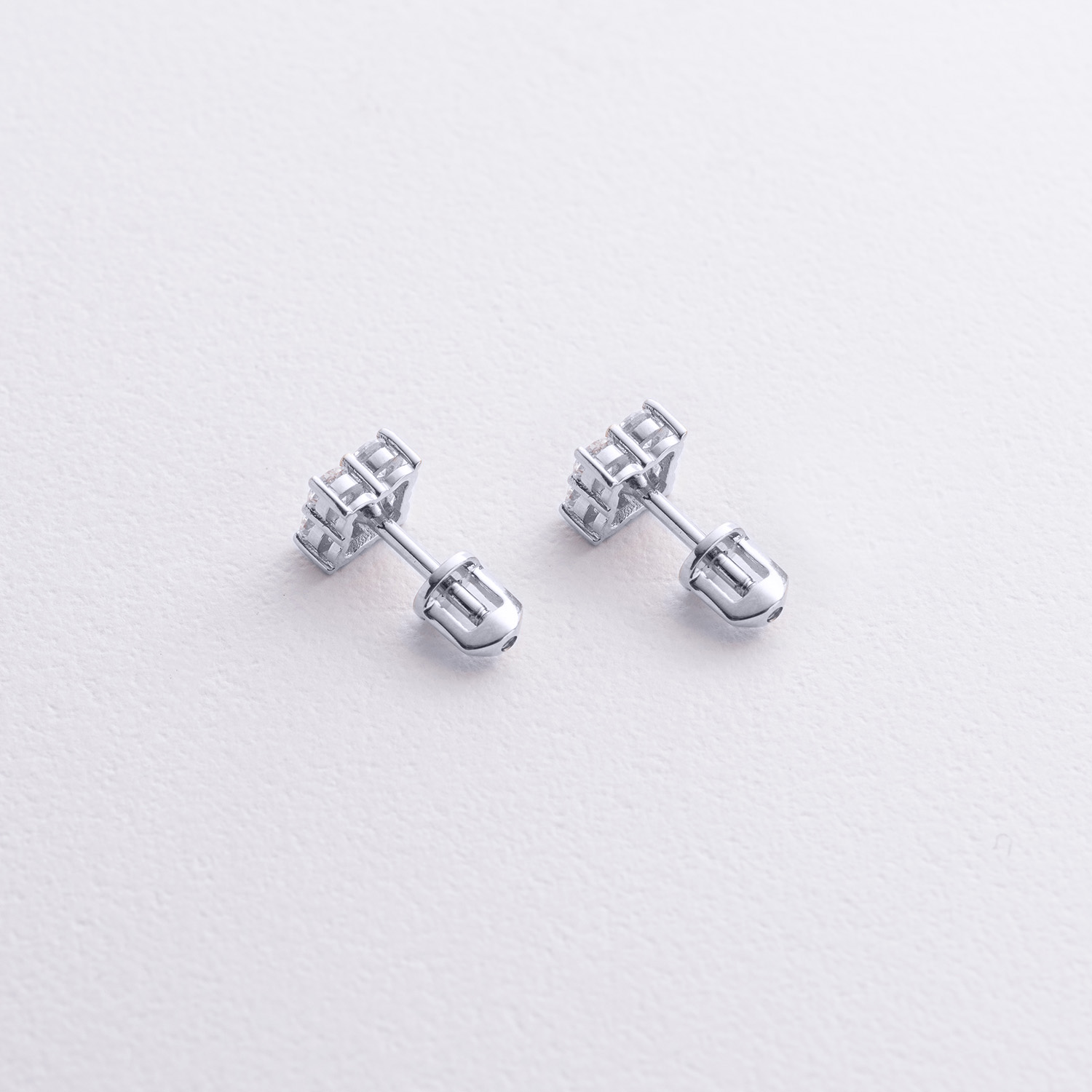 Серьги - пусеты "Fleur" с фианитами (белое золото) с09142