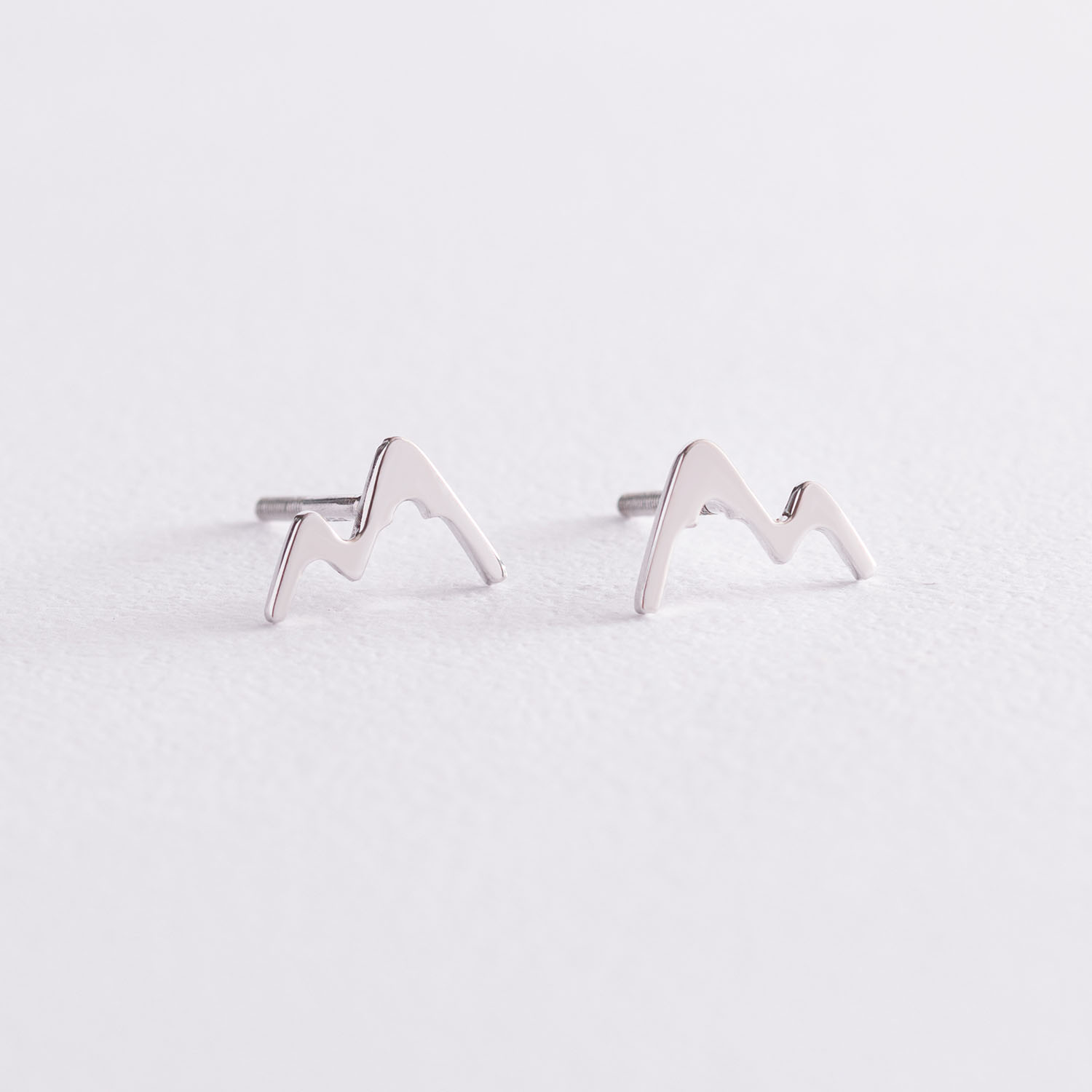 Серьги - пусеты "Горы" в белом золоте с07518