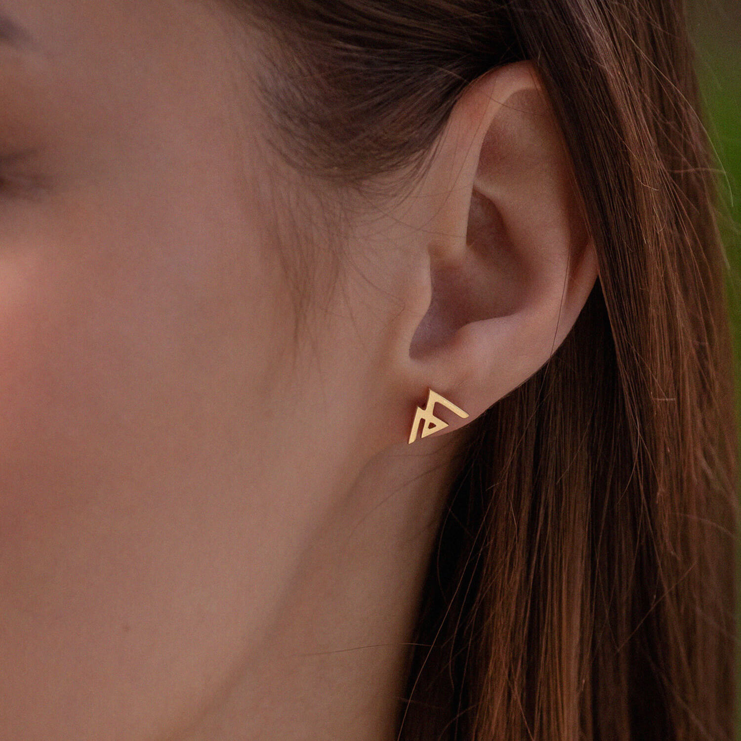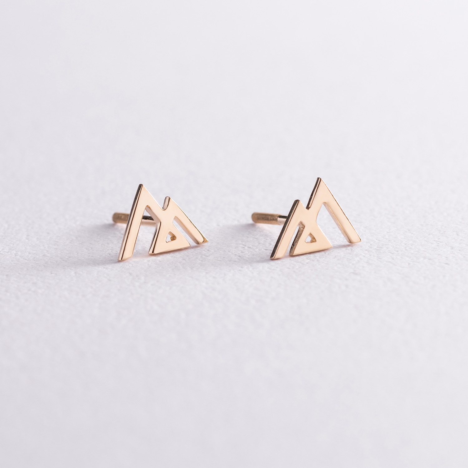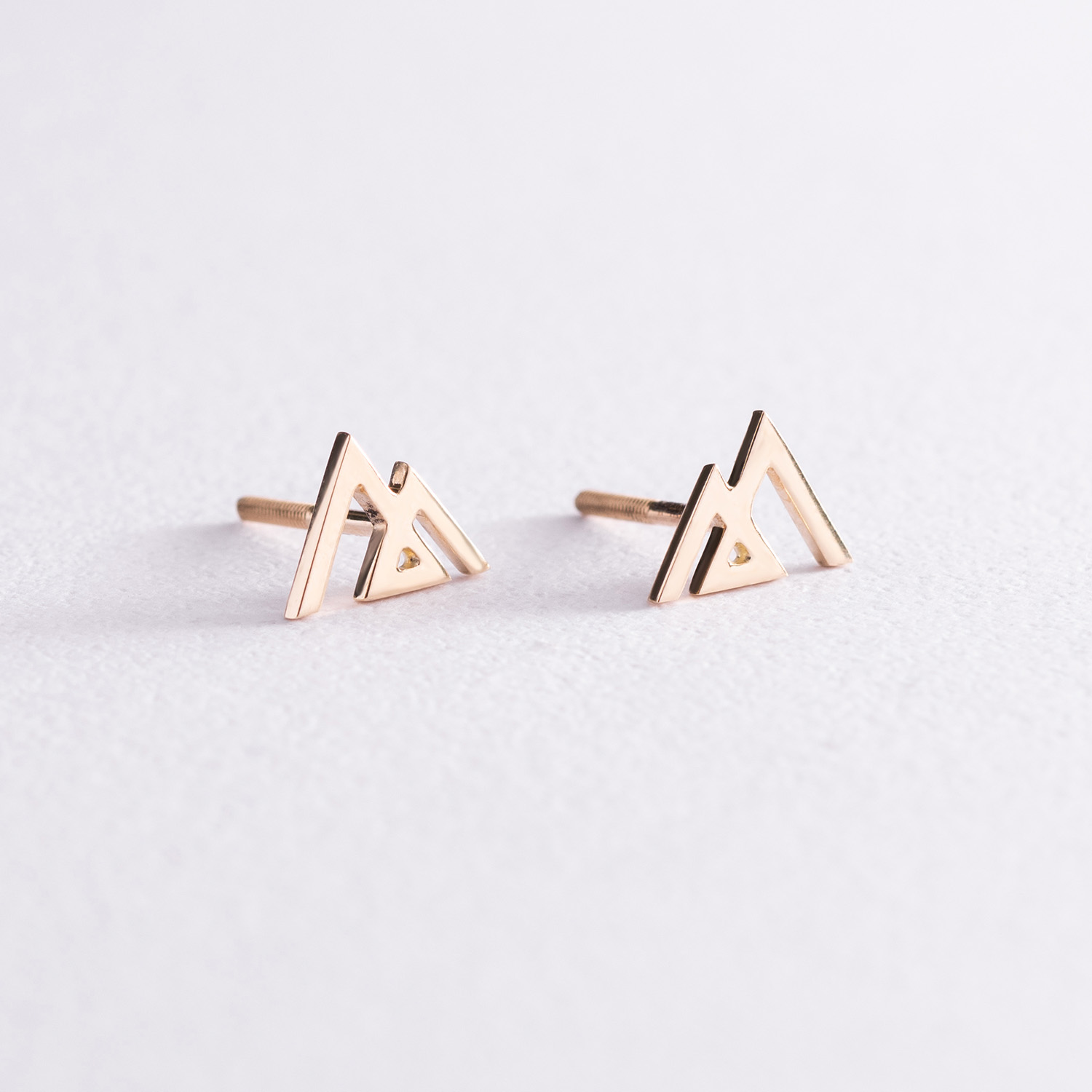 Серьги - пусеты "Горы" в желтом золоте с07574
