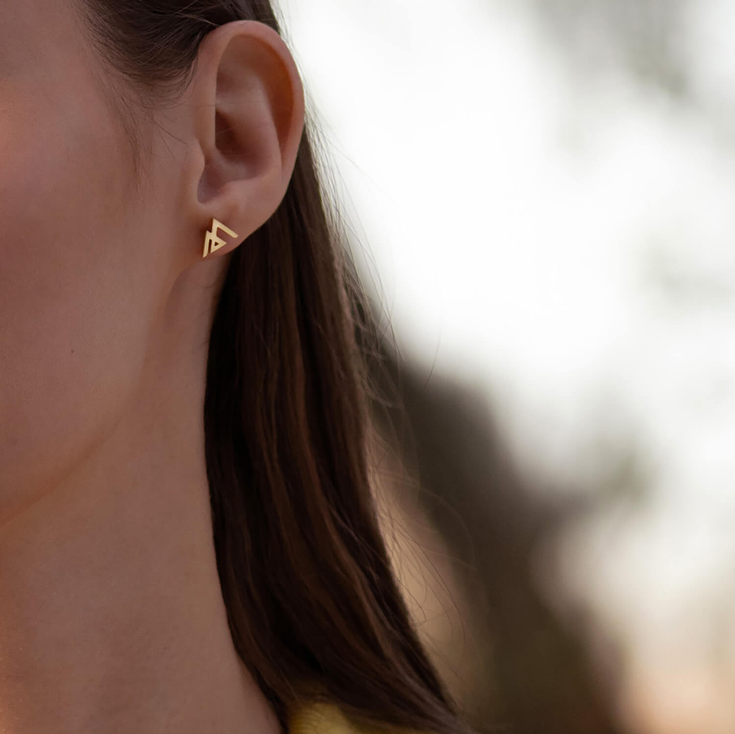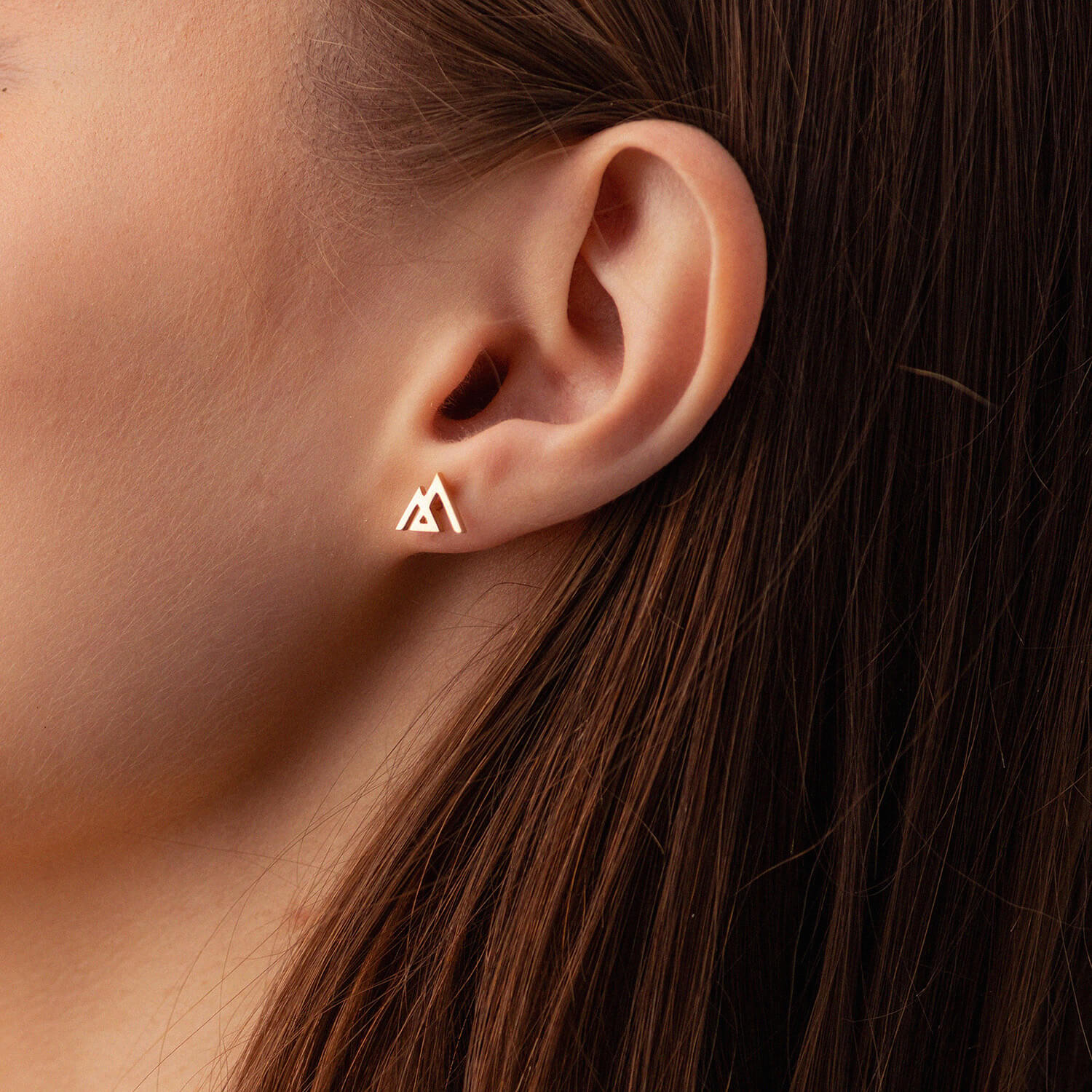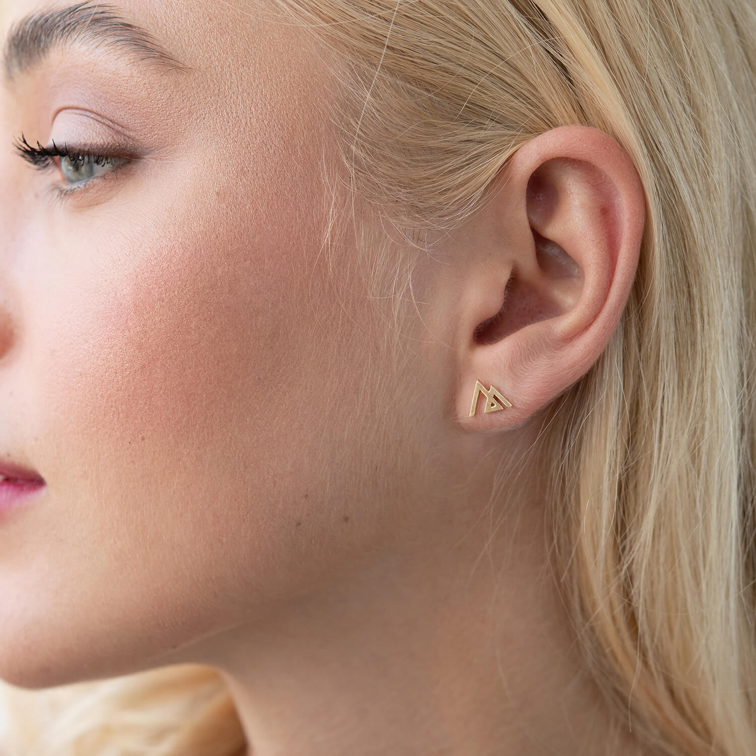 Серьги - пусеты "Горы" в желтом золоте с07574