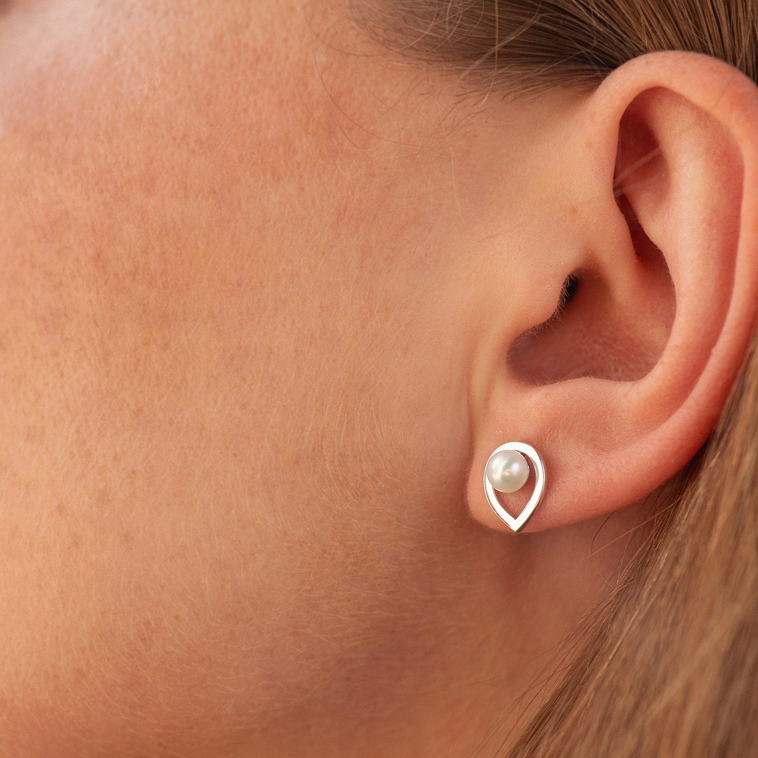Серьги - пусеты "Капельки" с жемчугом (белое золото) с09055