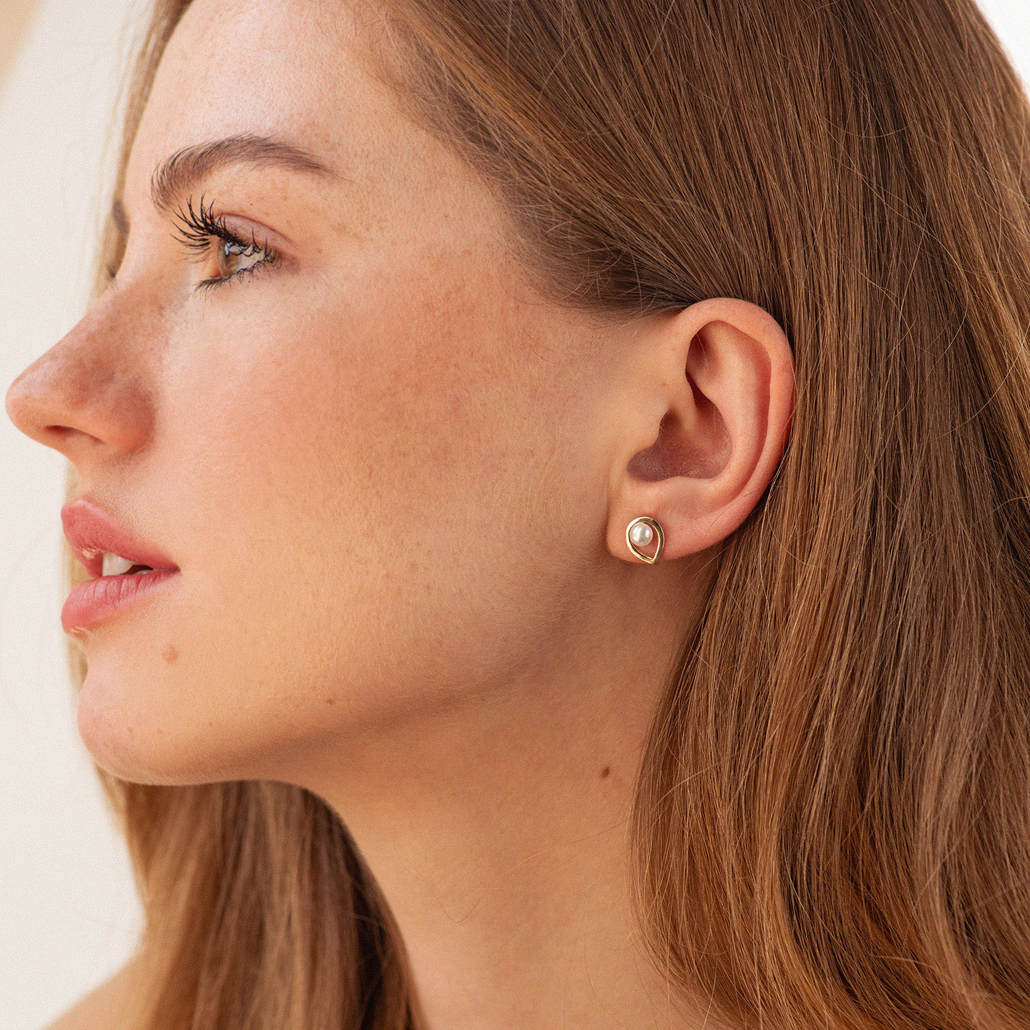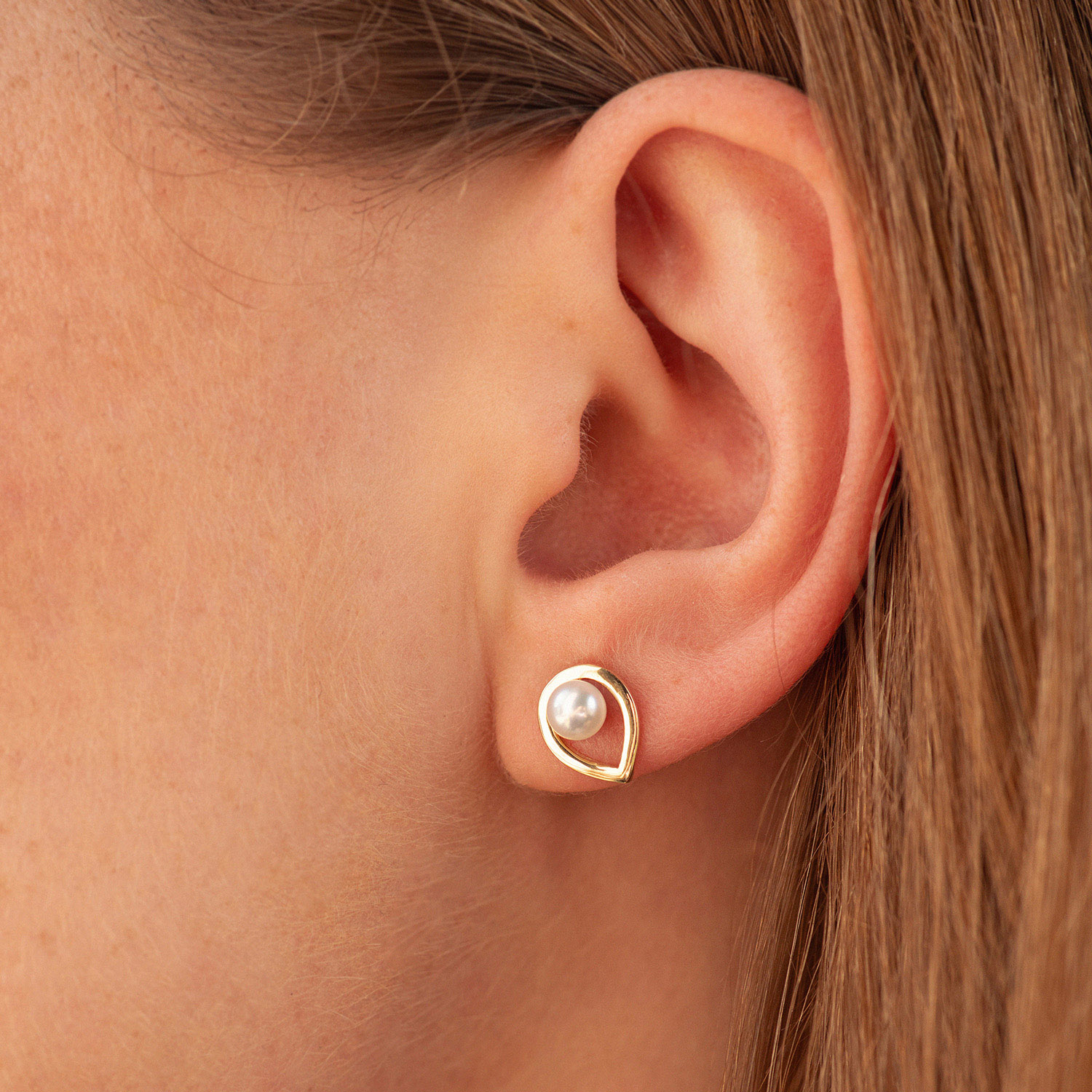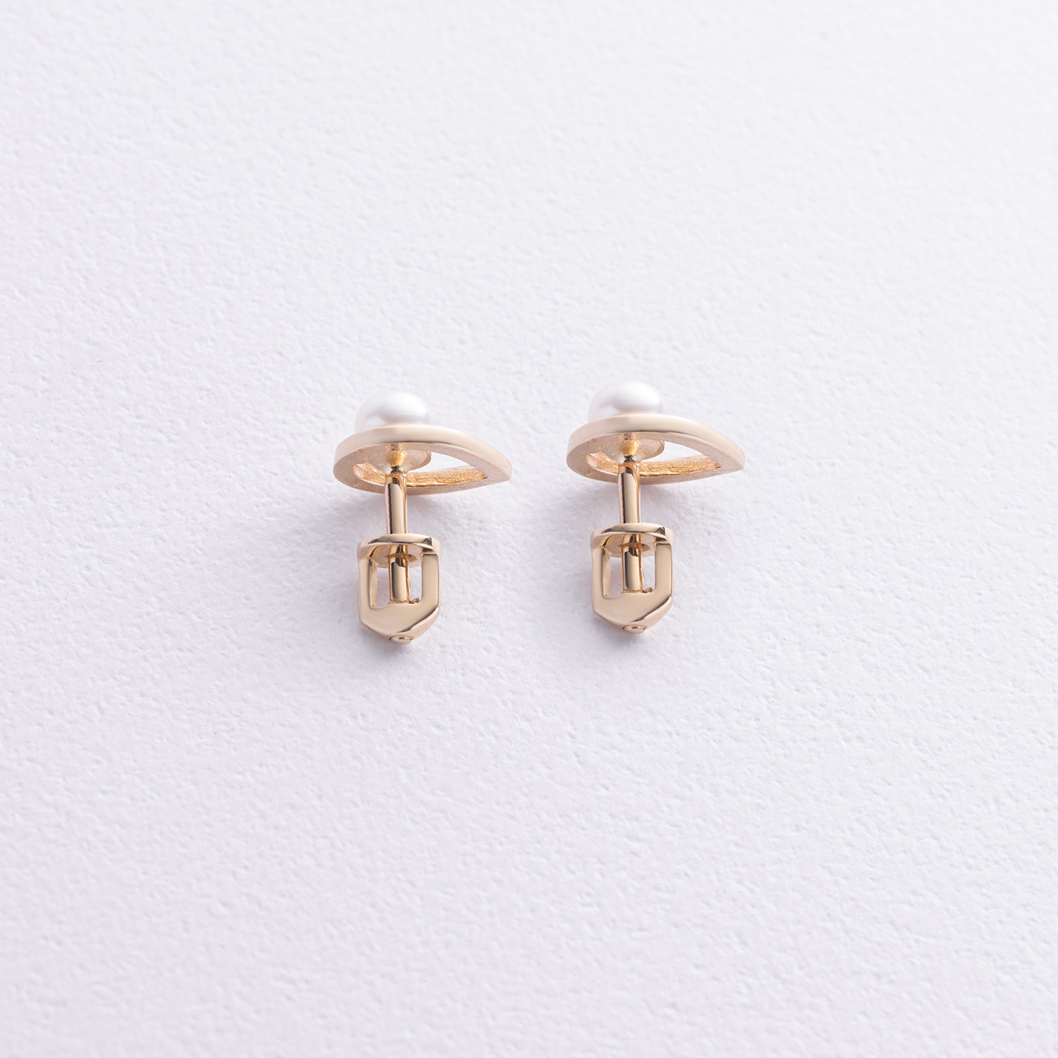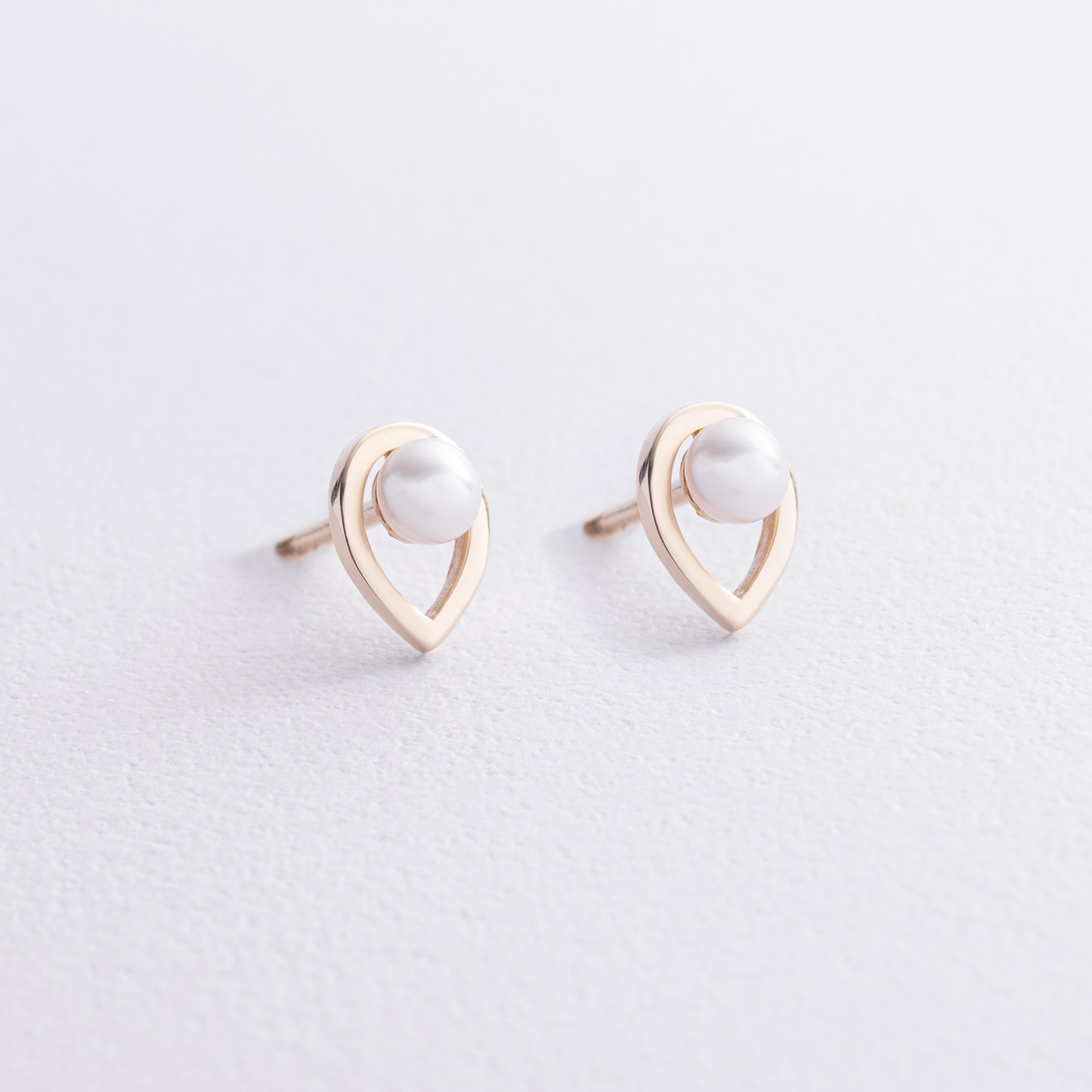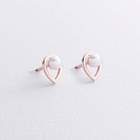Серьги - пусеты "Капельки" с жемчугом (желтое золото) с08732
