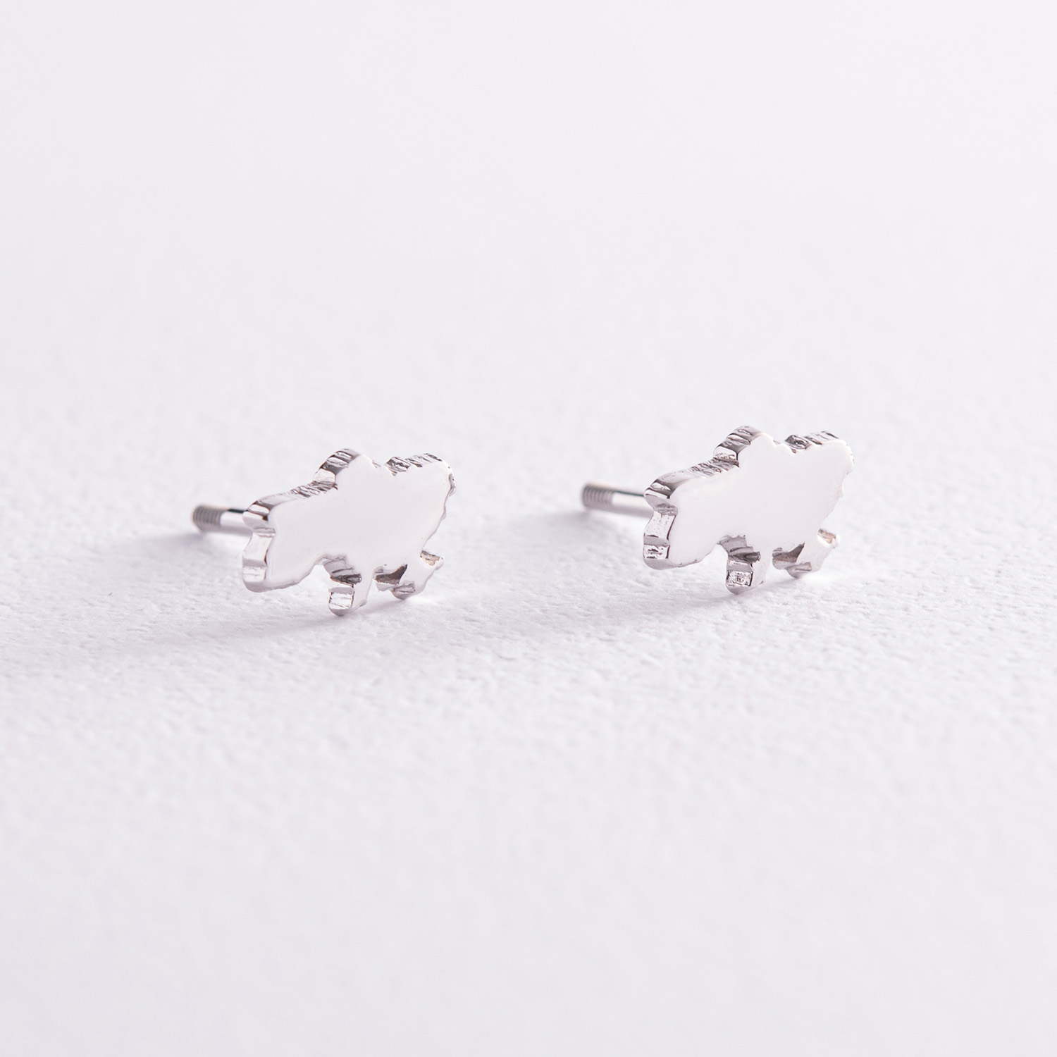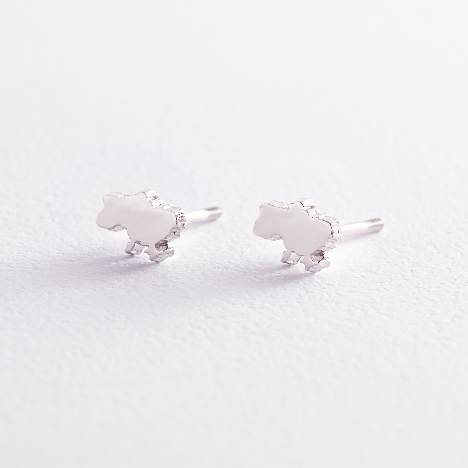 Серьги - пусеты "Карта Украины" в белом золоте с08012
