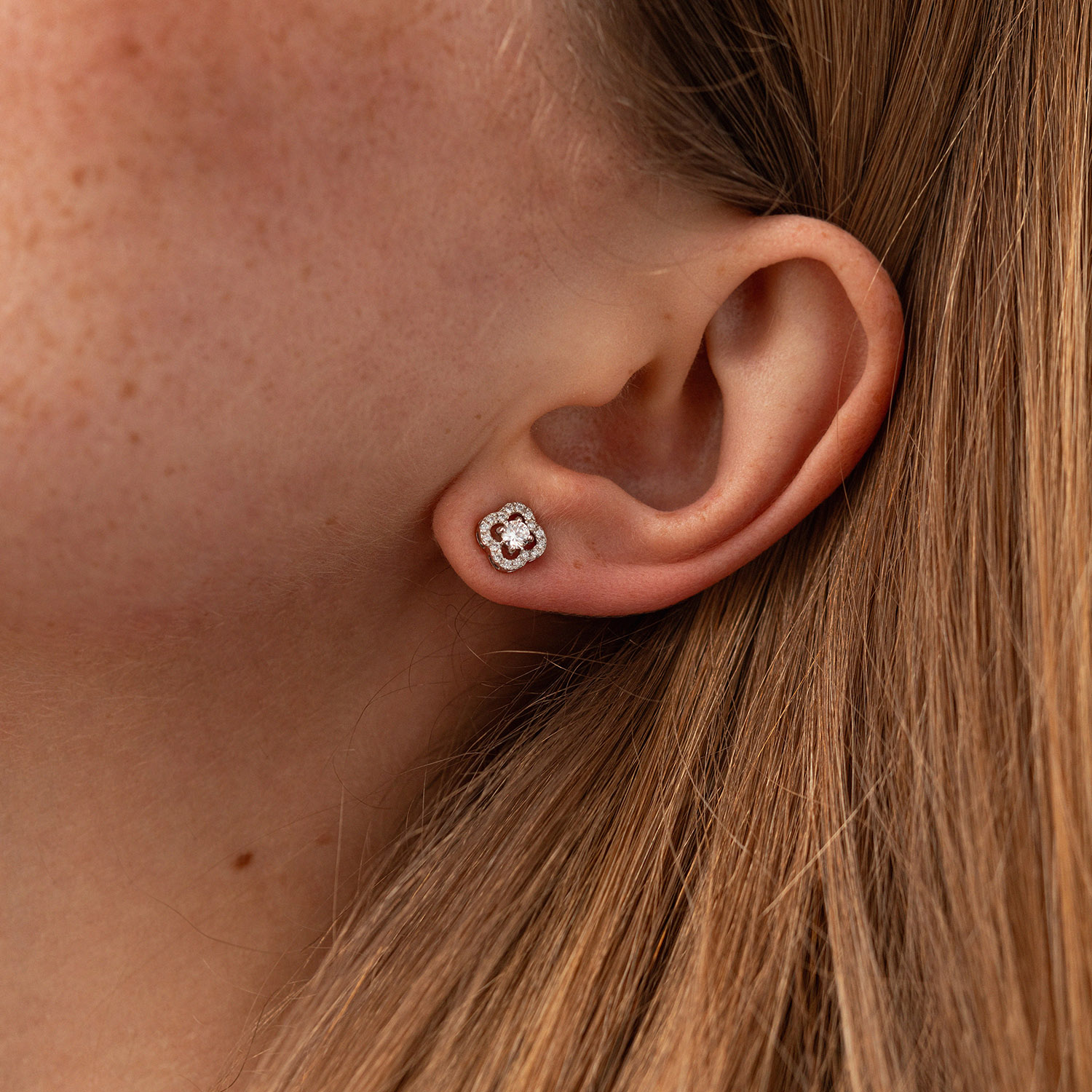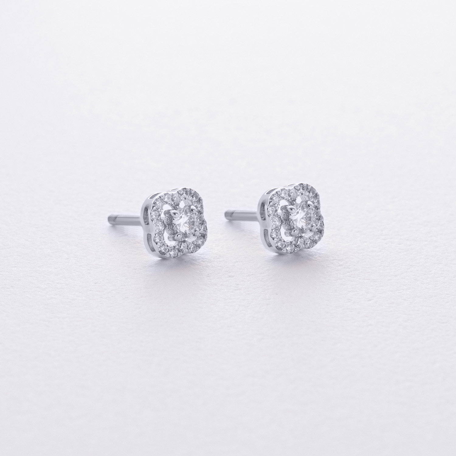 Серьги - пусеты "Клевер" с фианитами (белое золото) с09175