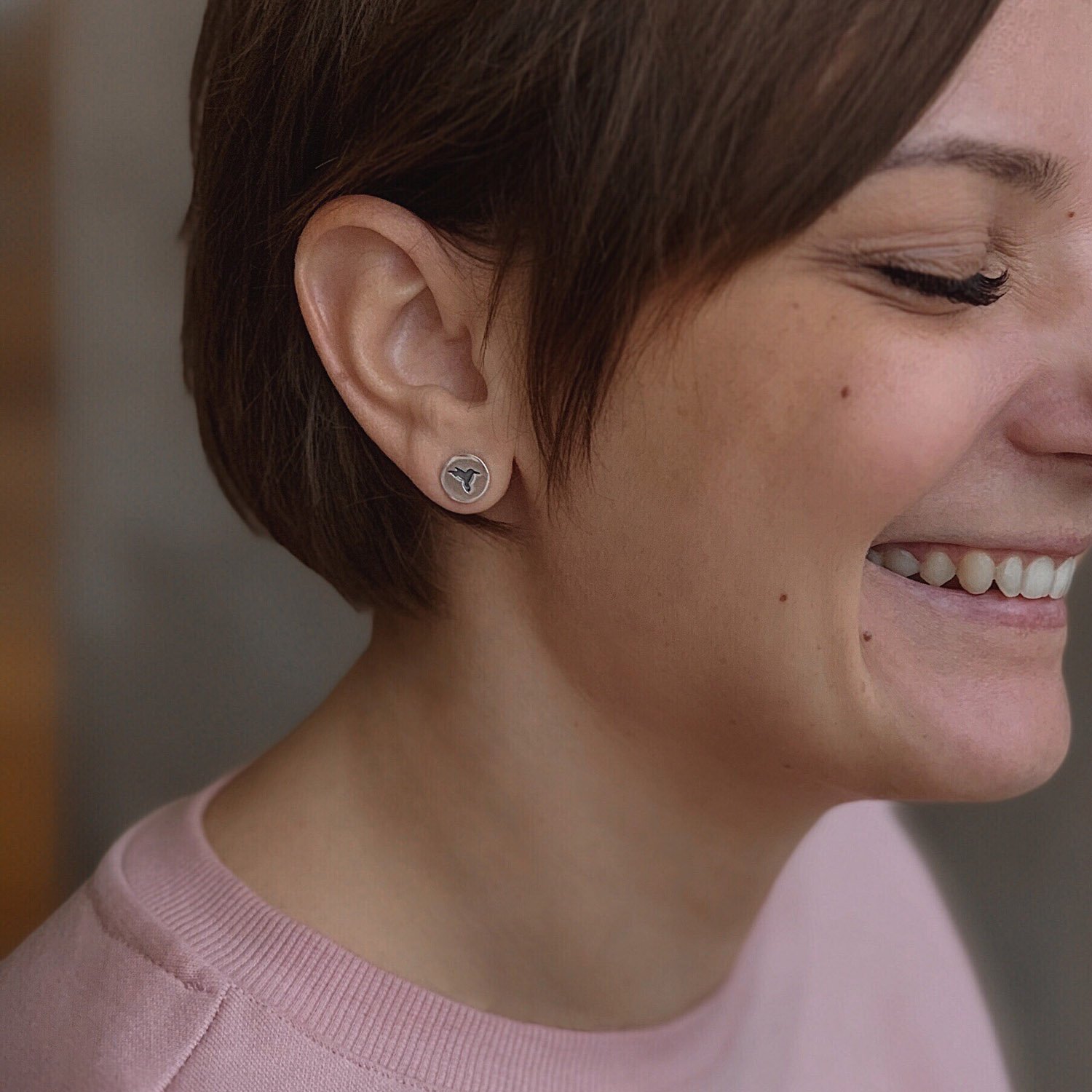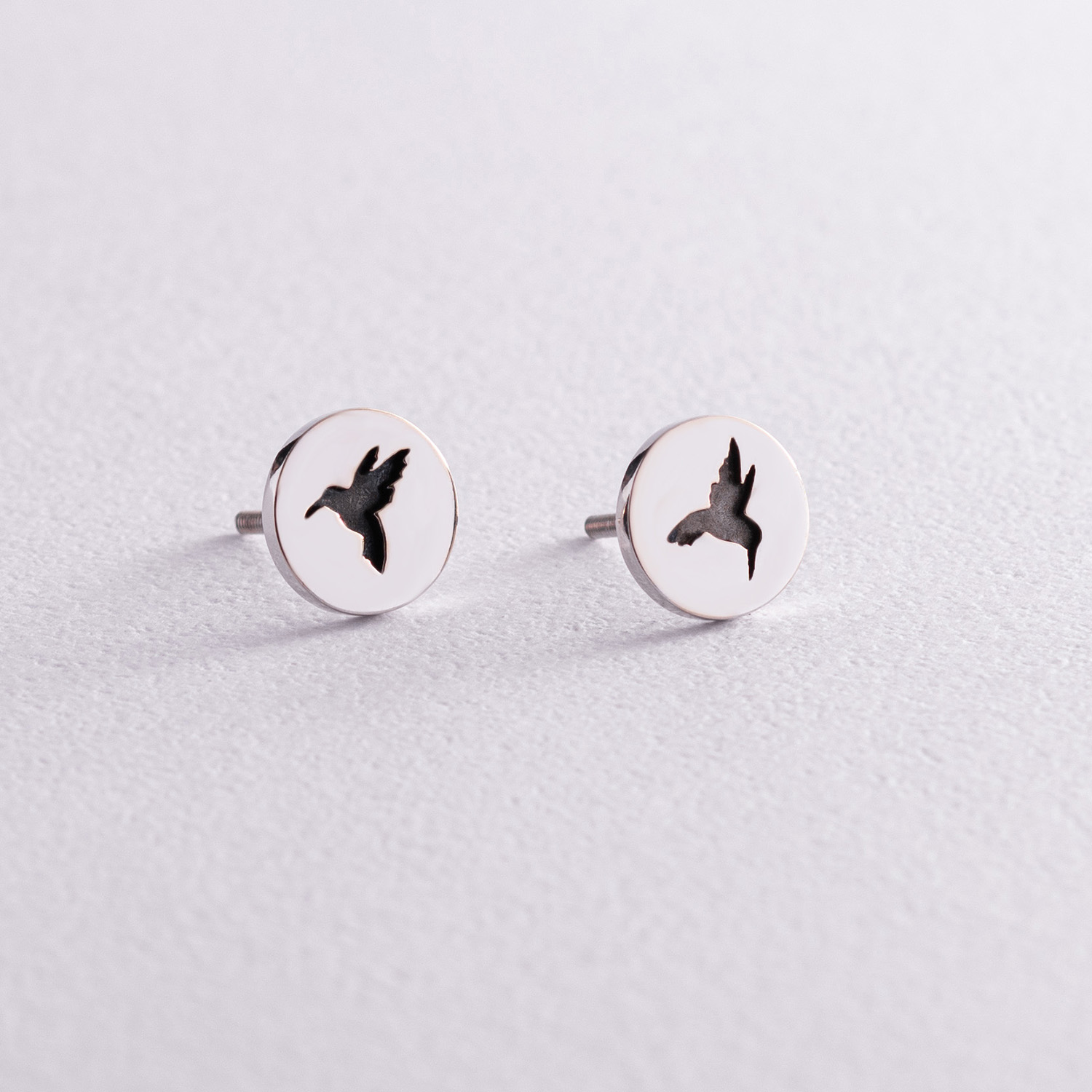 Серьги - пусеты "Колибри" в белом золоте с06704