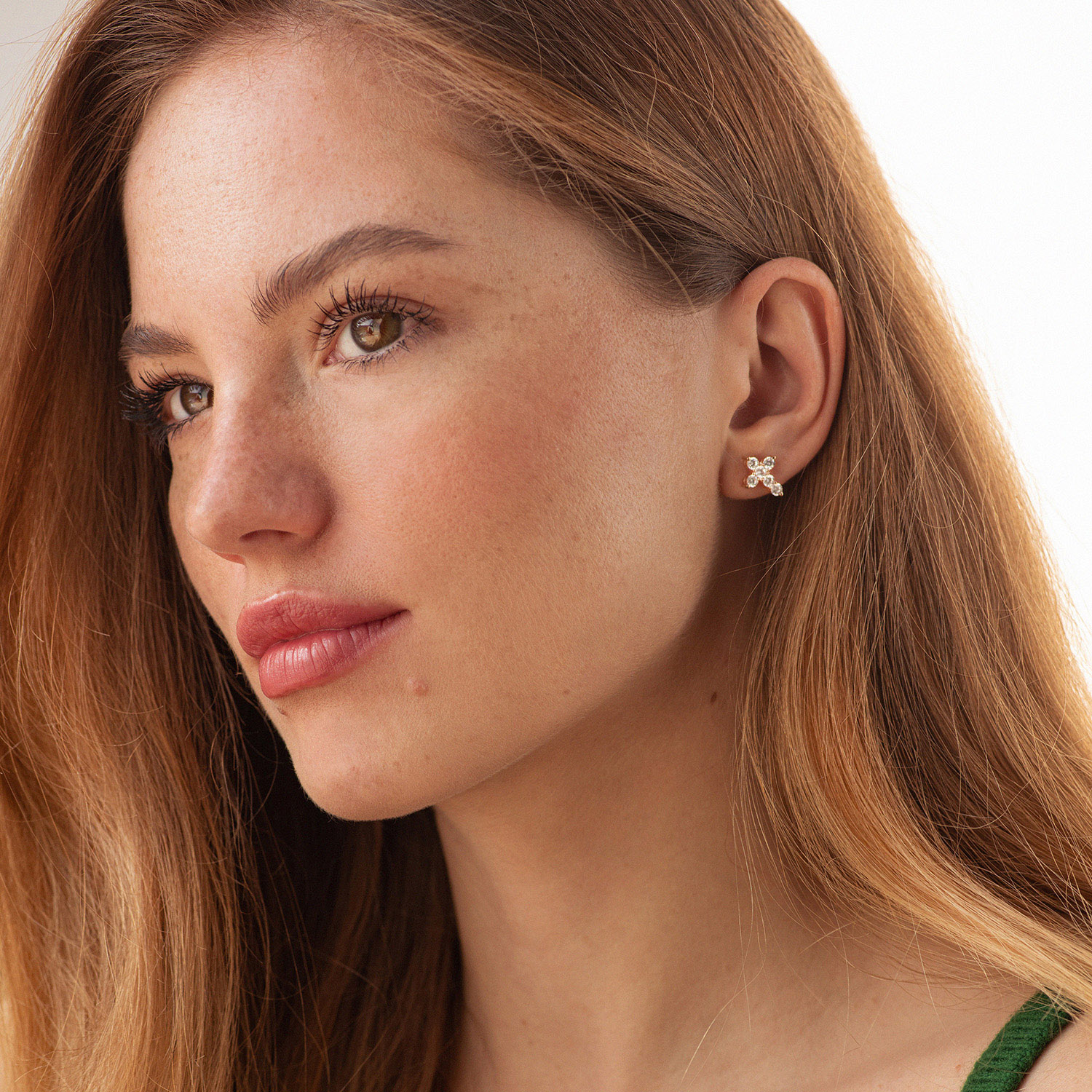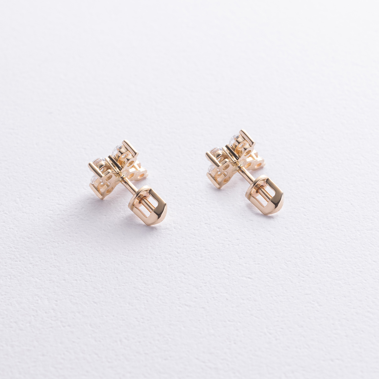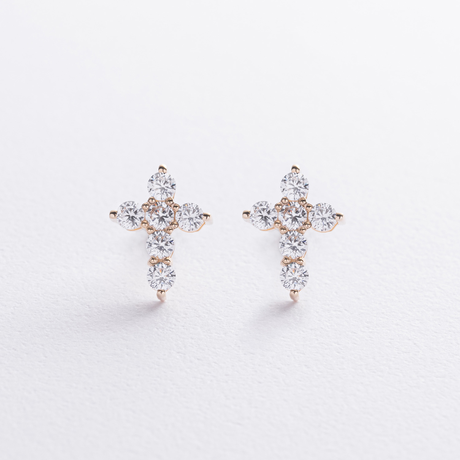 Серьги - пусеты "Крестики" в желтом золоте (фианиты) с09036