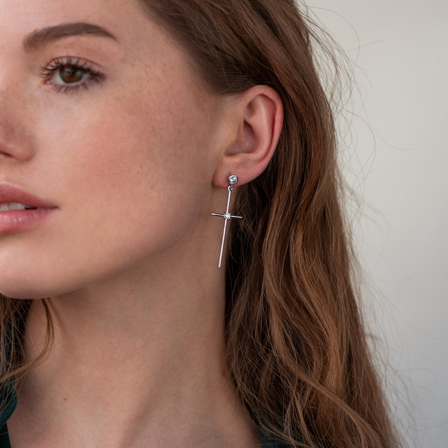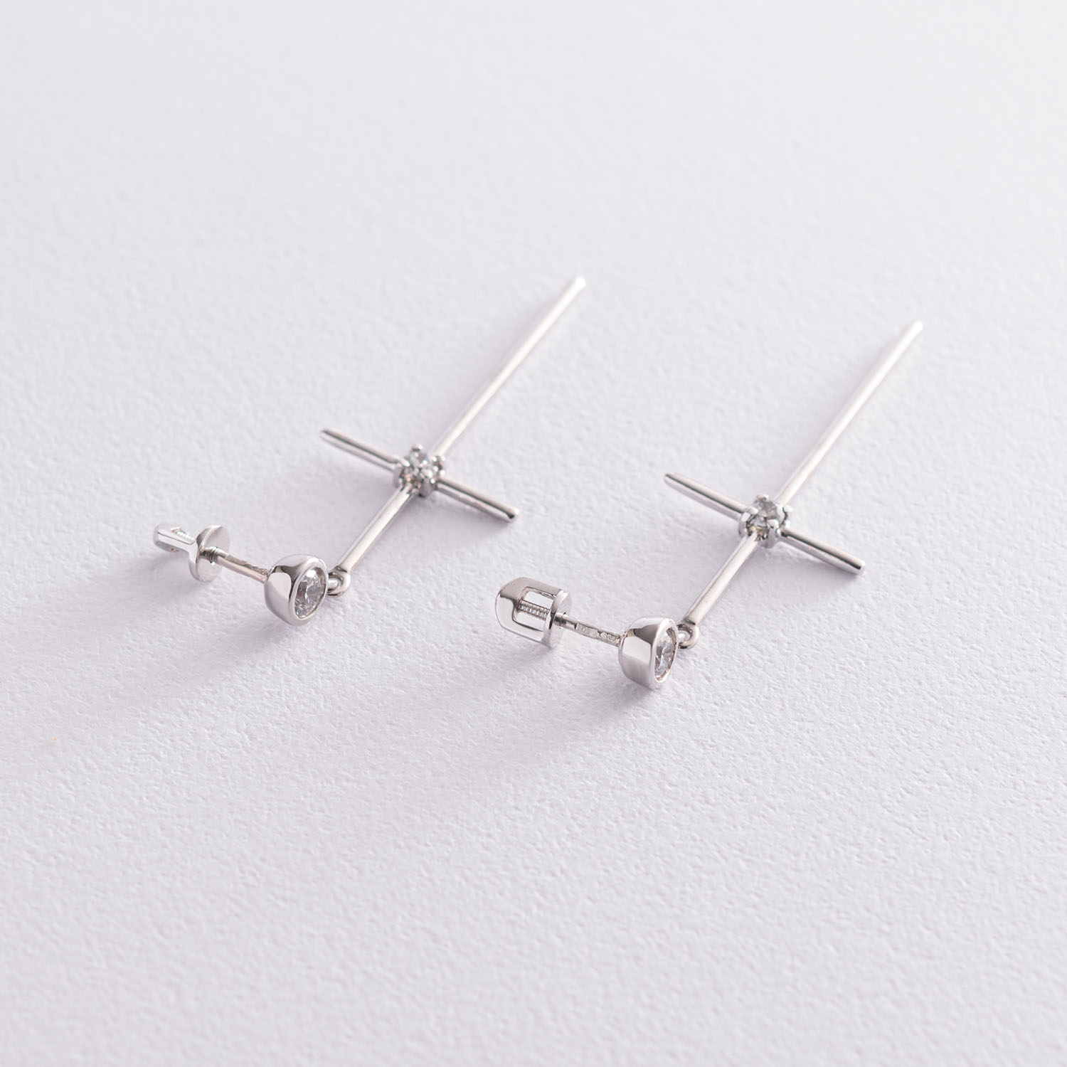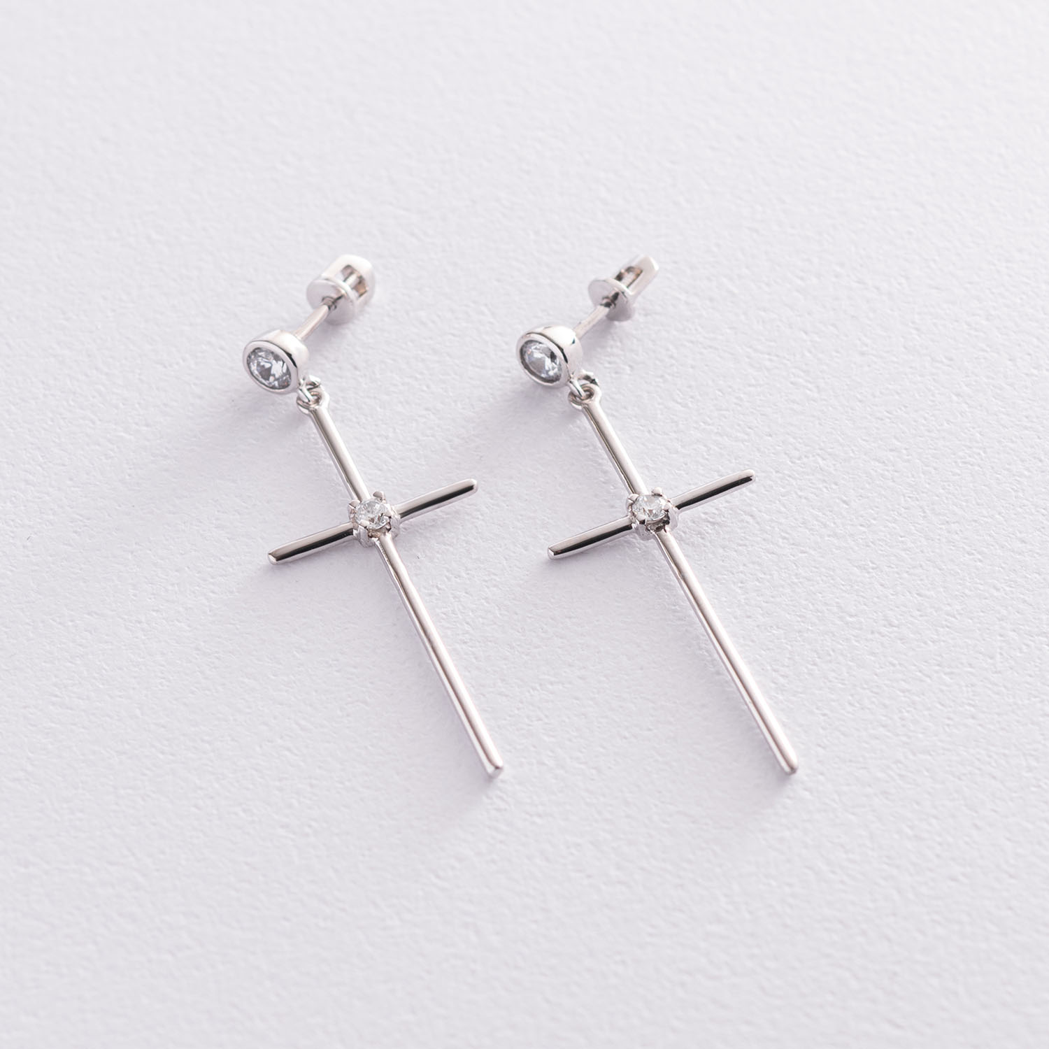 Серьги - пусеты "Кресты" в белом золоте (фианиты) с07368