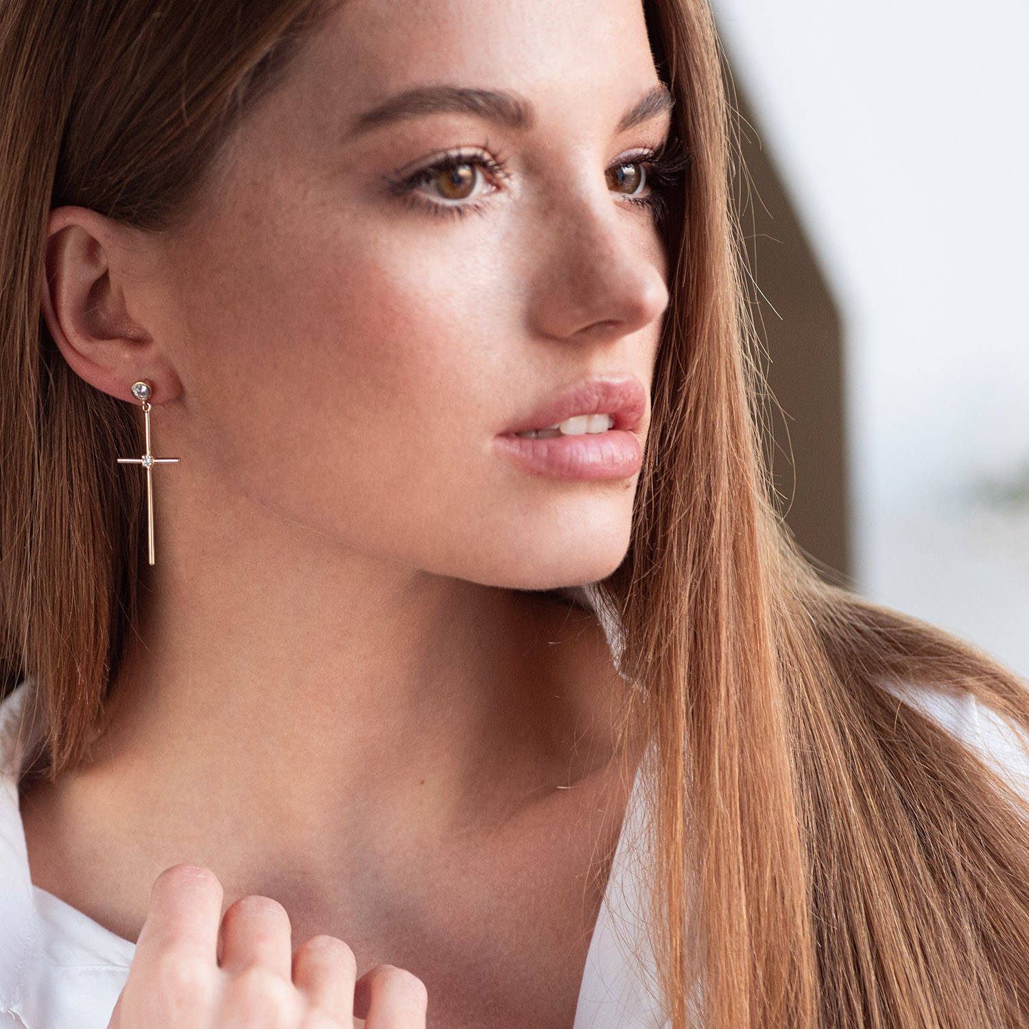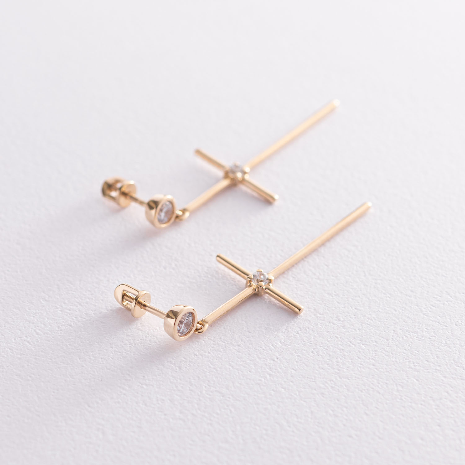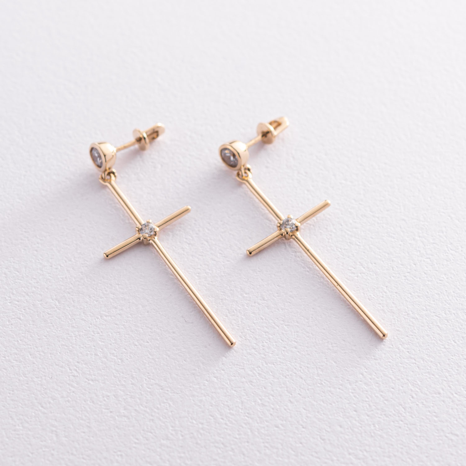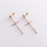 Серьги - пусеты "Кресты" в желтом золоте (фианиты) с07369