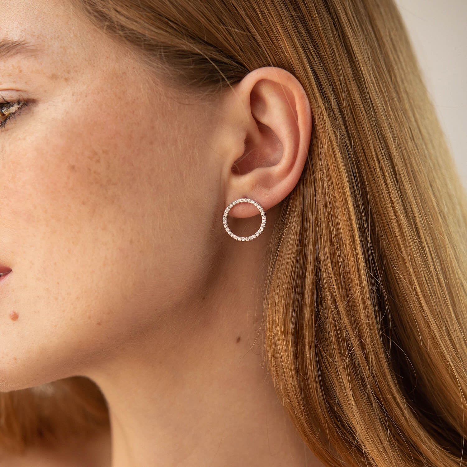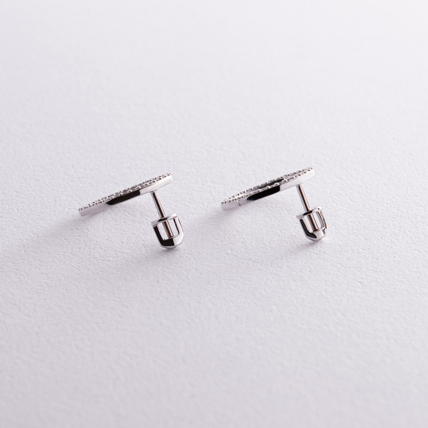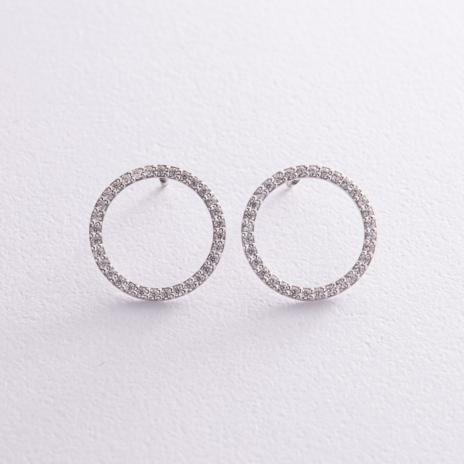 Серьги - пусеты "Круговорот" с фианитами 1.6 см (белое золото) с08283
