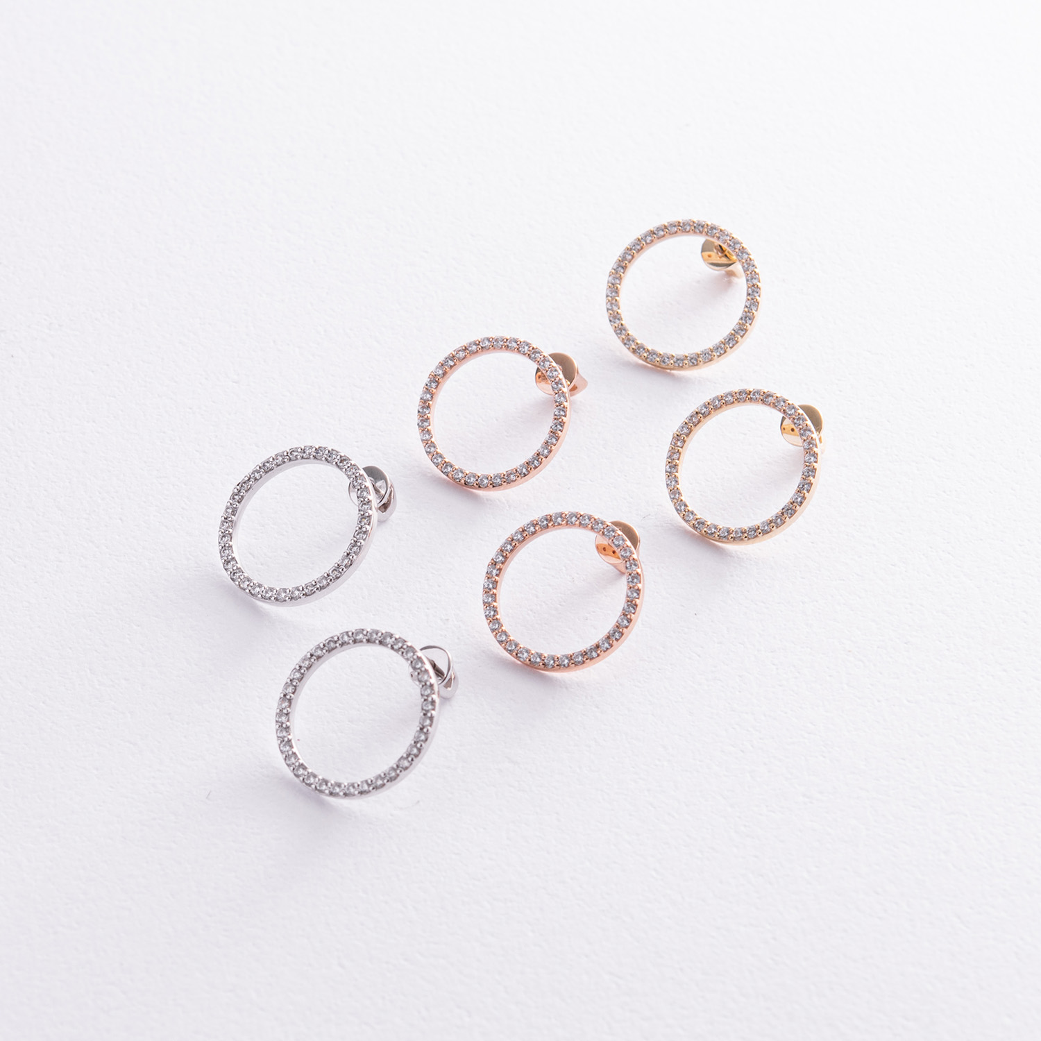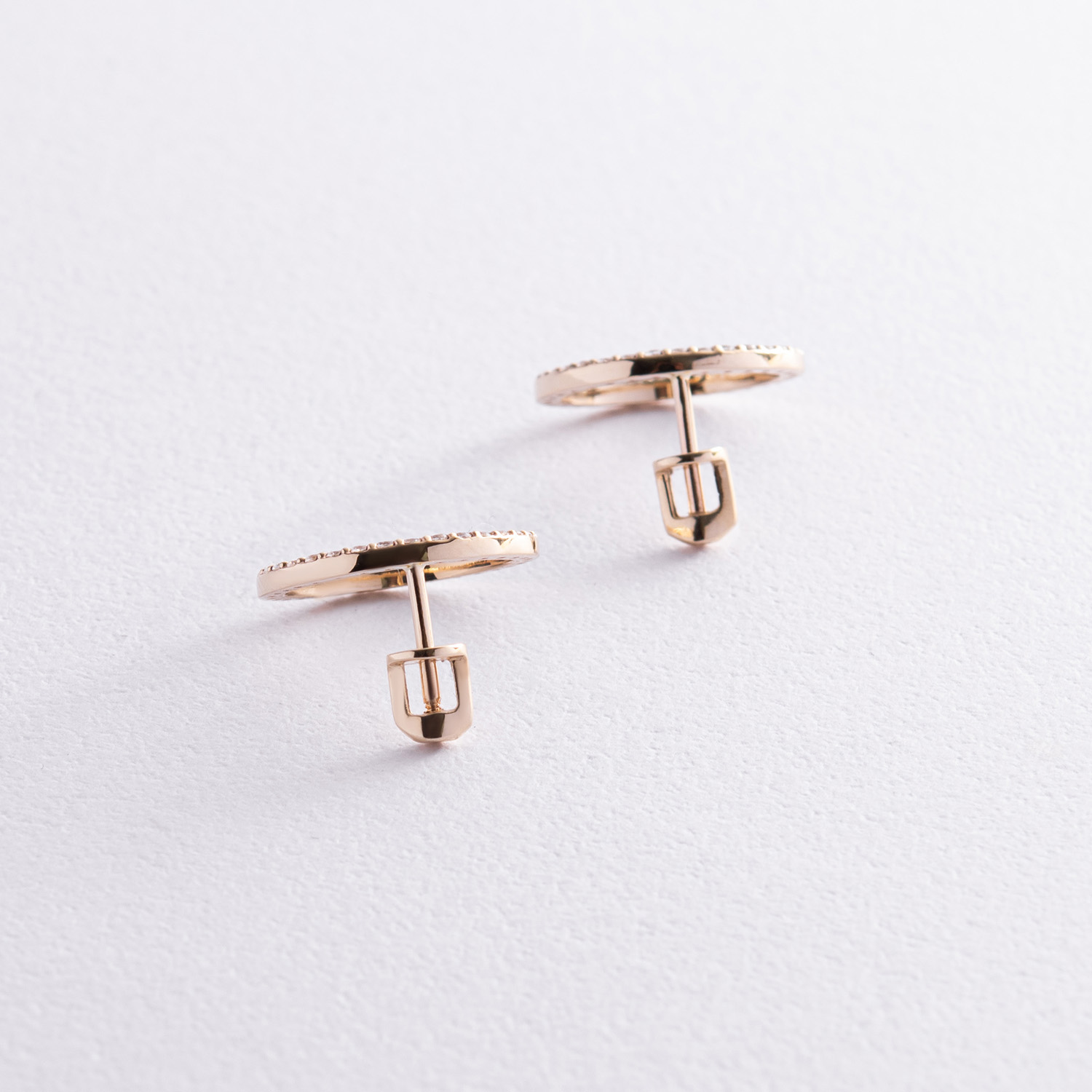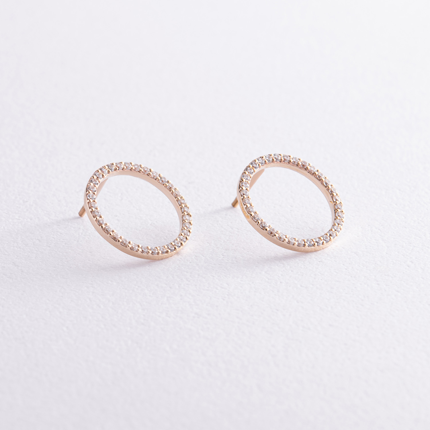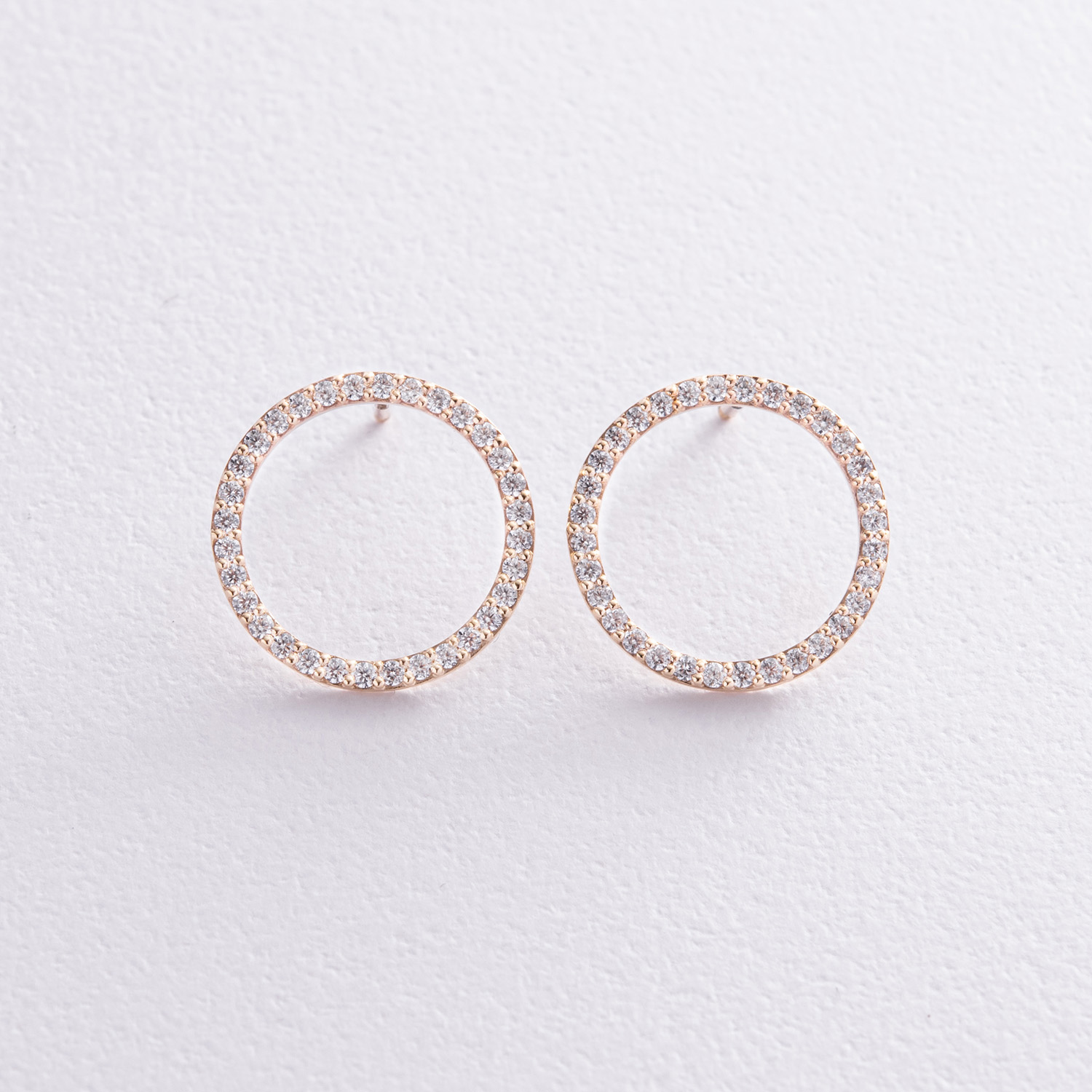 Серьги - пусеты "Круговорот" с фианитами 1.6 см (желтое золото) с08376