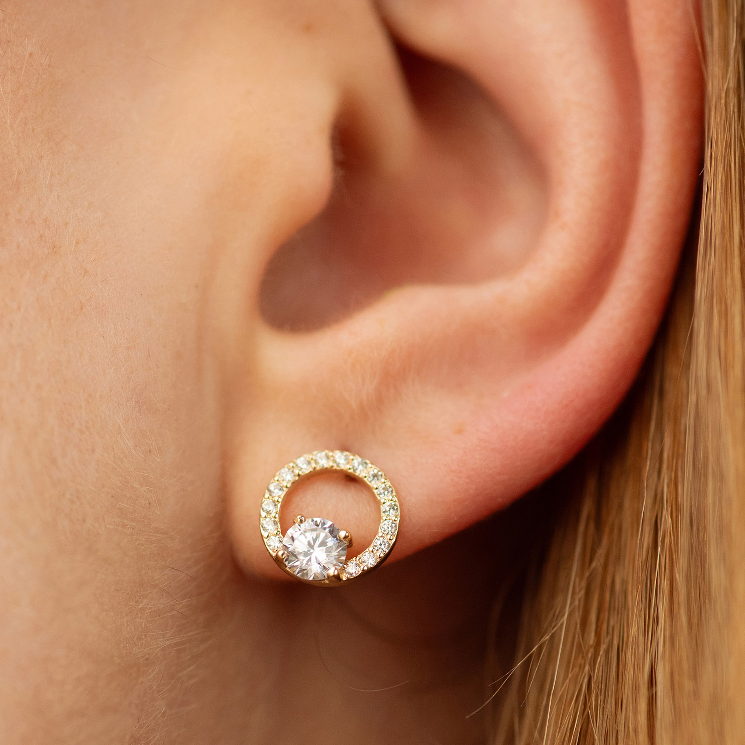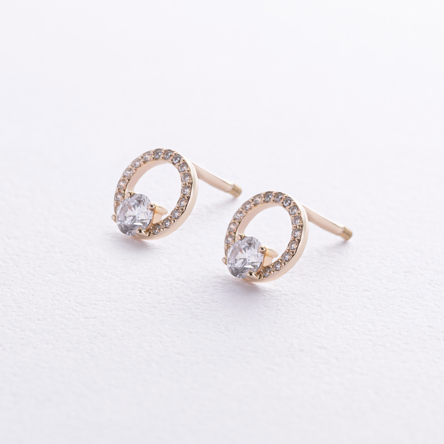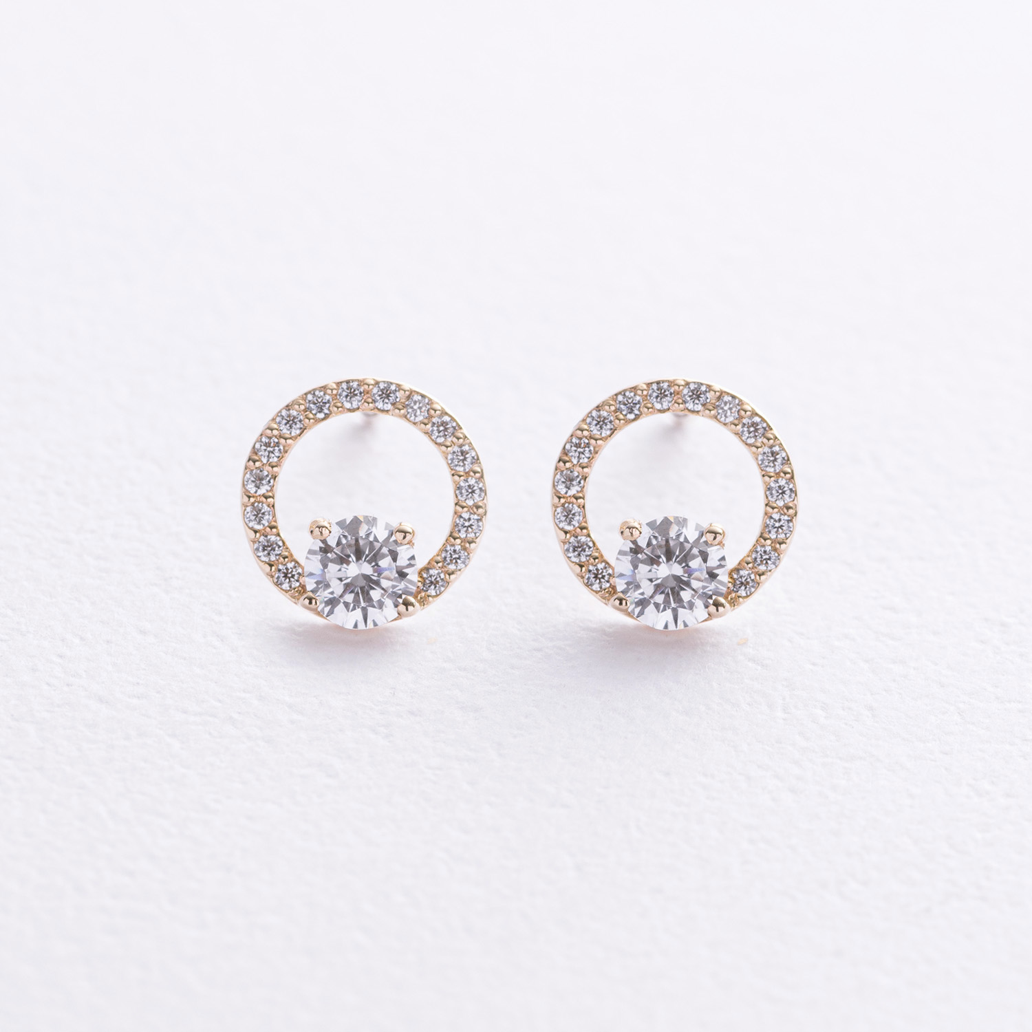 Серьги - пусеты "Круговорот" с фианитами (желтое золото) с08728