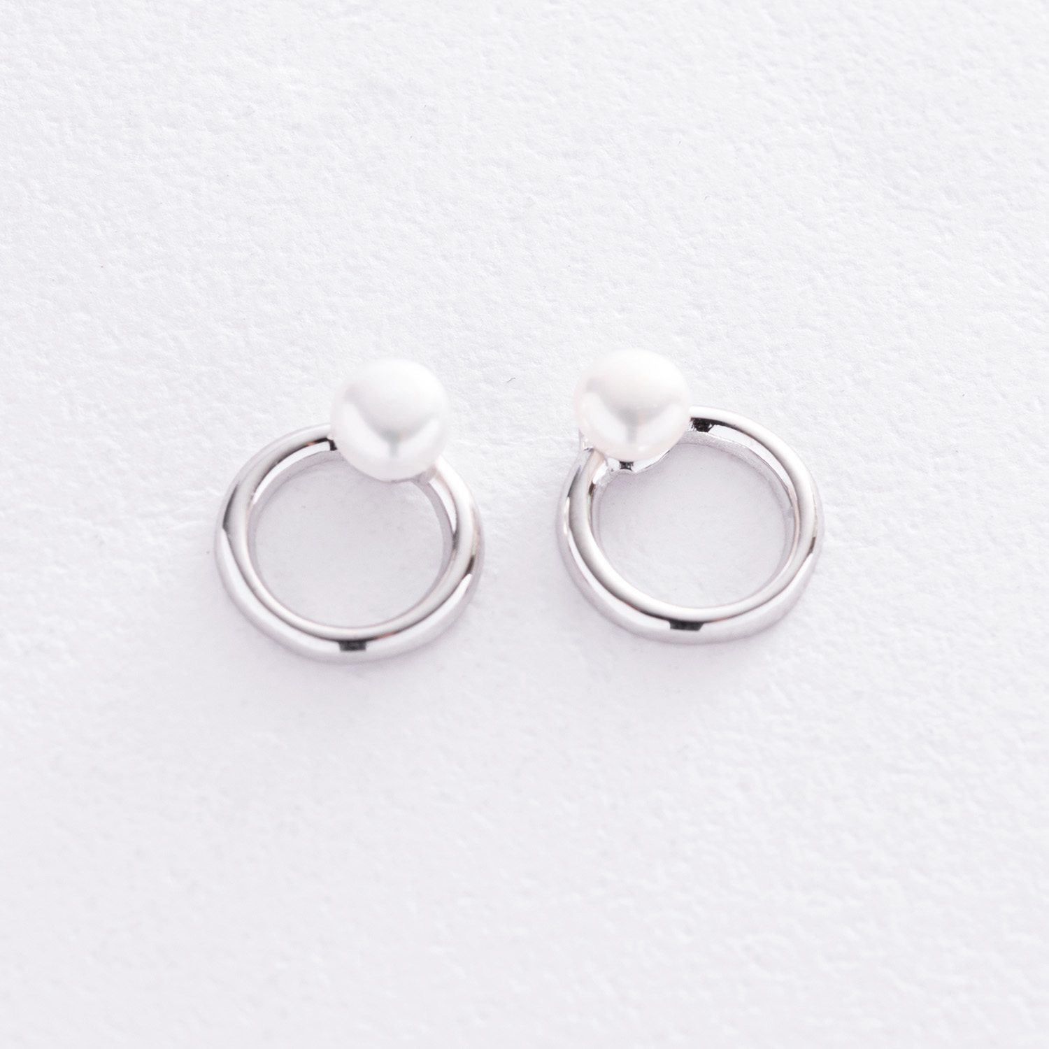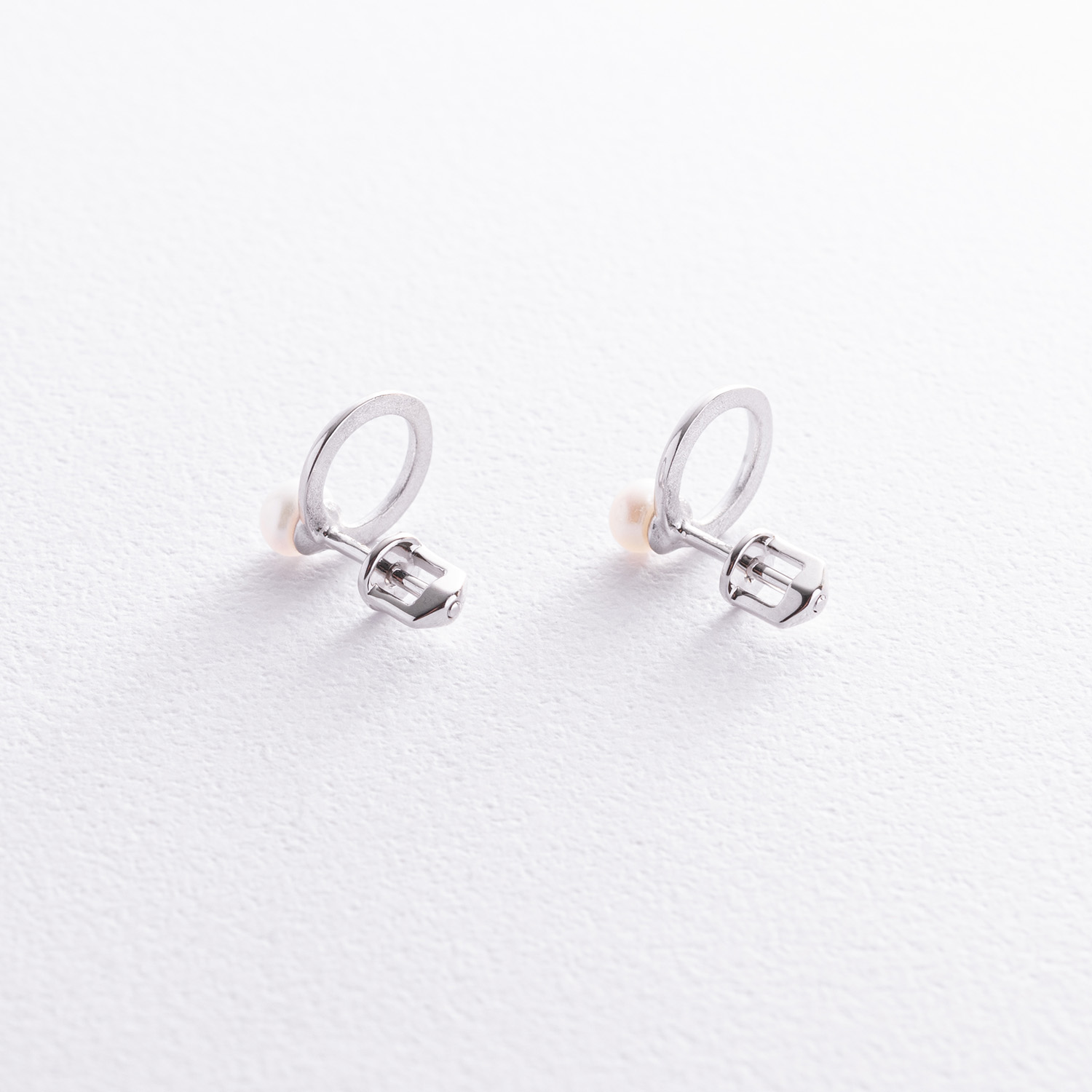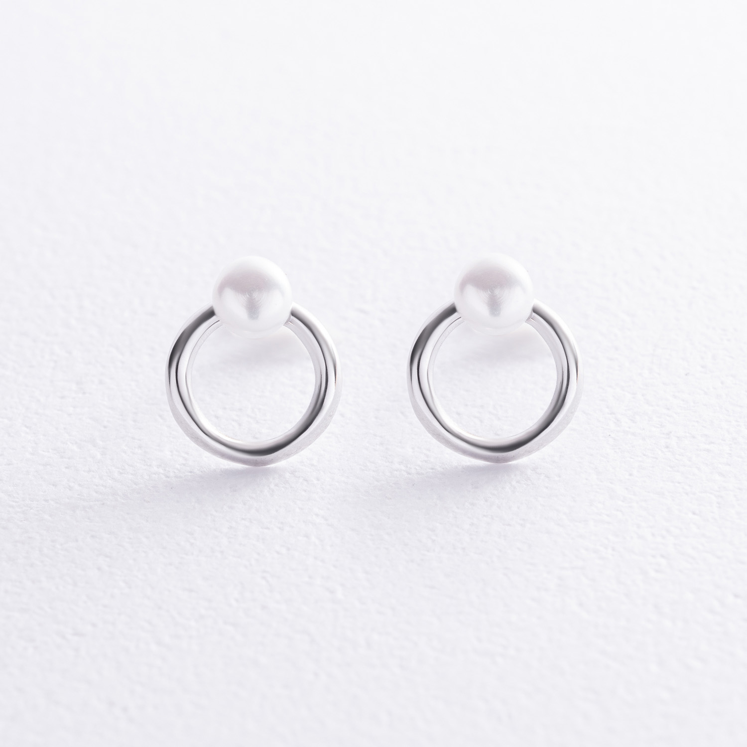 Серьги - пусеты "Круговорот" с жемчугом (белое золото) с08502