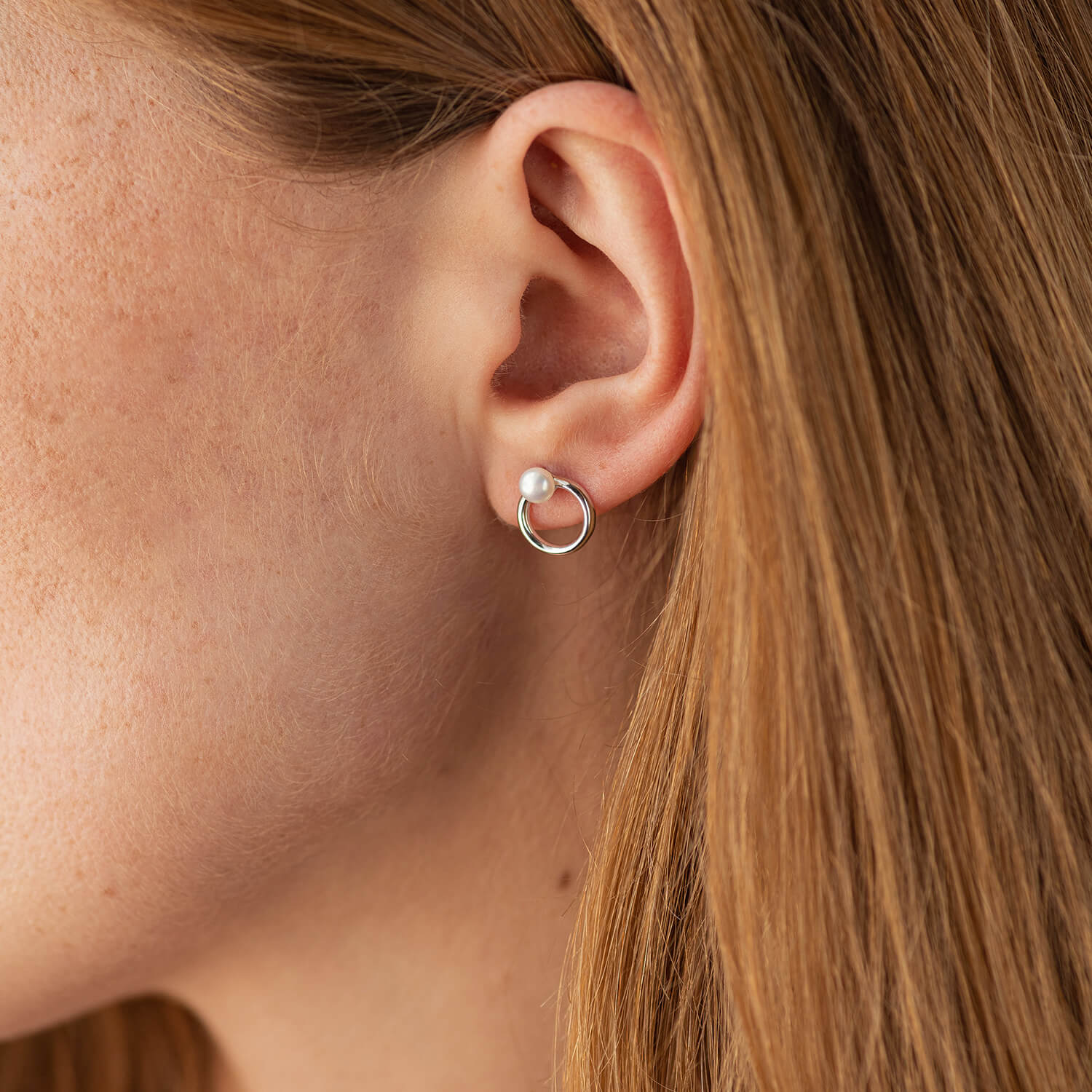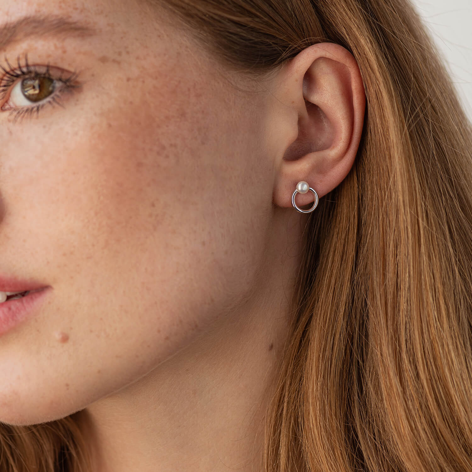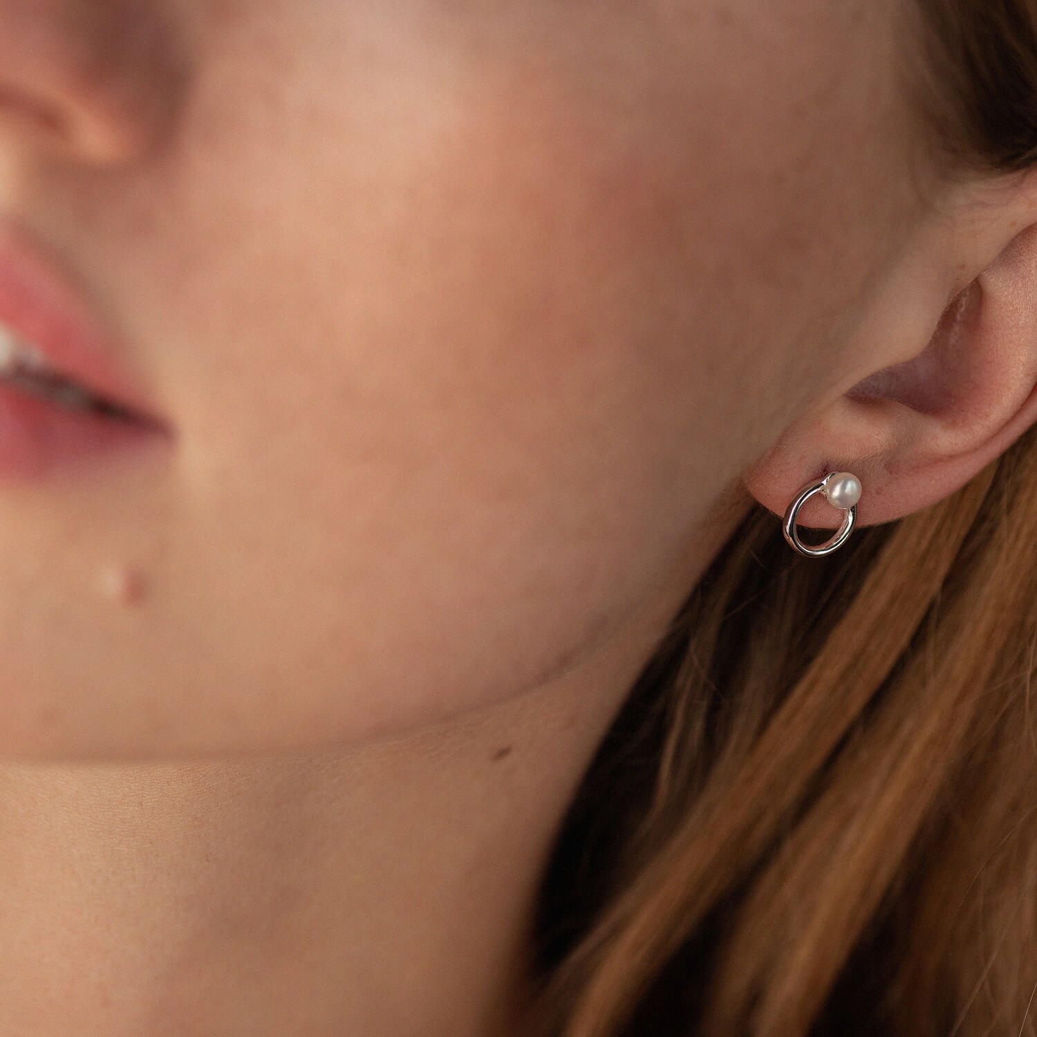 Серьги - пусеты "Круговорот" с жемчугом (белое золото) с08502
