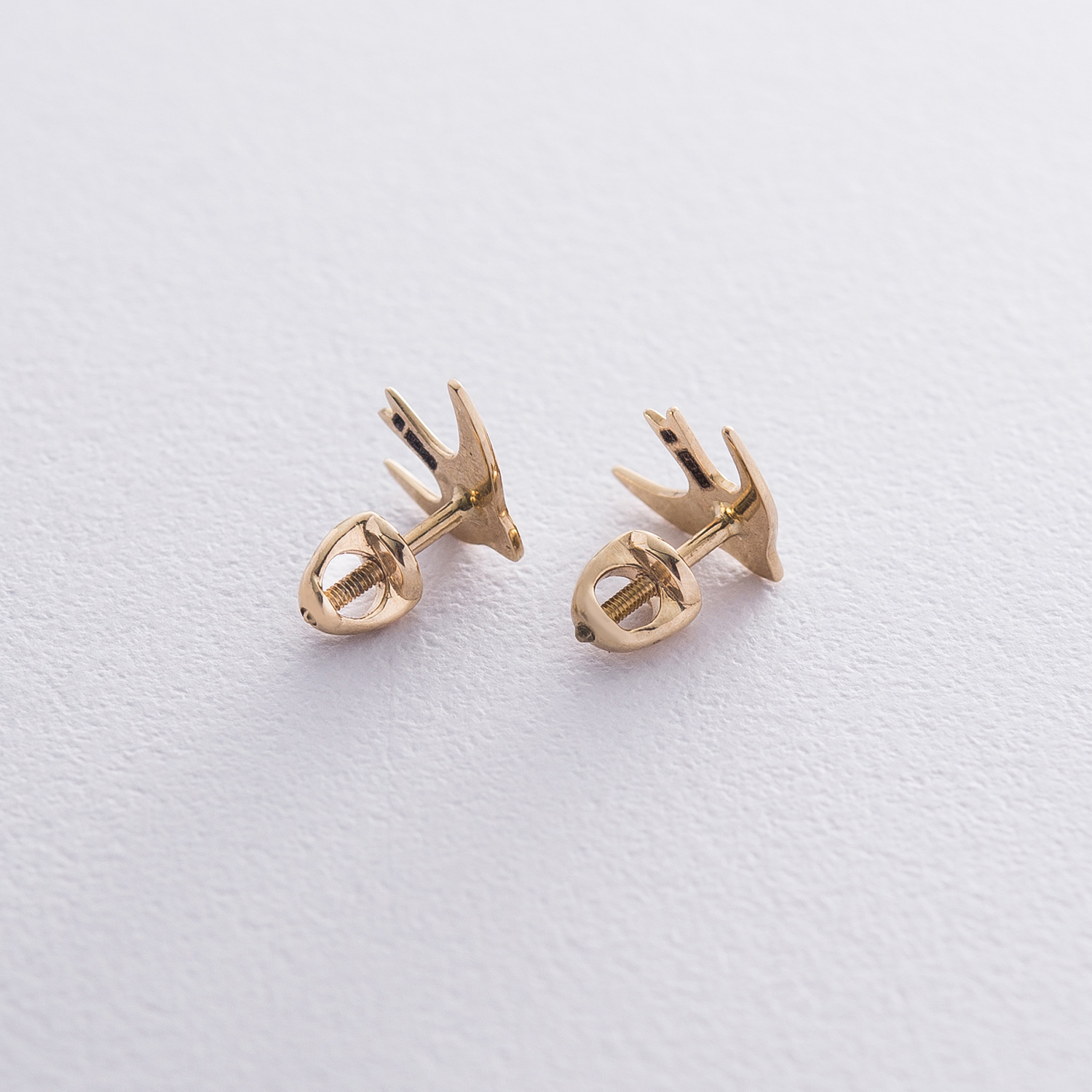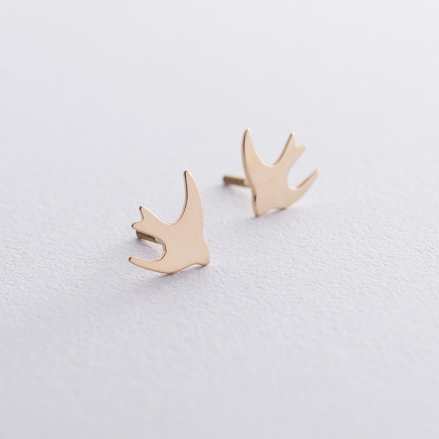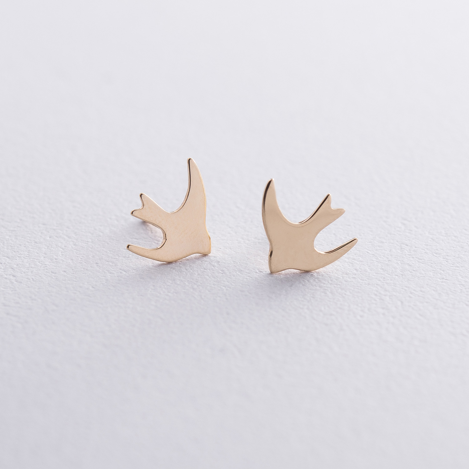 Серьги-пусеты "Птички" в желтом золоте с06454