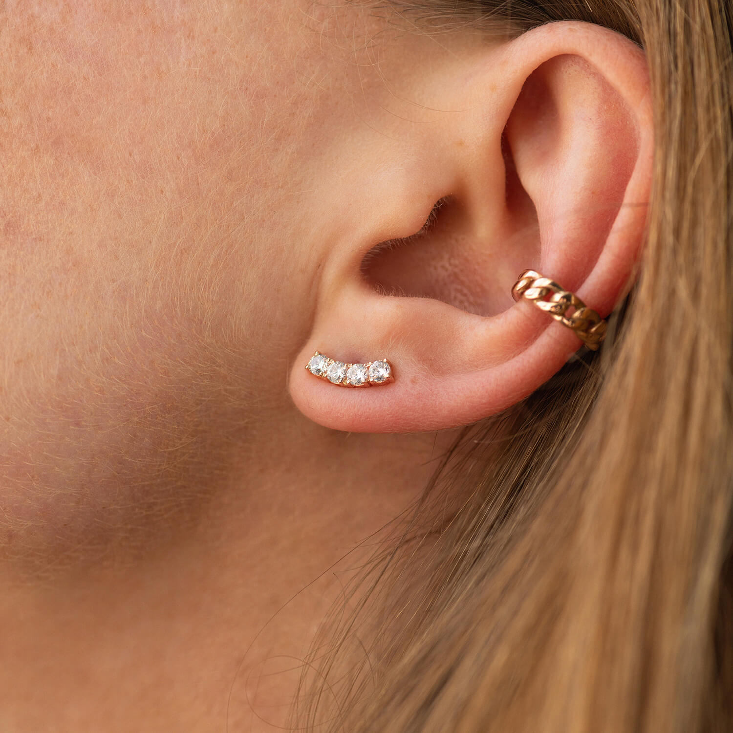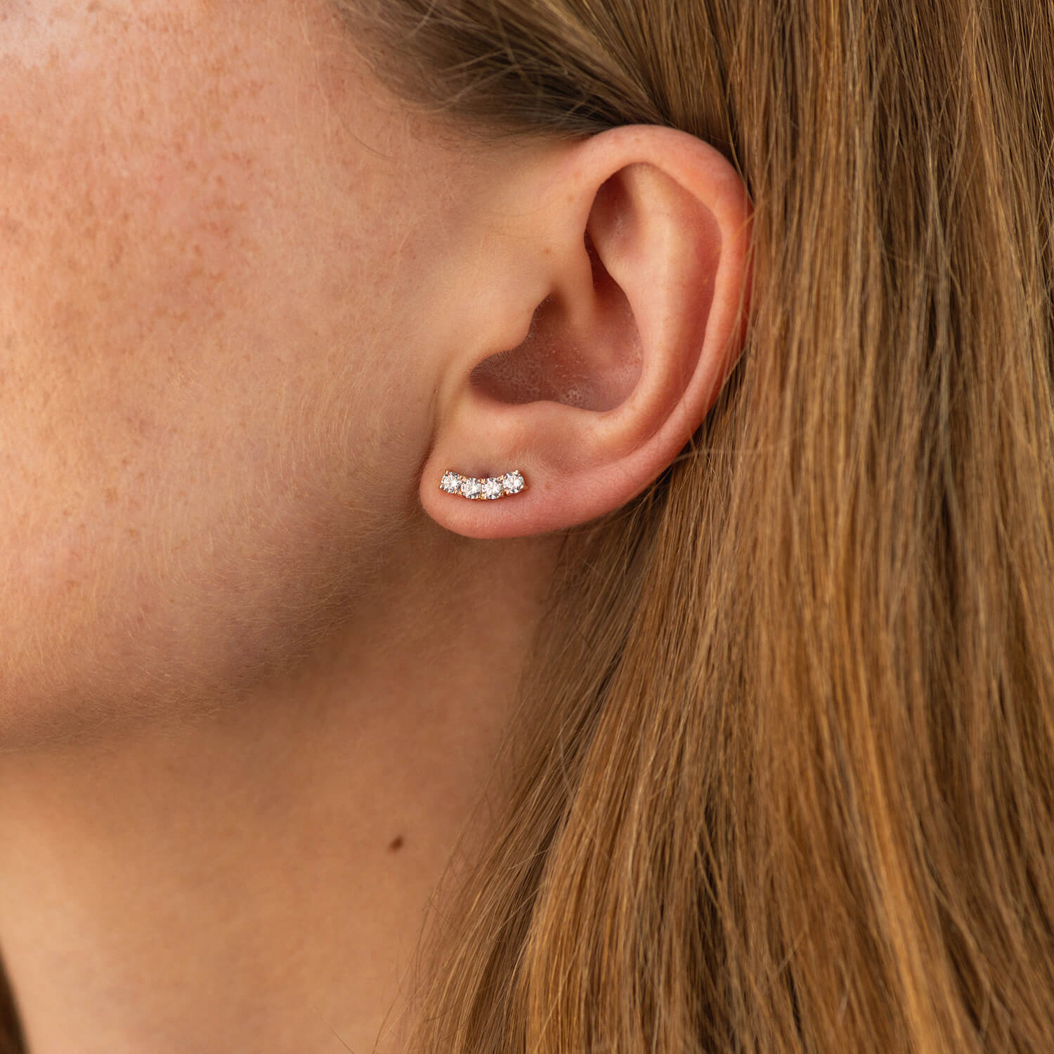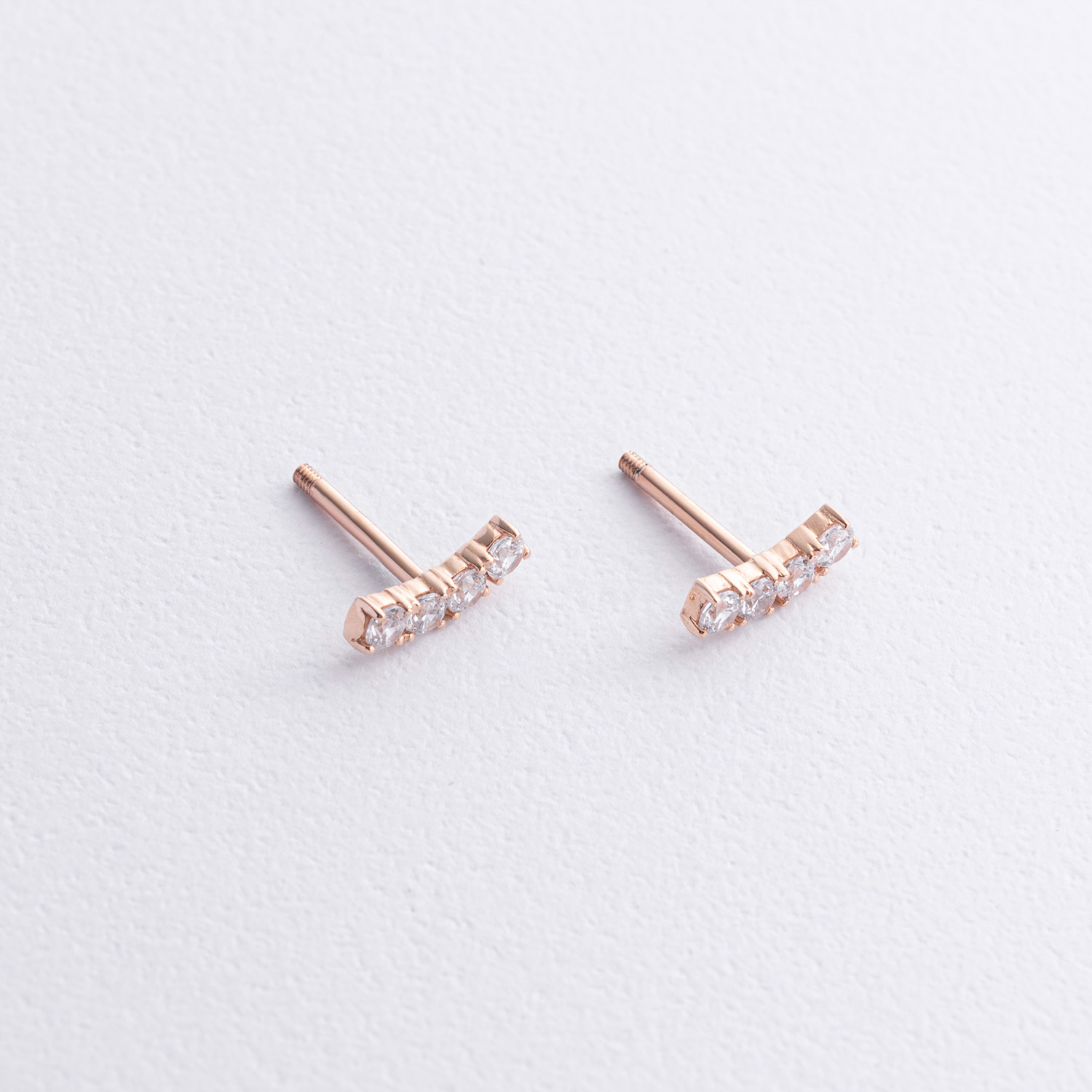 Серьги - пусеты "Lora" с фианитами (красное золото) с09097