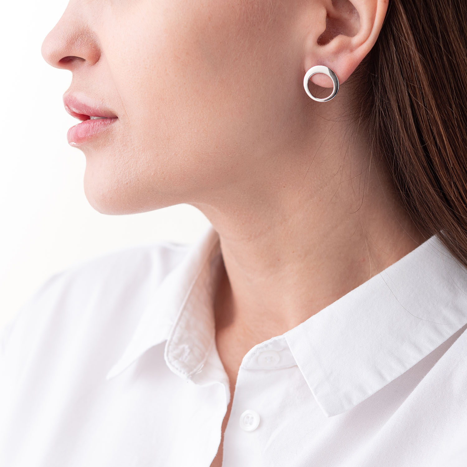 Серьги - пусеты "Орбита" в белом золоте с07347