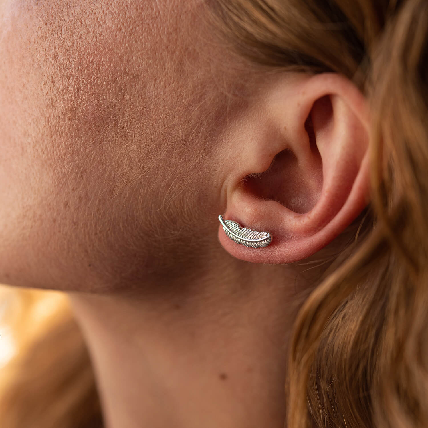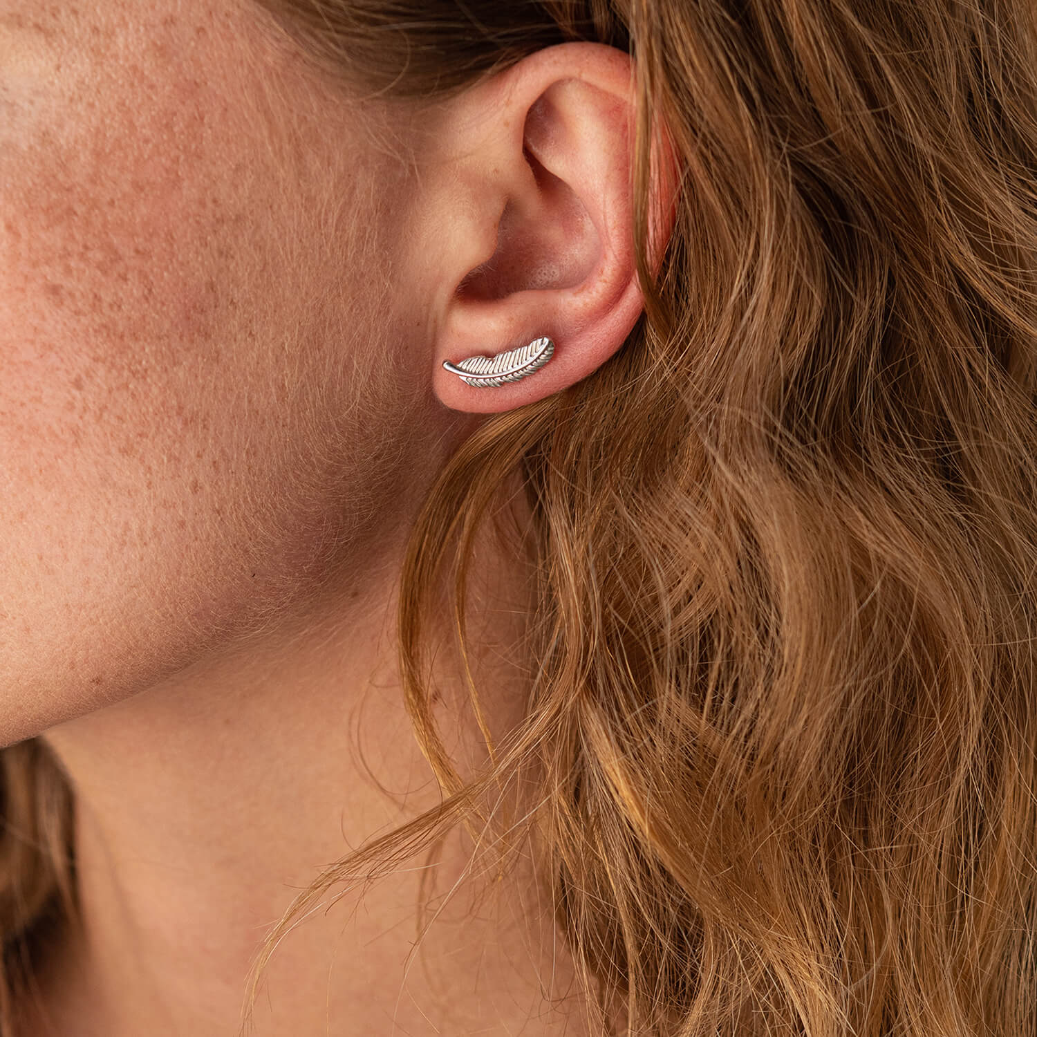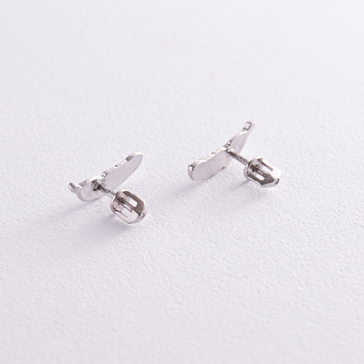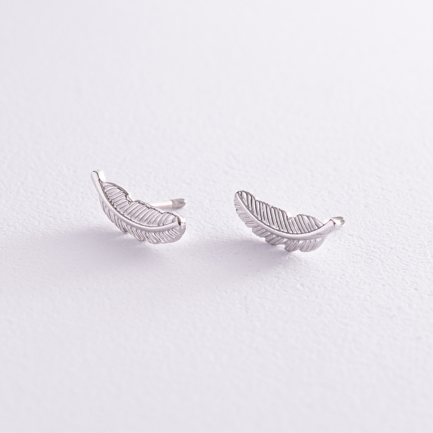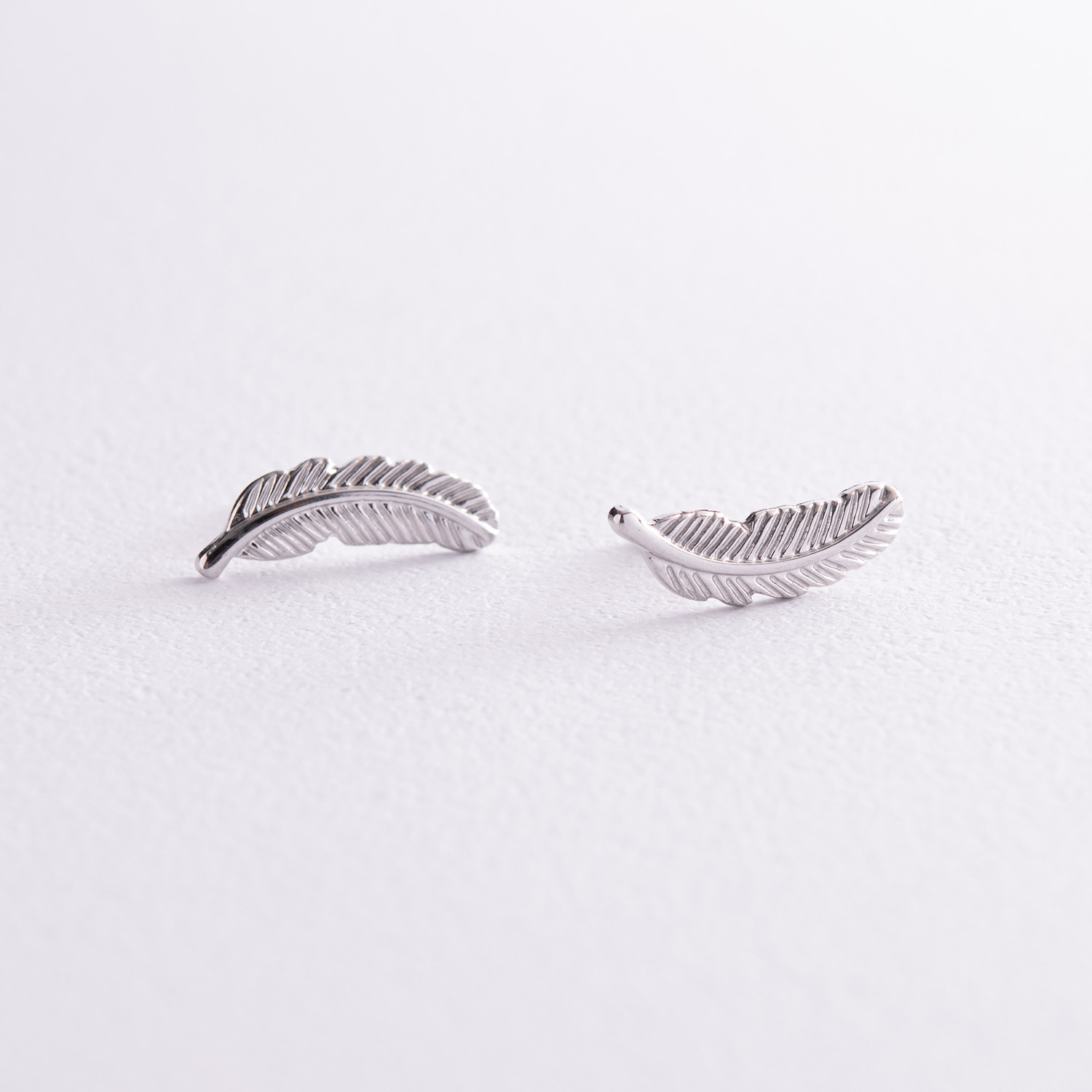 Серьги - пусеты "Перышки" в белом золоте с08017