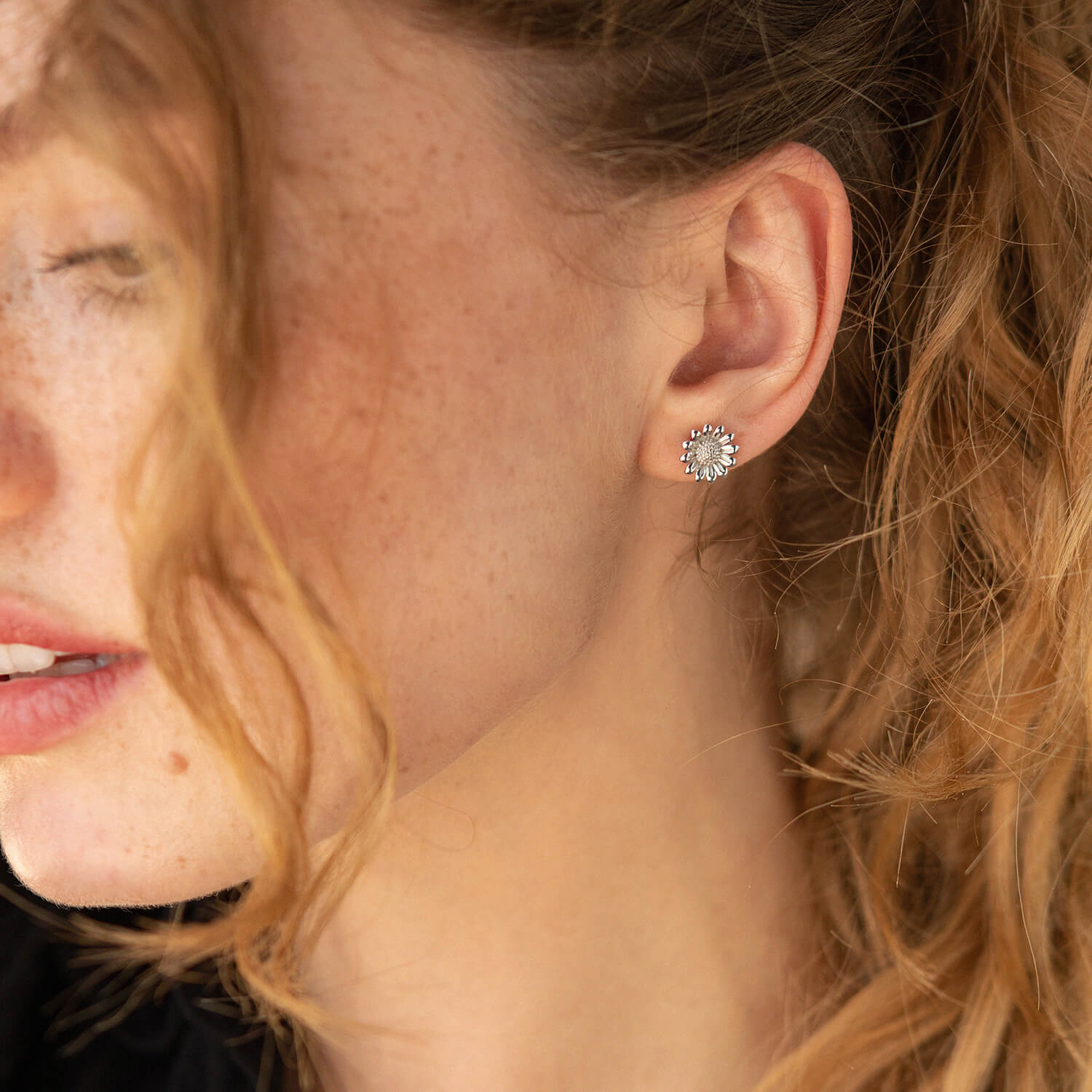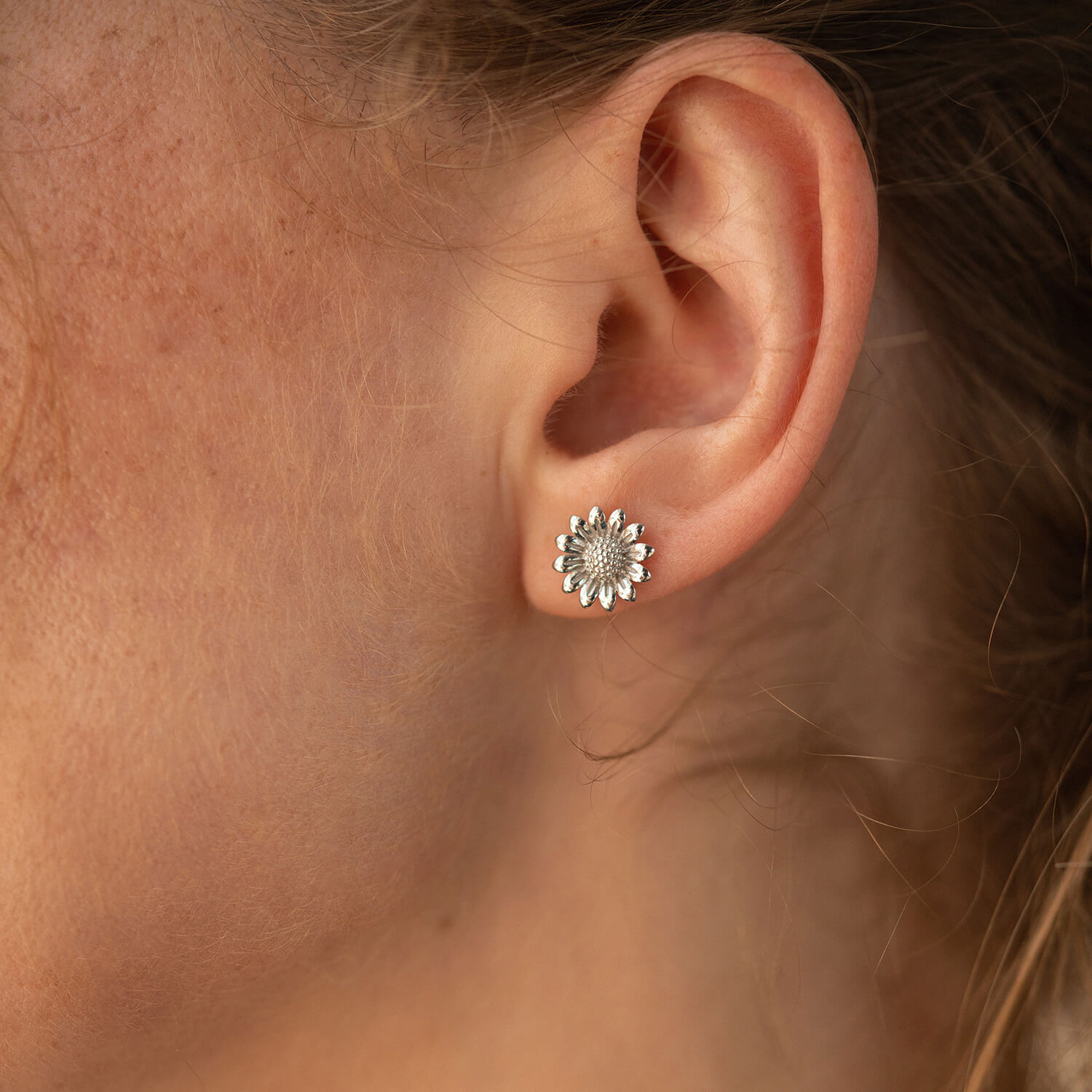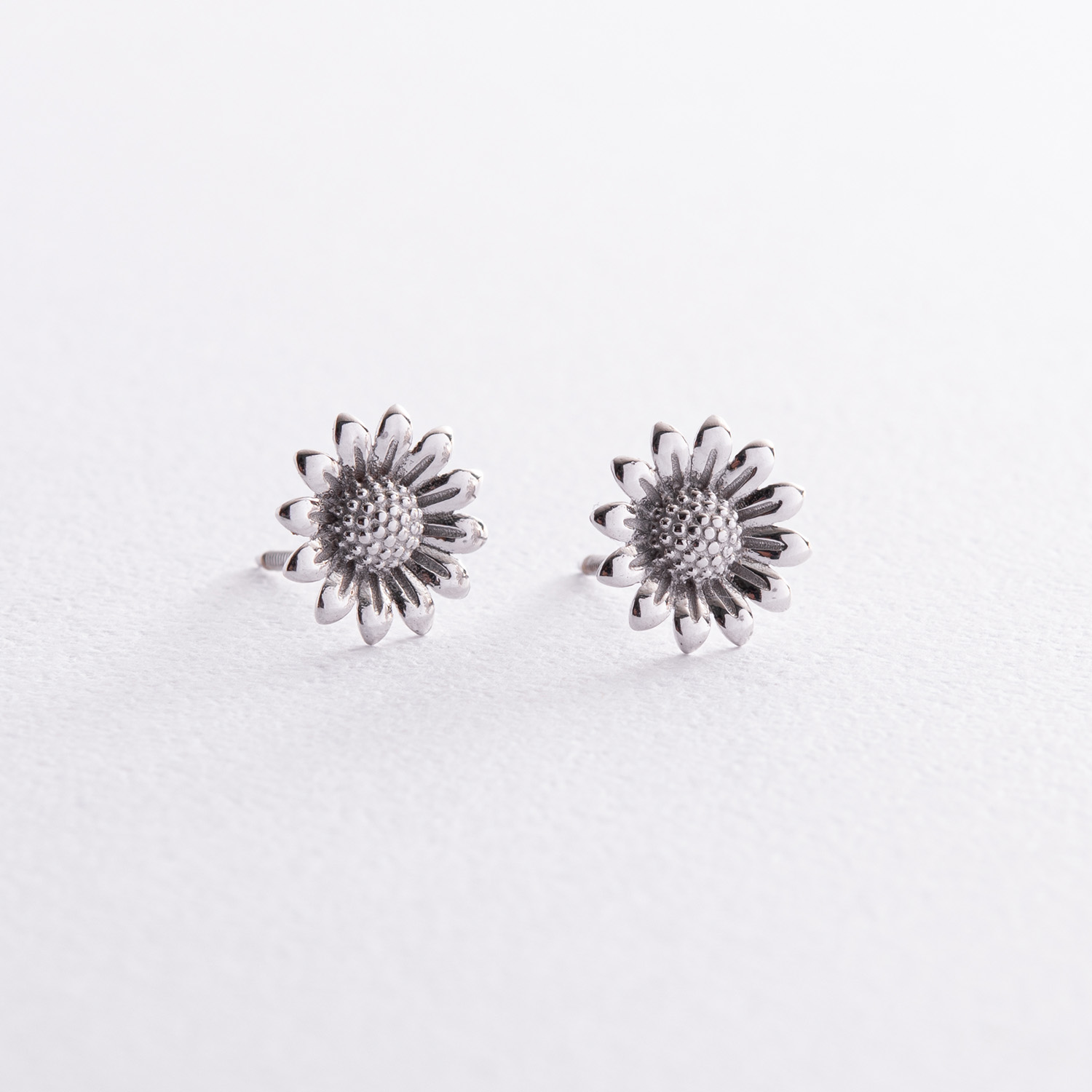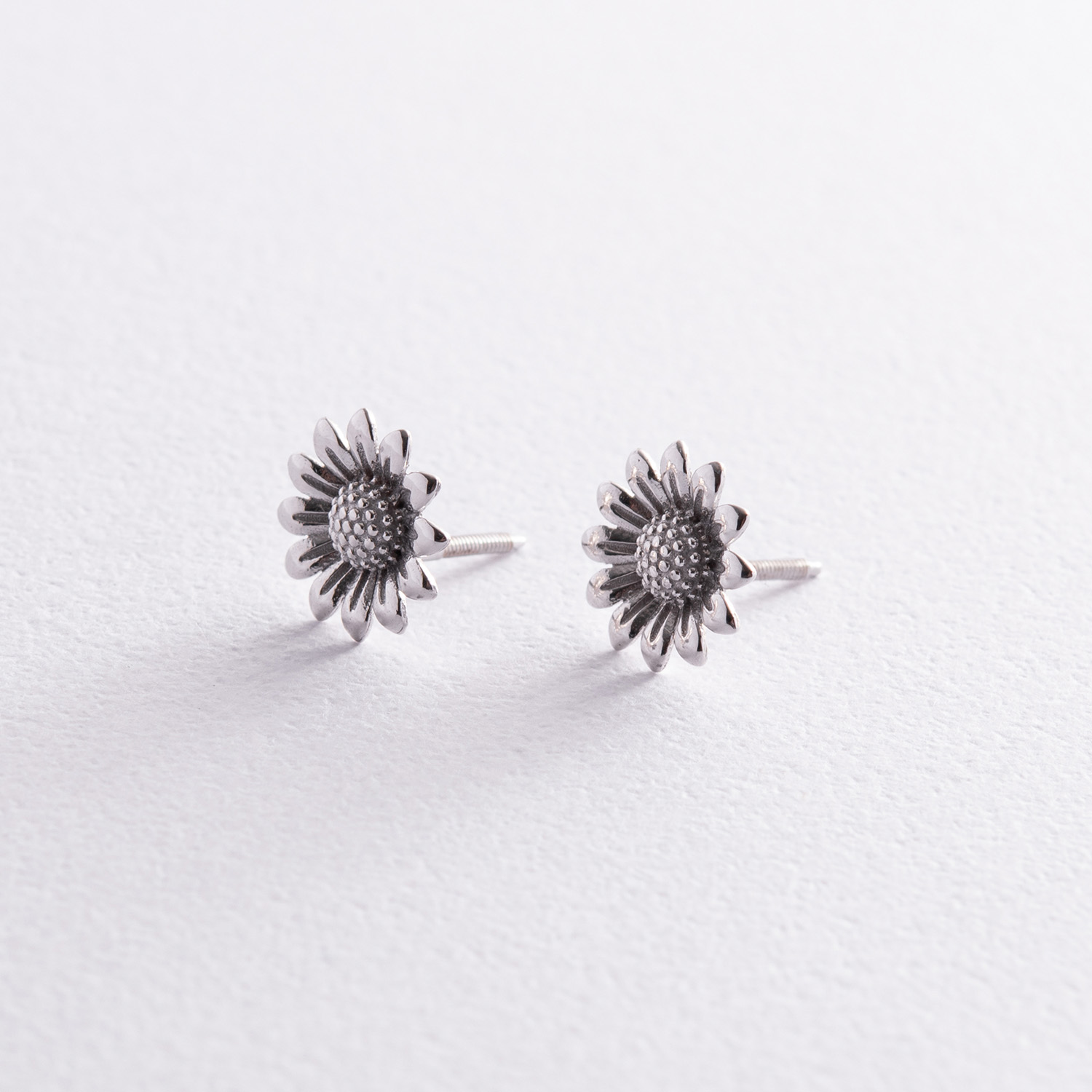 Серьги - пусеты "Подсолнухи" в белом золоте с08308
