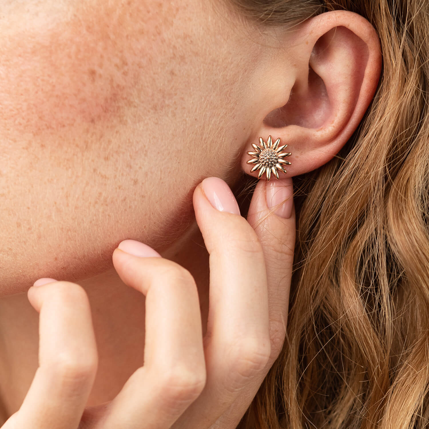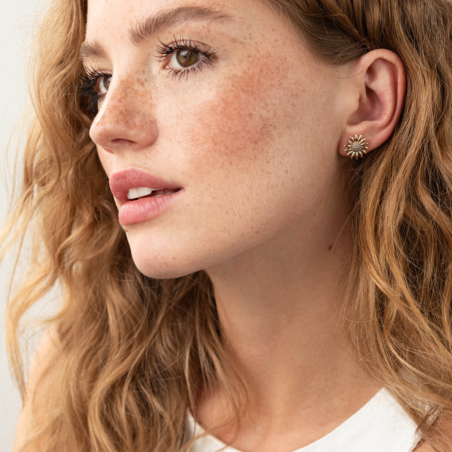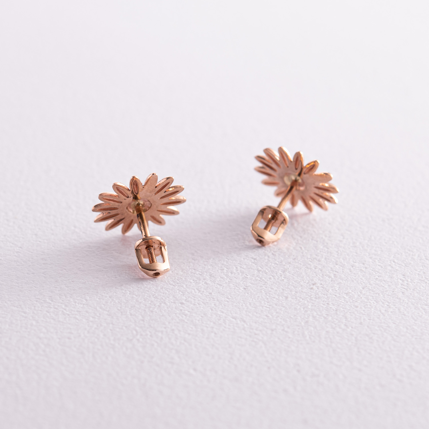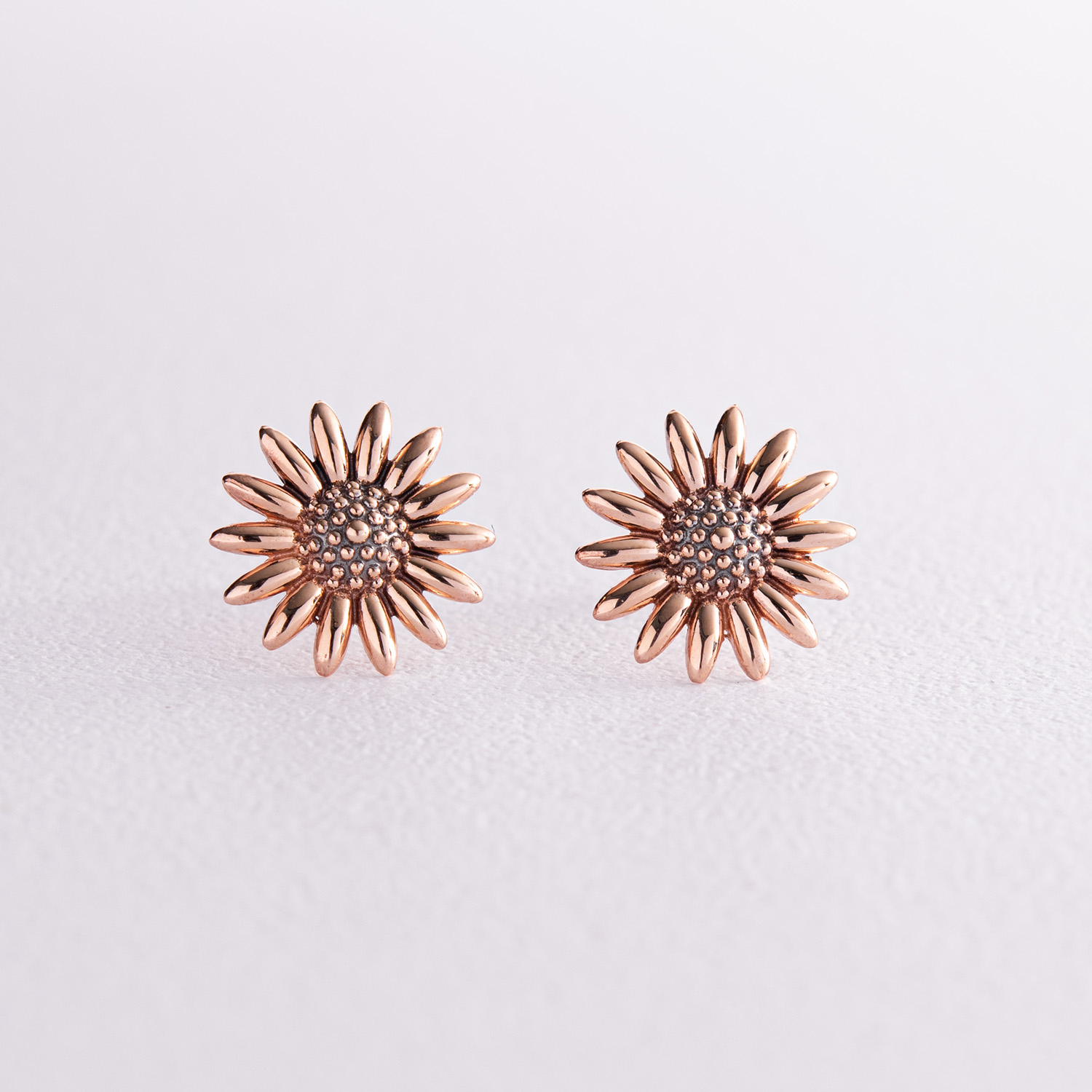 Серьги - пусеты "Подсолнухи" в красном золоте с08034