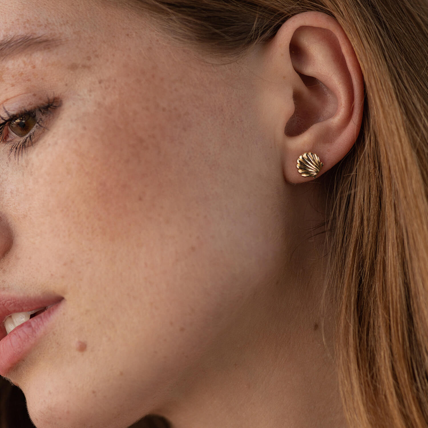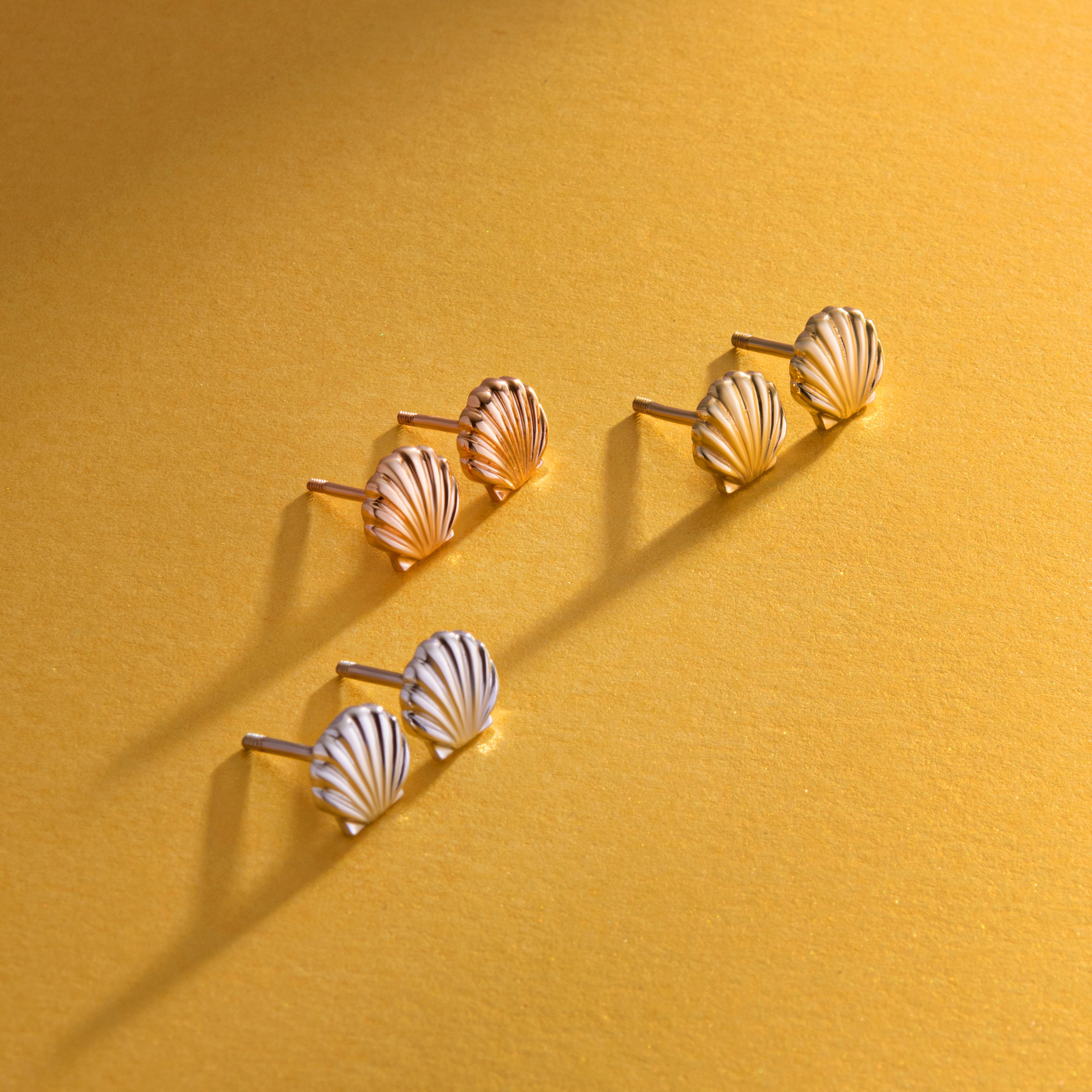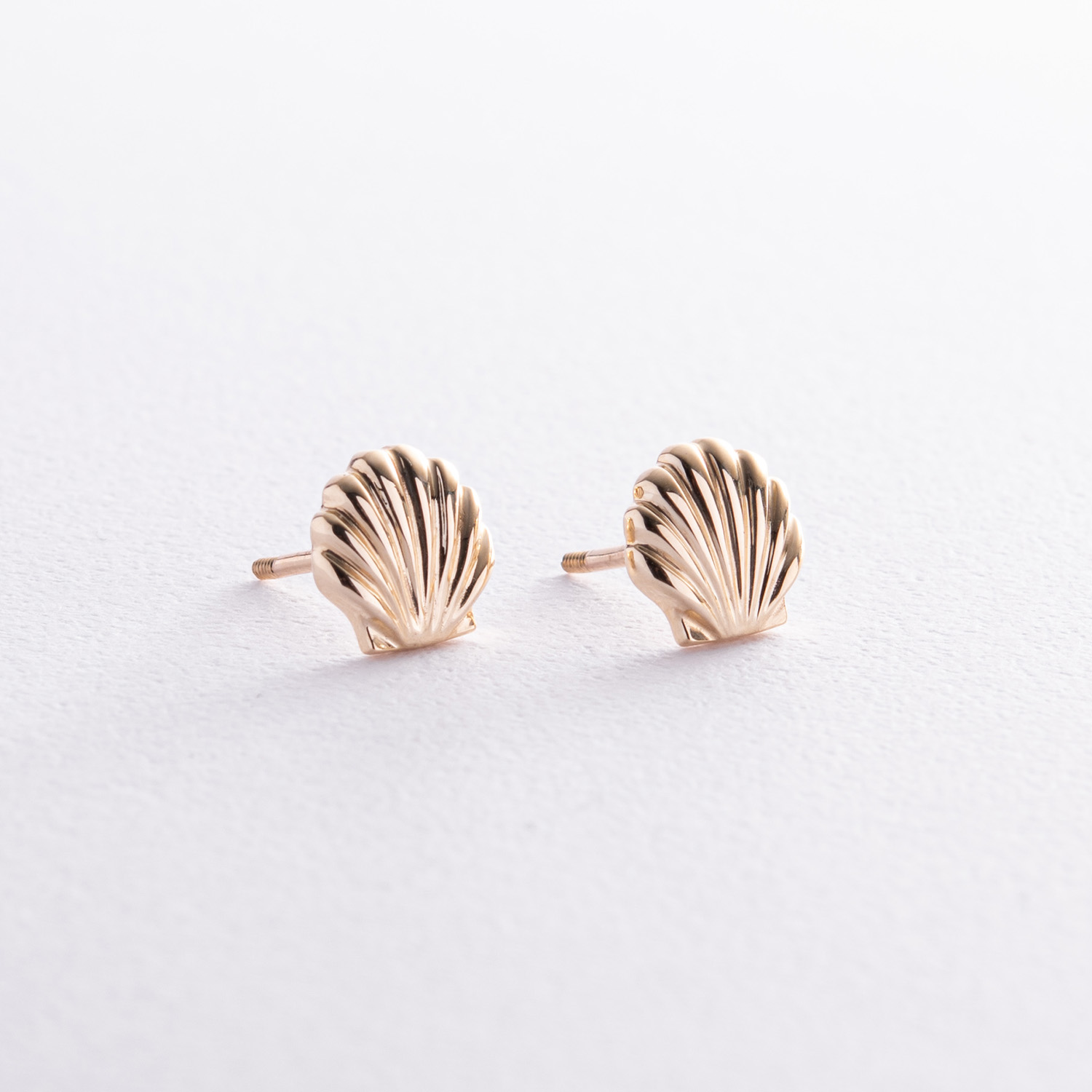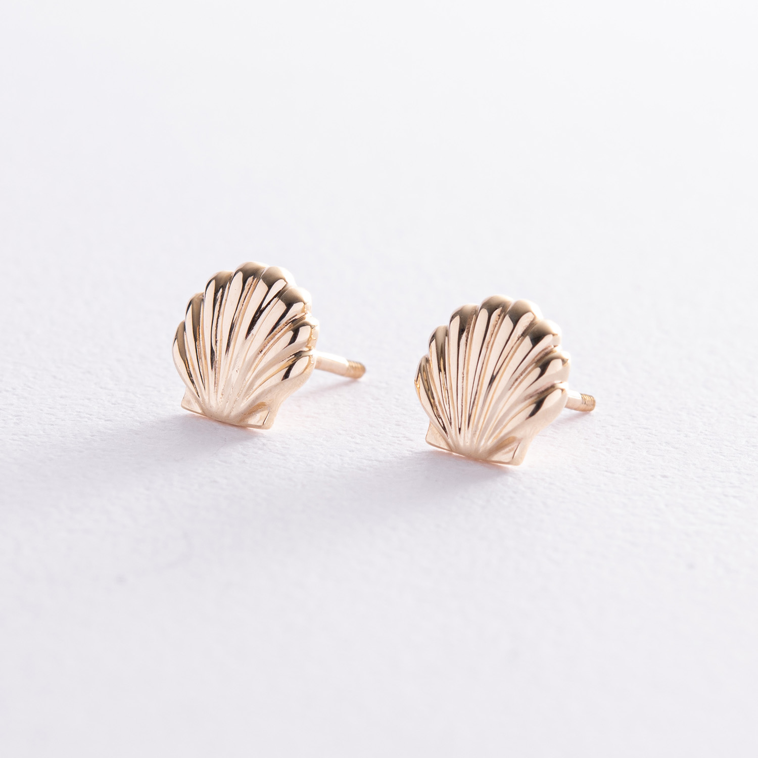 Серьги - пусеты "Ракушки" в желтом золоте с08464