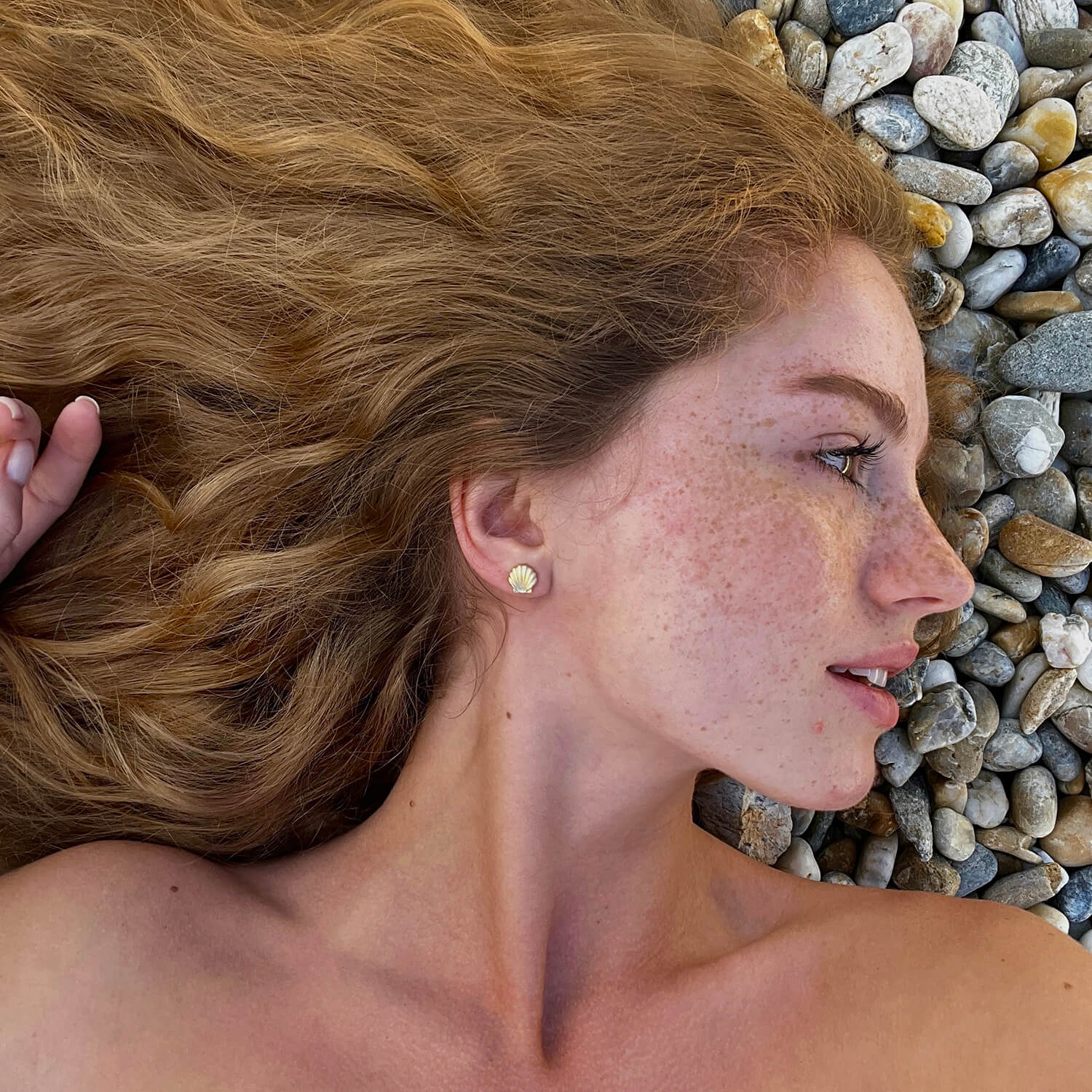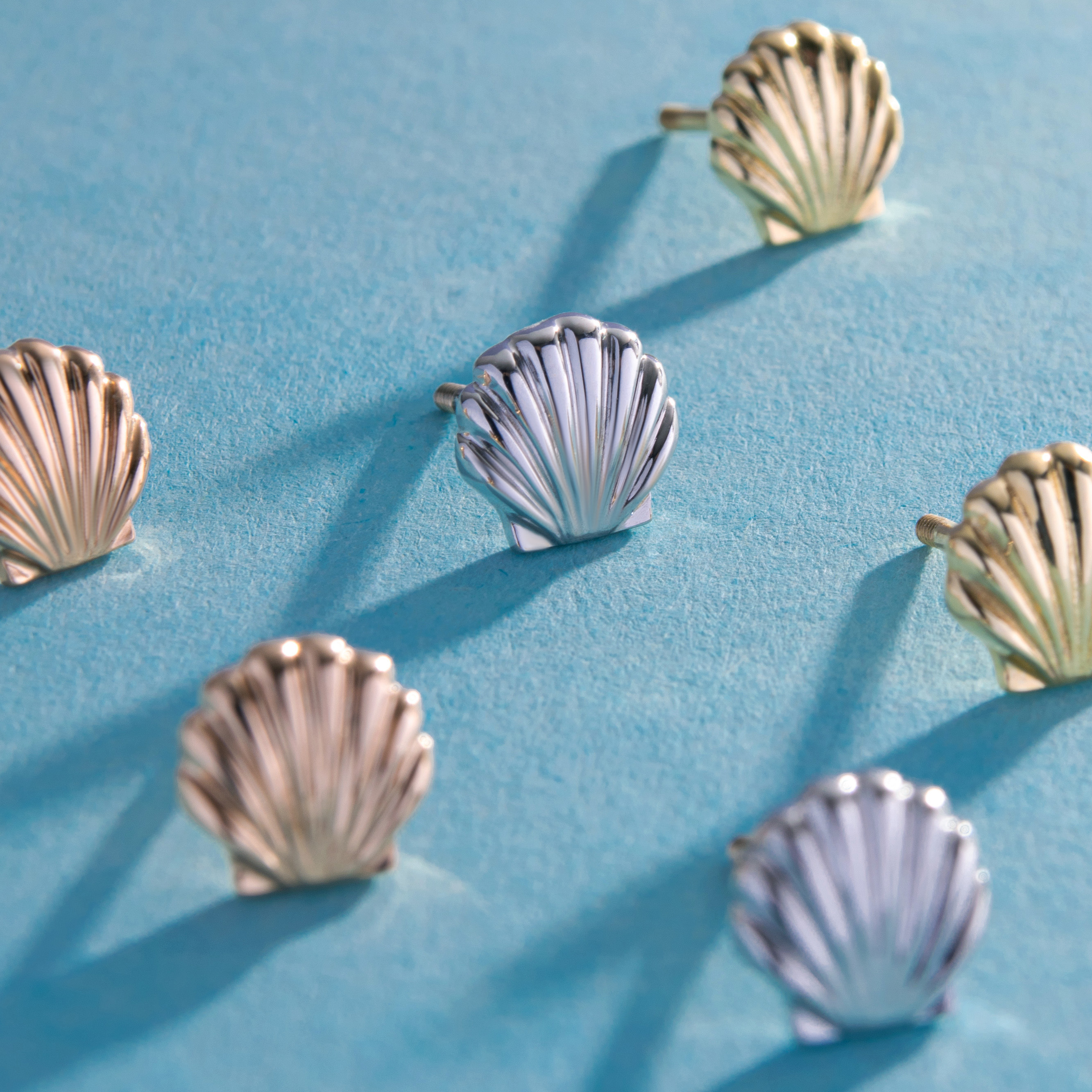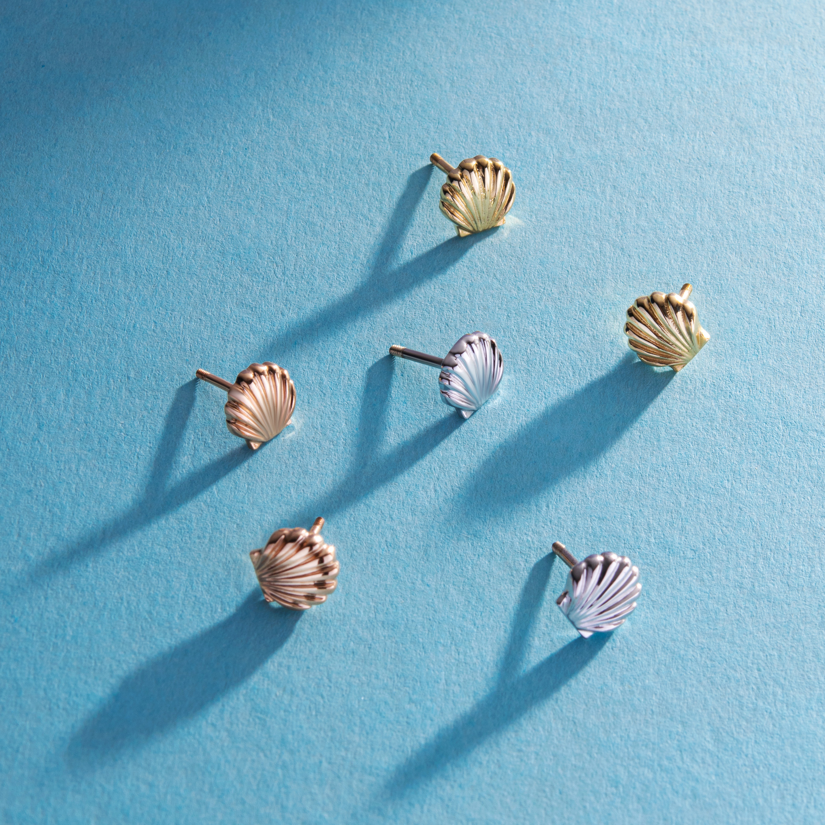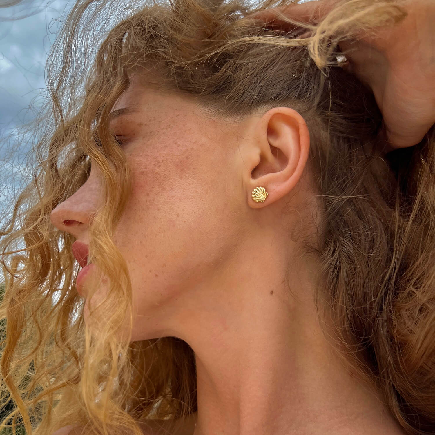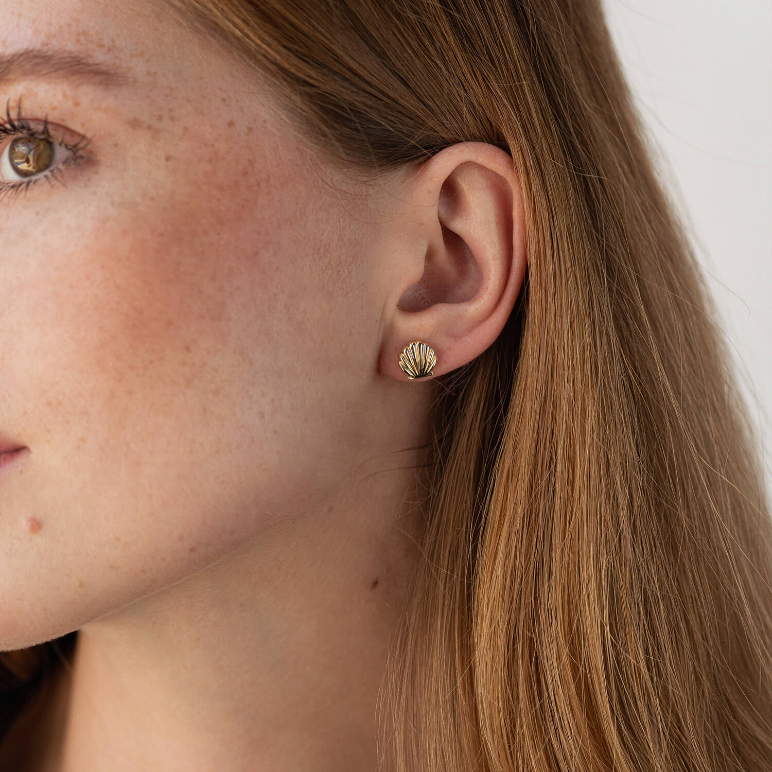Серьги - пусеты "Ракушки" в желтом золоте с08464