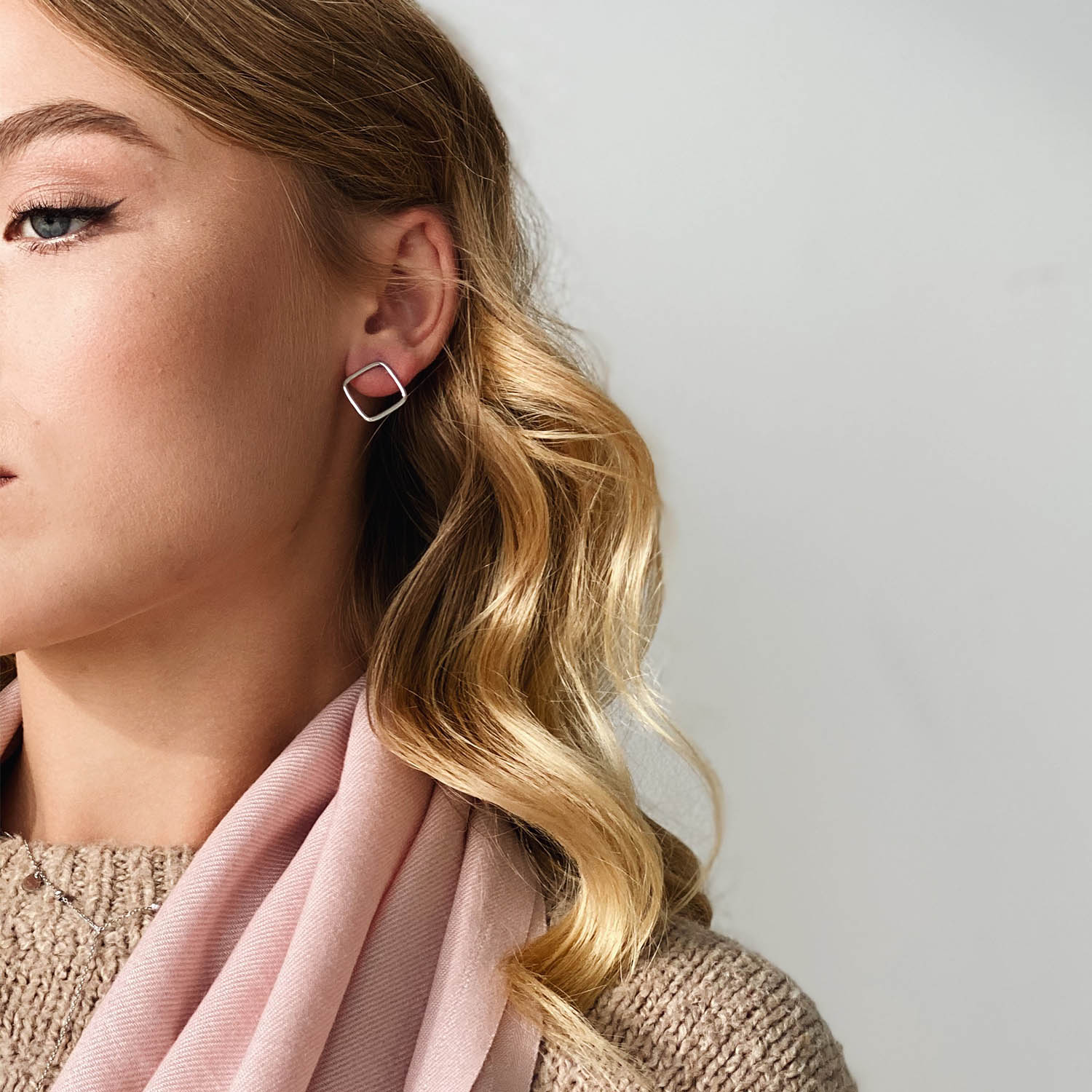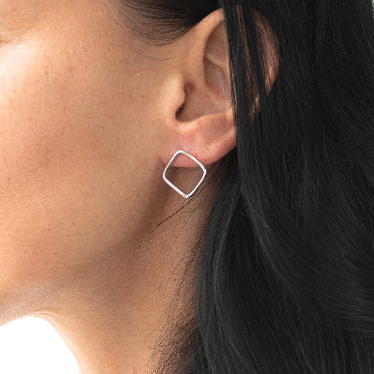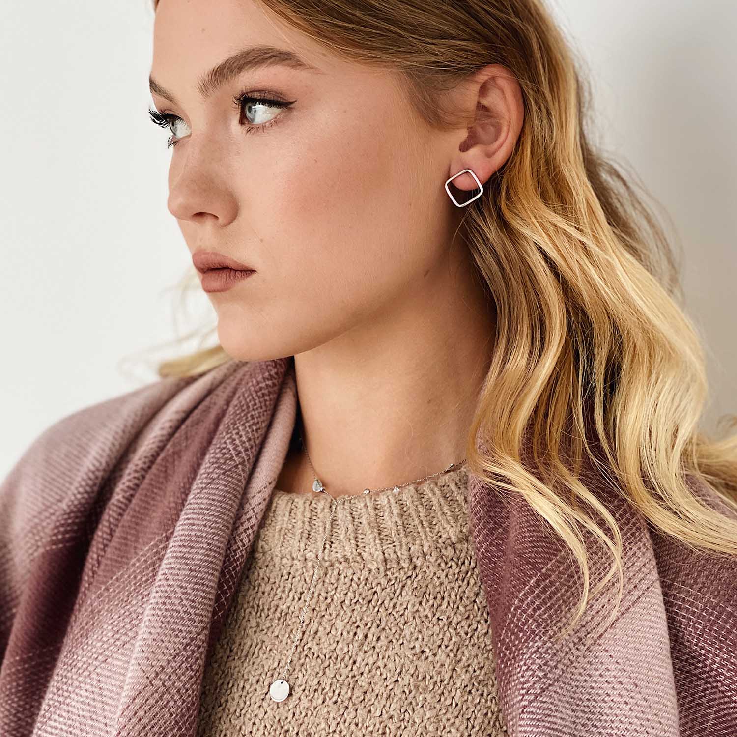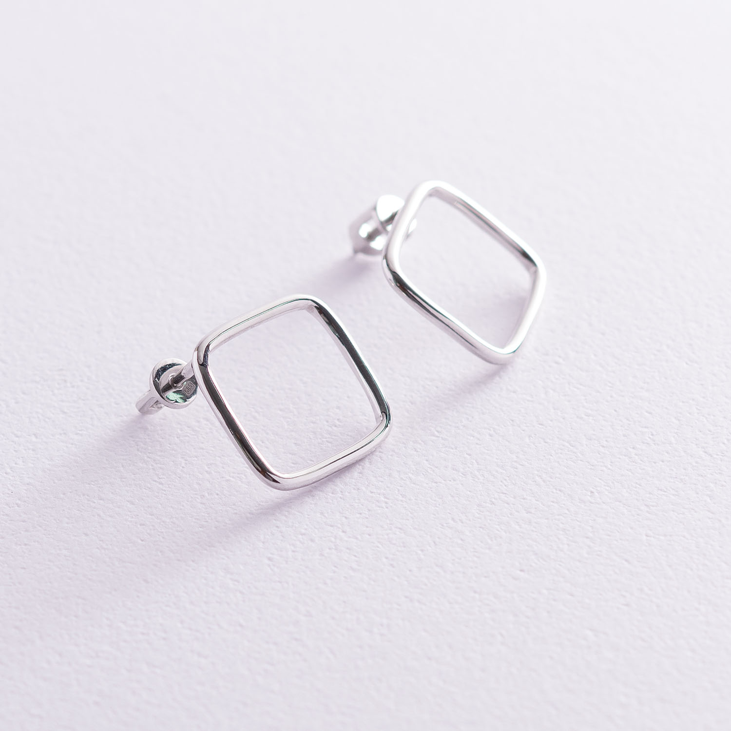 Серьги - пусеты "Ромбы" в белом золоте с06981