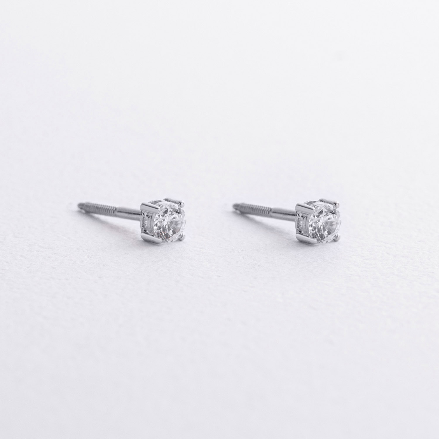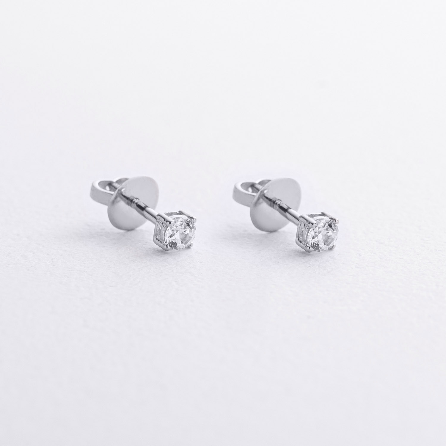 Серьги - пусеты с фианитами (белое золото) с09640